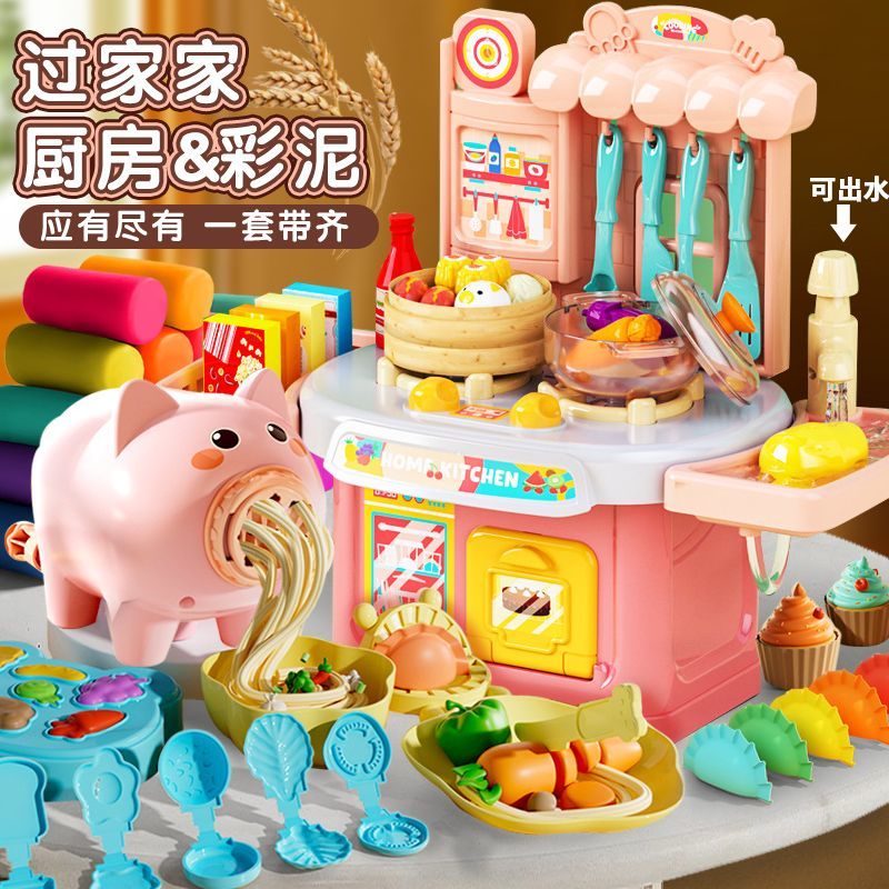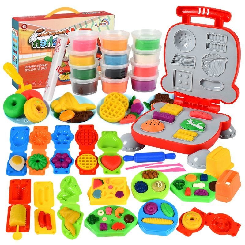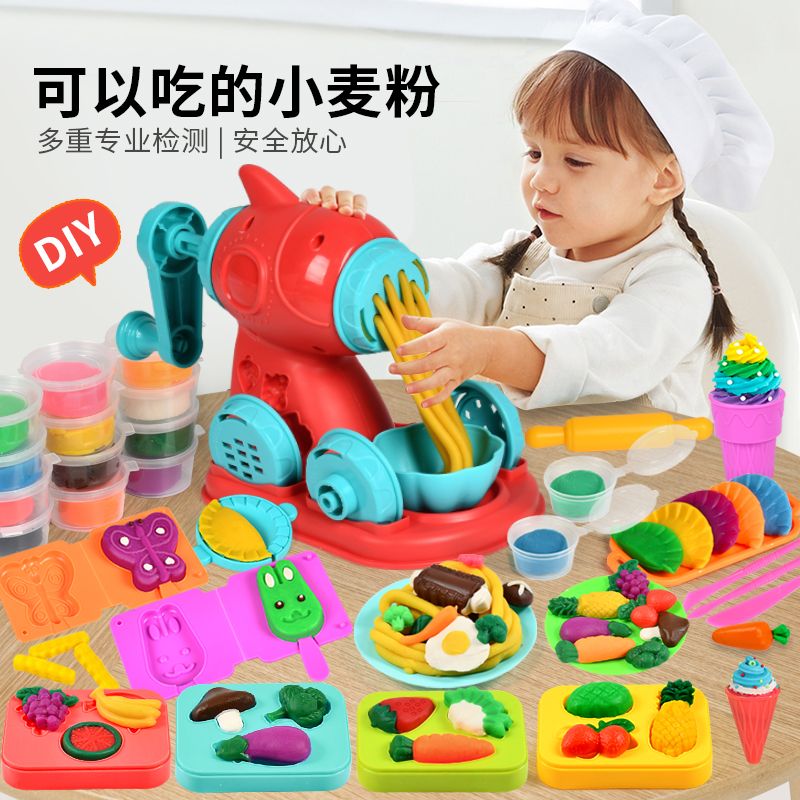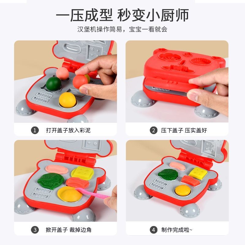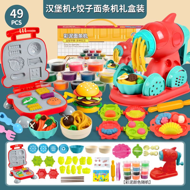 儿童橡皮泥汉堡面条机模具无毒彩泥幼儿园手工粘土材料套装玩具