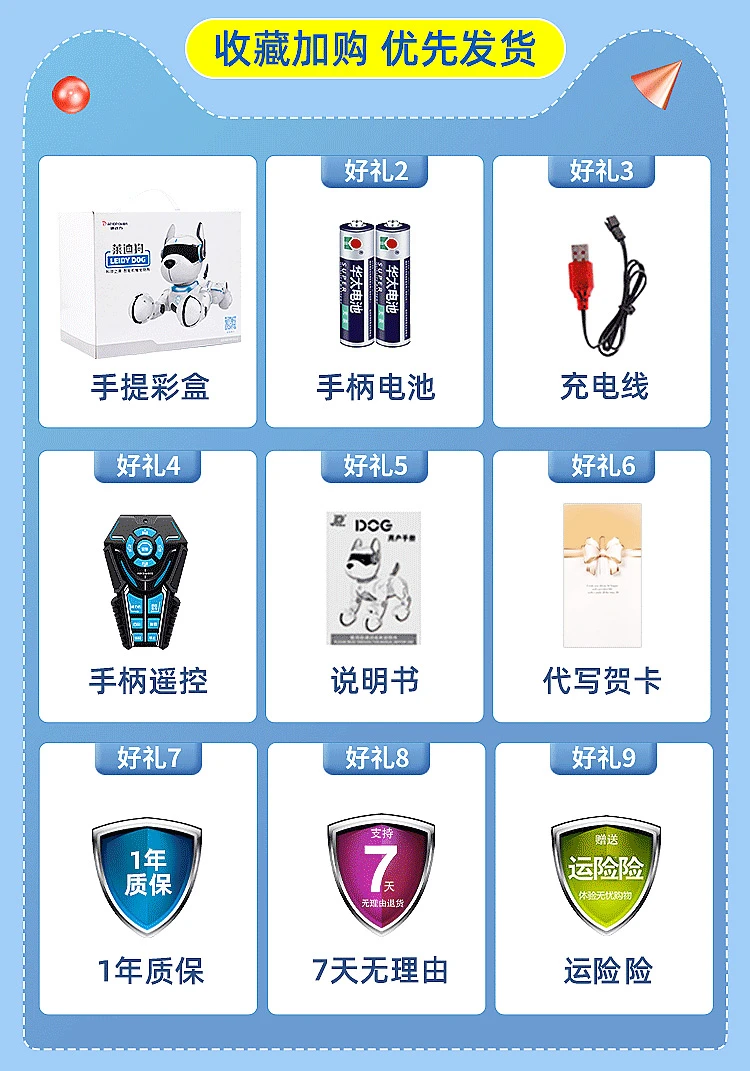 | voice control dog 1 power] over 94 skills + voice instruction(声控狗1电】超94种技能+语音指令) | USD $46.7 | 999999 piece available |
