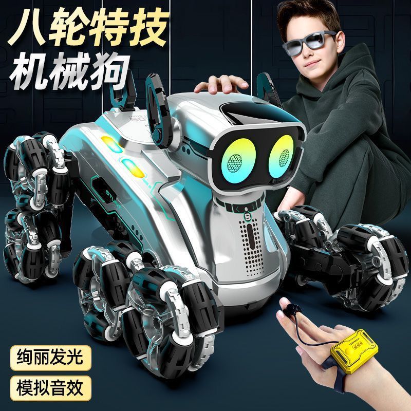 机械八轮机器感应遥控四驱汽车电动机器人小狗男孩特技智能玩具
