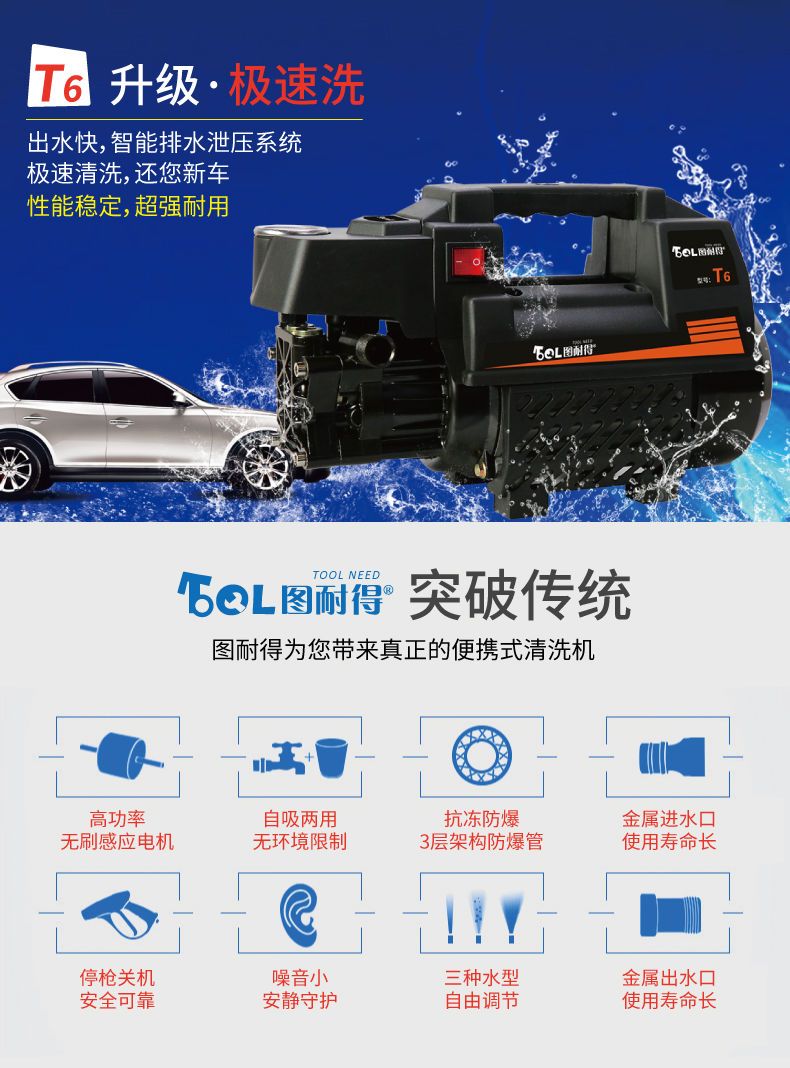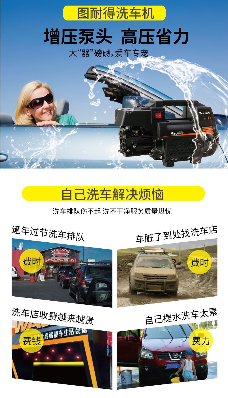 图耐得高压洗车机220v家用清洗机全自动洗车器洗车泵大功率刷车机