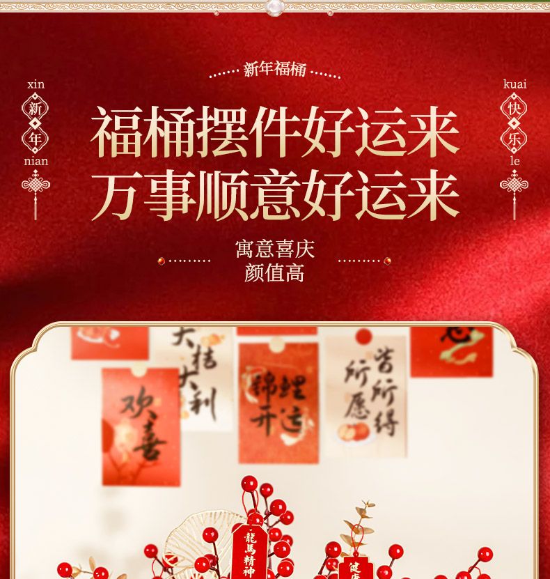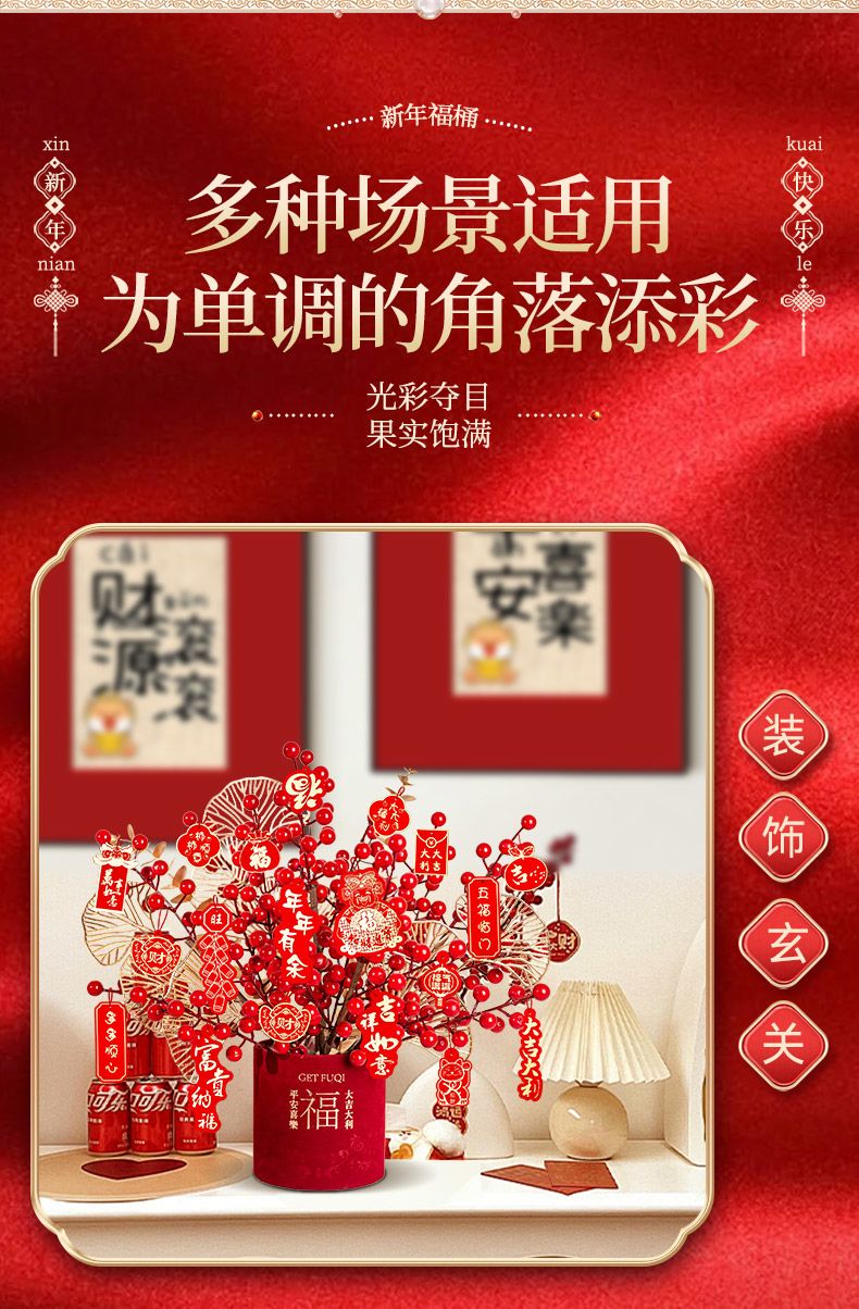 | [strap hanging ornament] congratulations on the new spring blessing bucket + chinese hawthorn + golden leaves(【带挂饰】恭贺新春福桶+红果+金叶) | USD $6.64 | 999999 piece available |