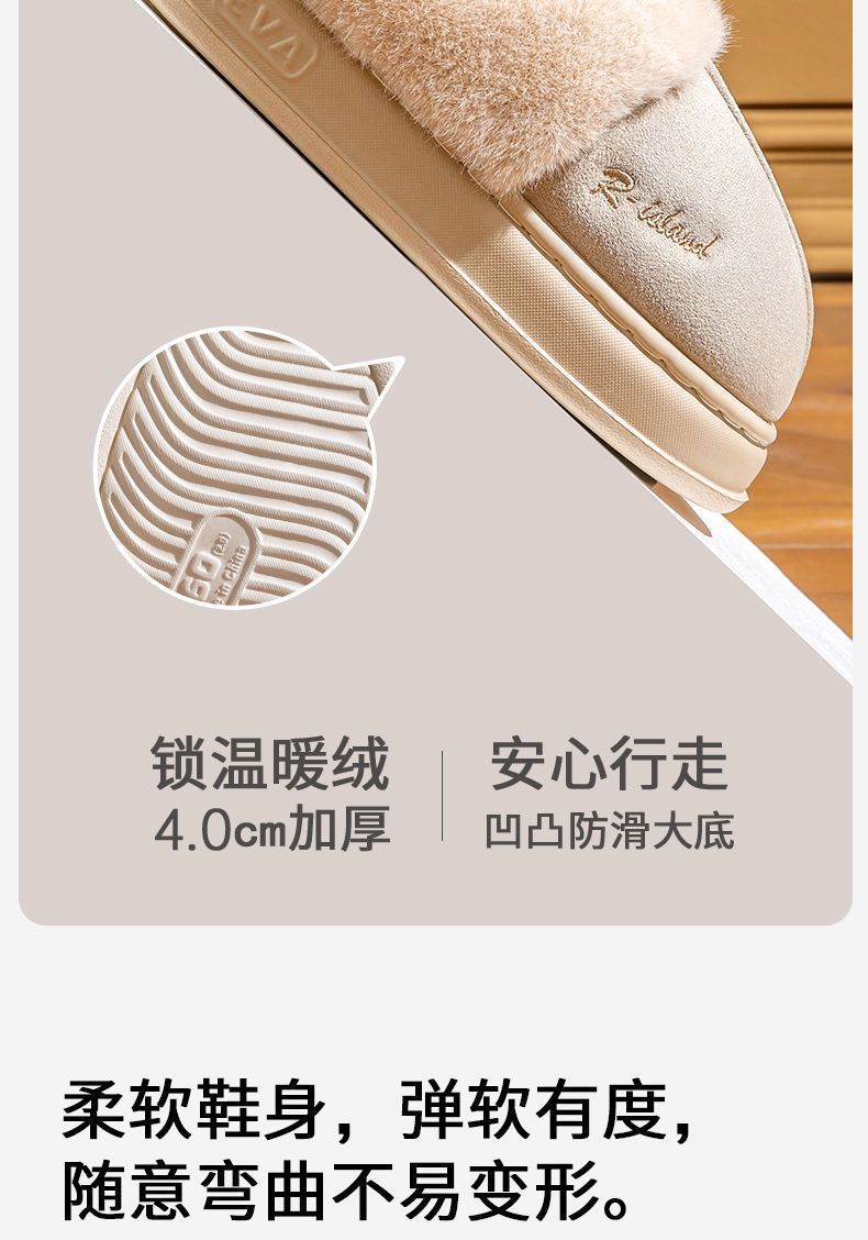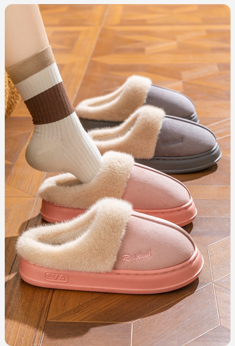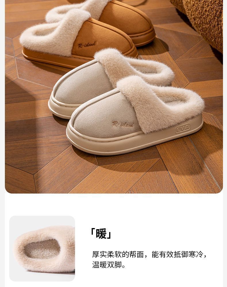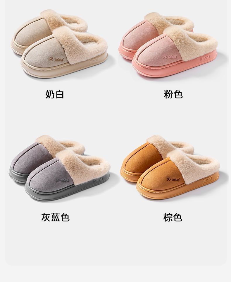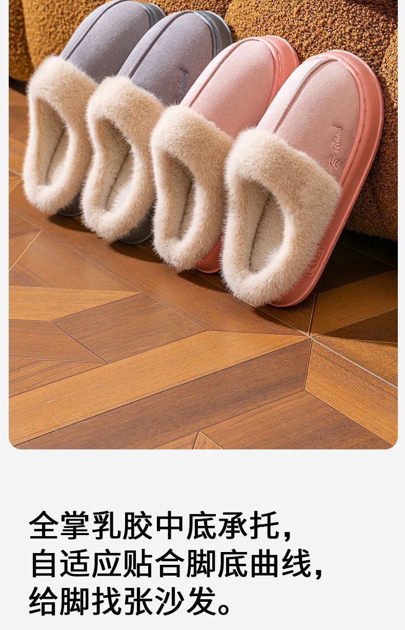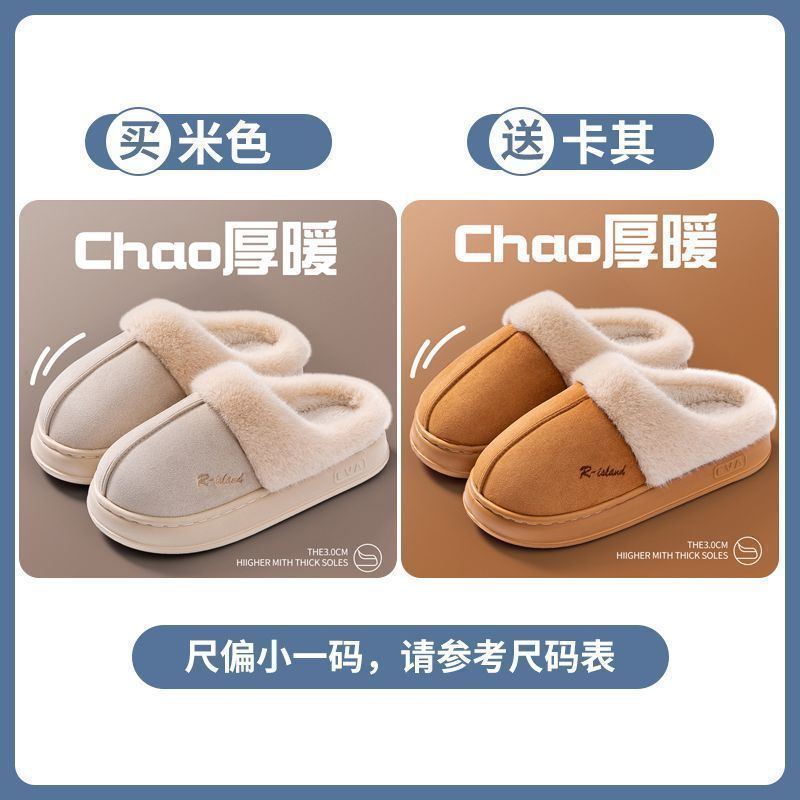 买一送一麂皮绒棉拖鞋女秋冬季室内厚底防滑居家用时尚情侣棉拖鞋