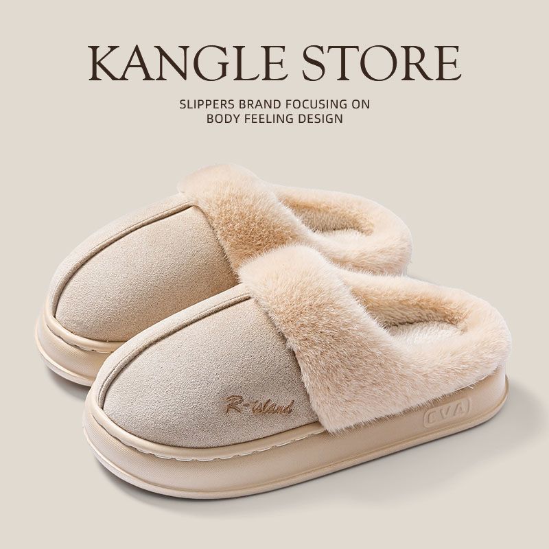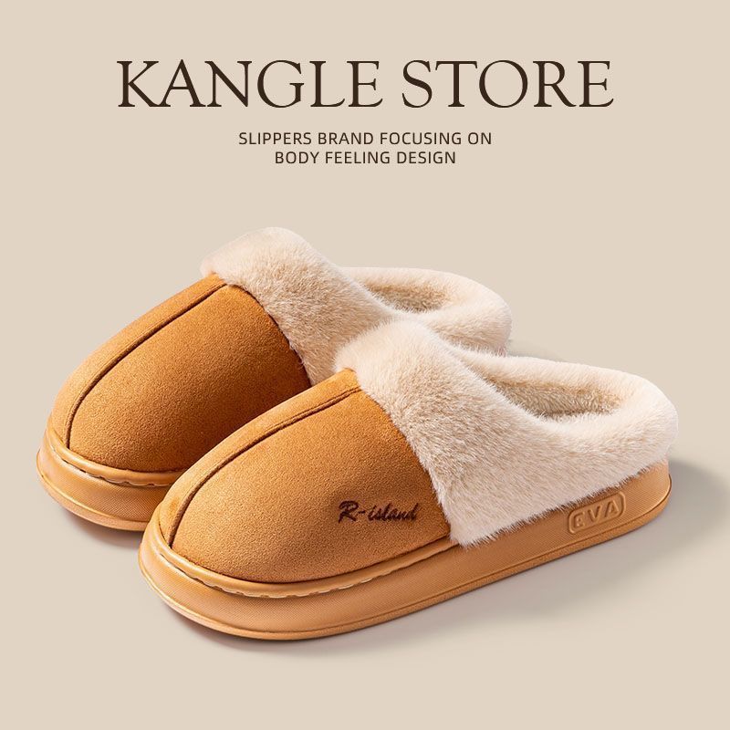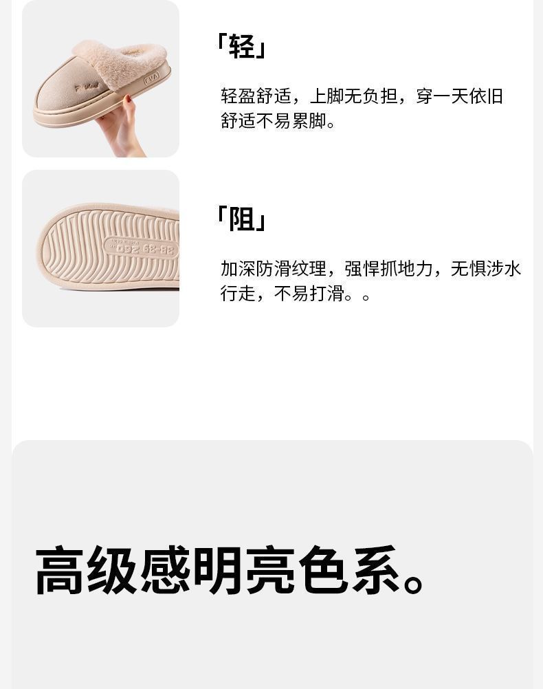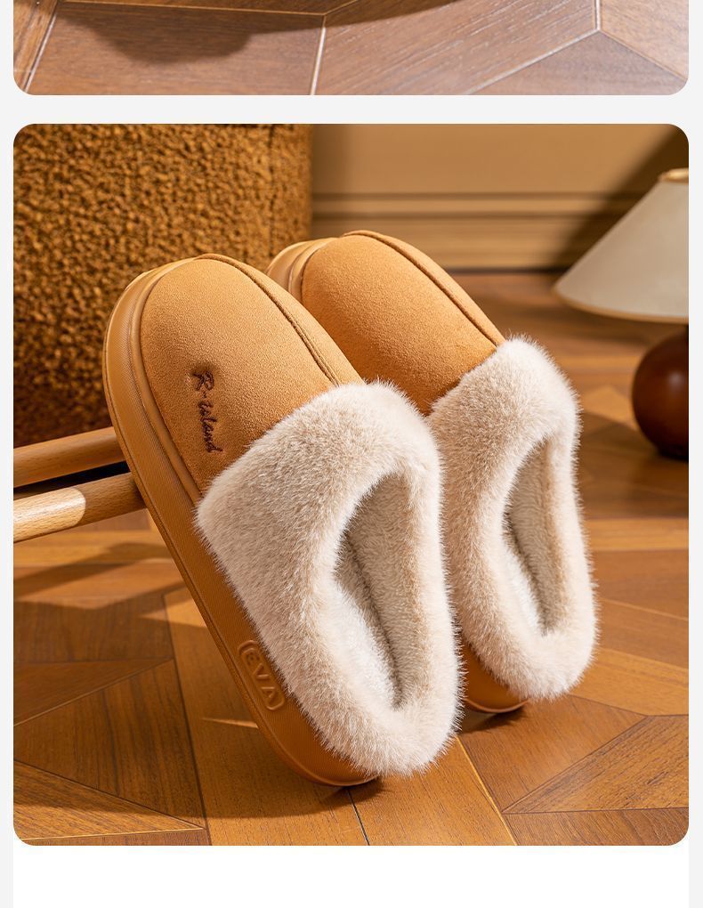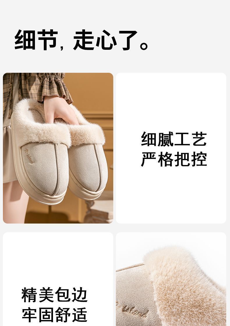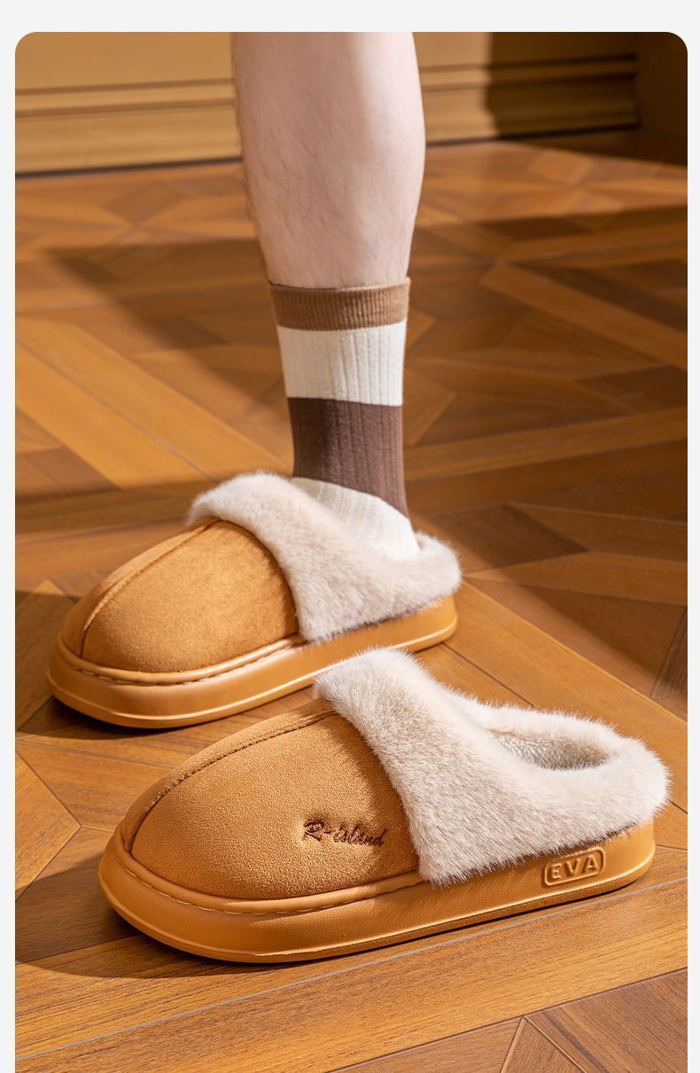 买一送一麂皮绒棉拖鞋女秋冬季室内厚底防滑居家用时尚情侣棉拖鞋
