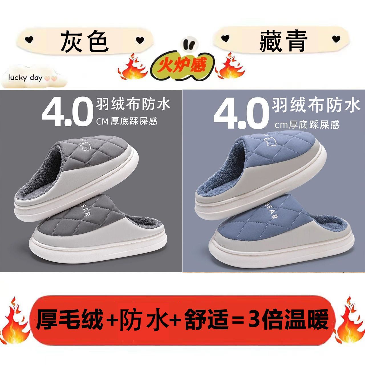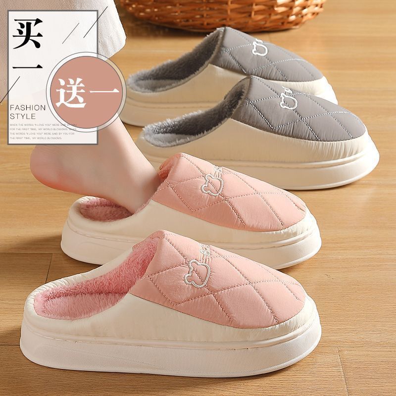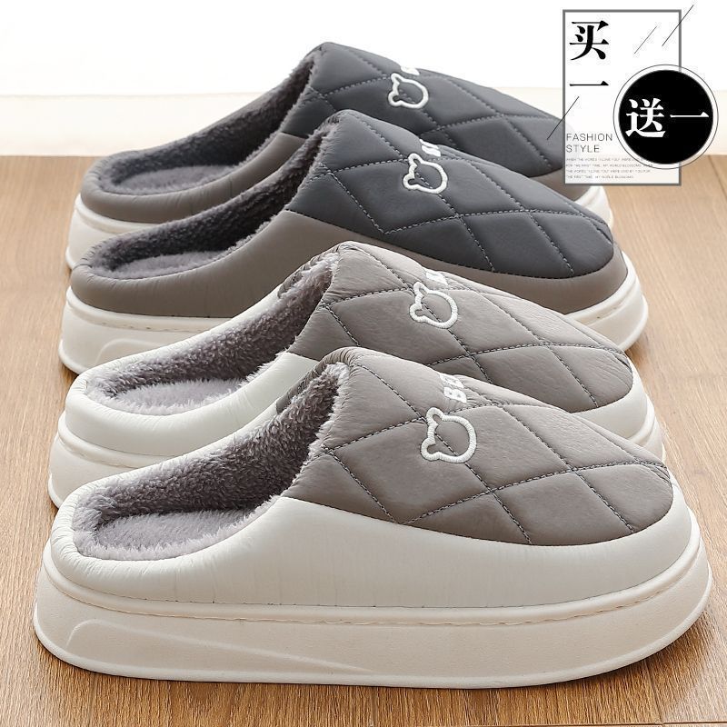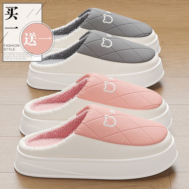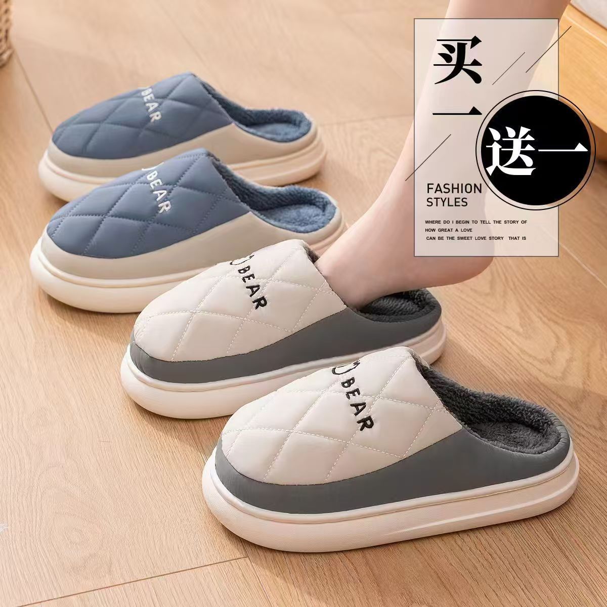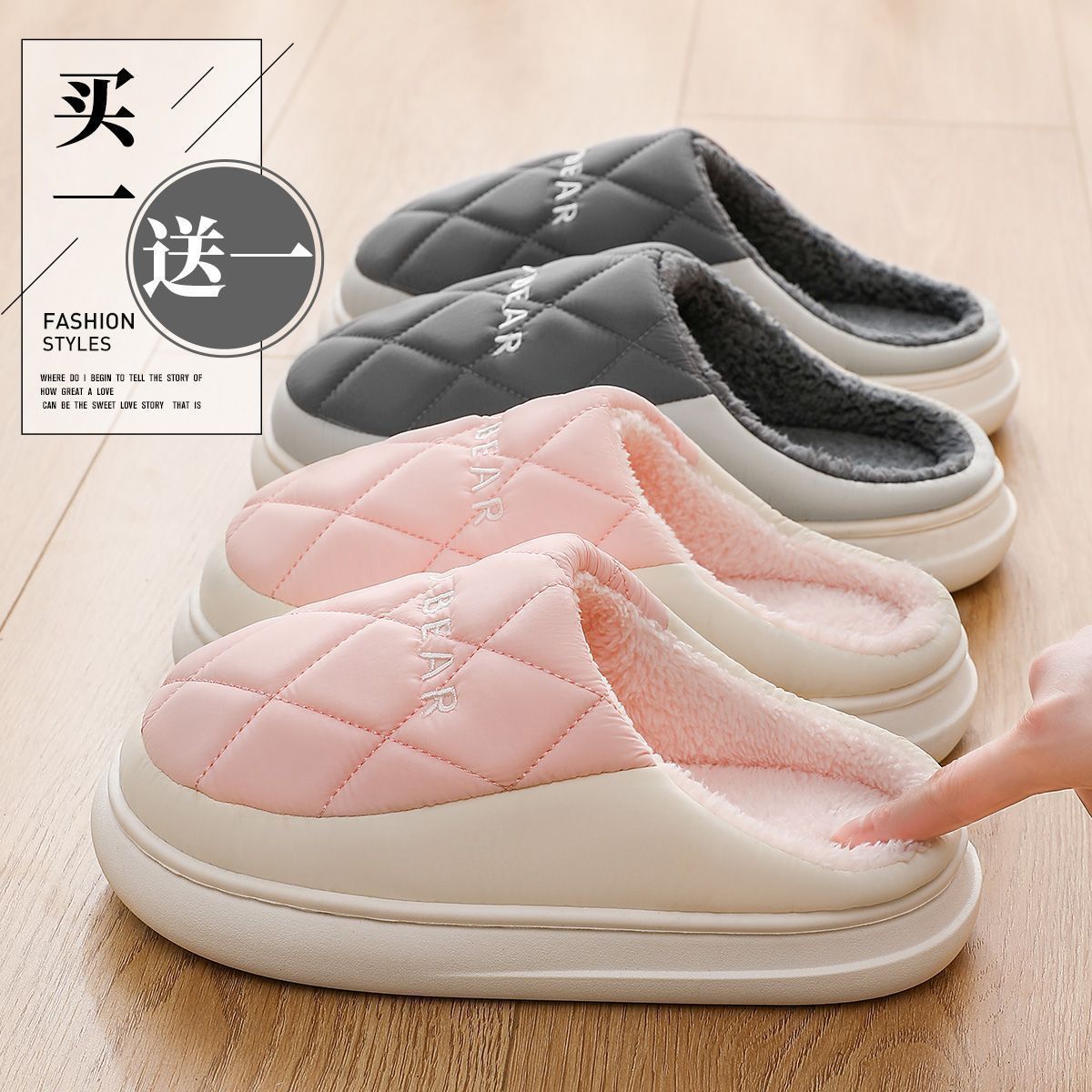 买一送一踩屎感冬季防水棉拖情侣厚底保暖防滑居家待客加绒耐磨鞋