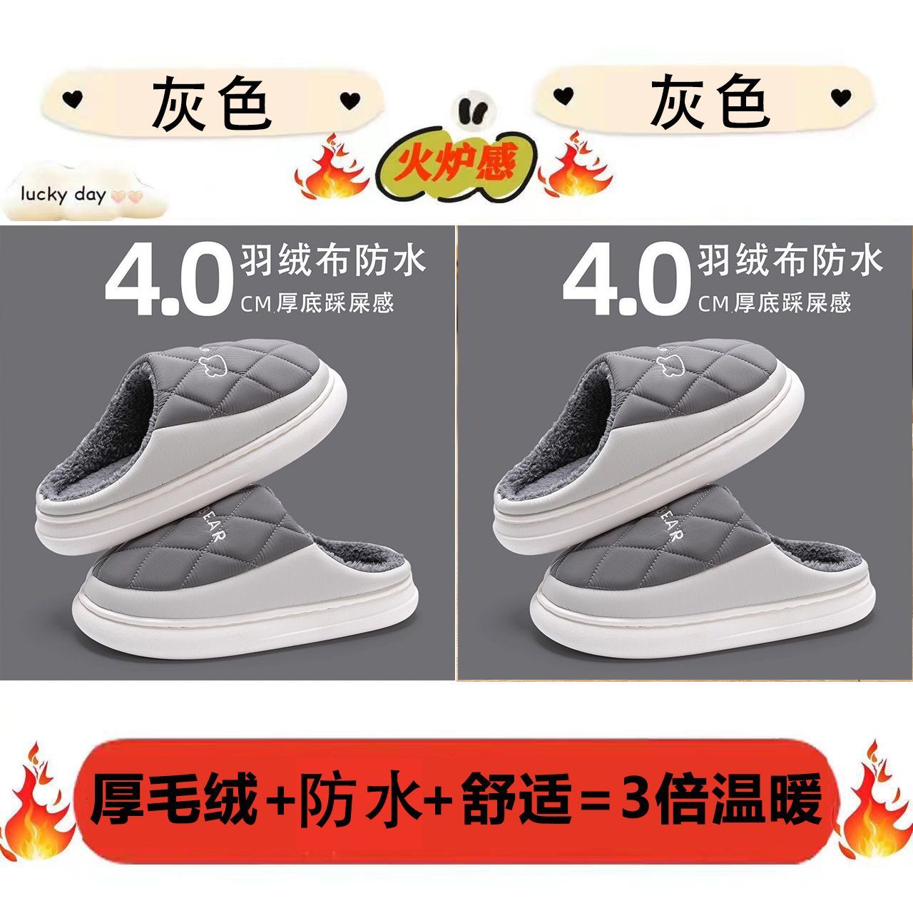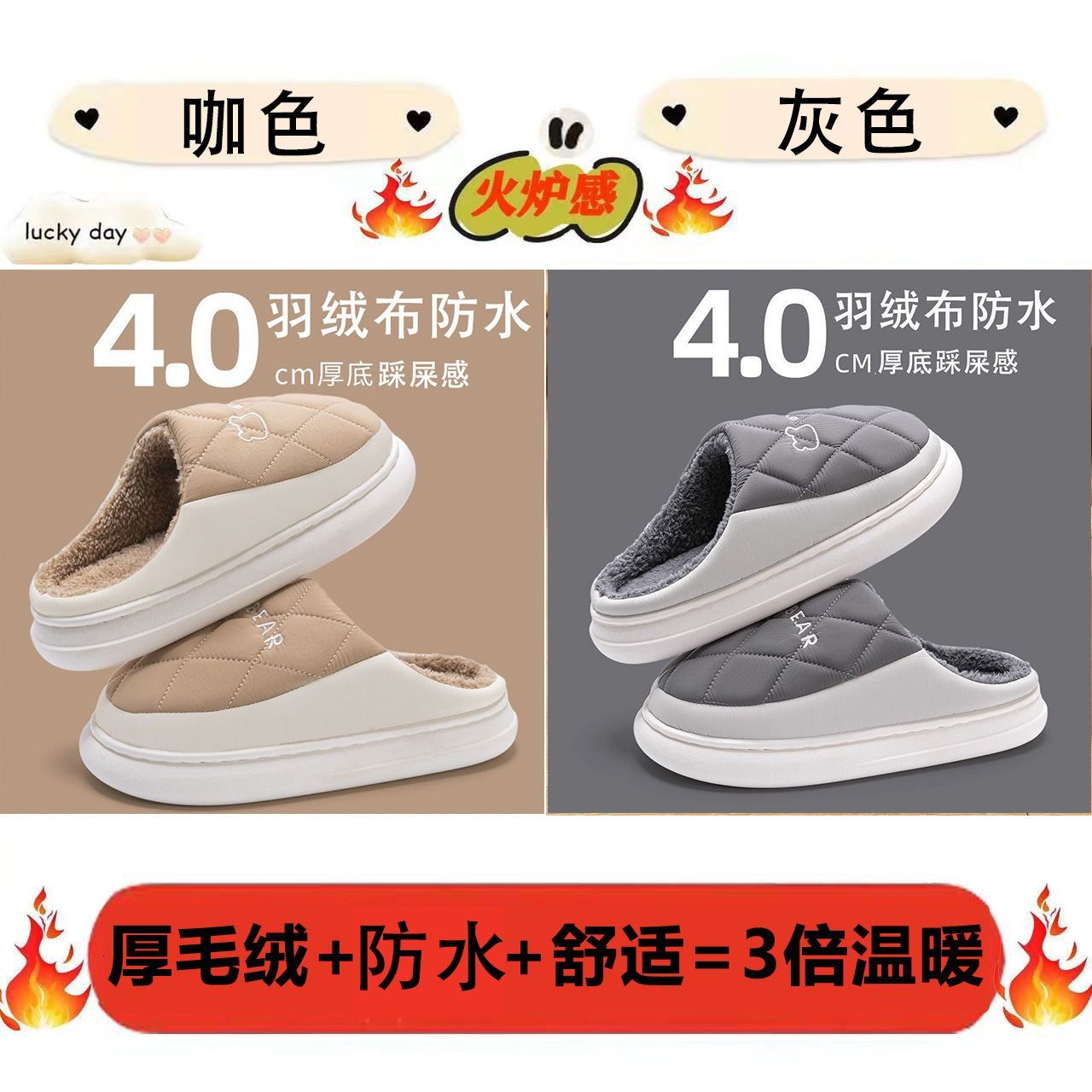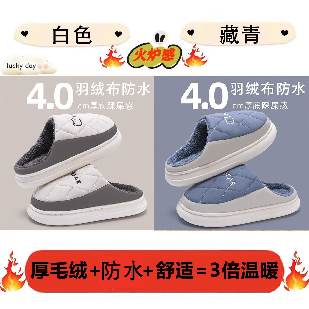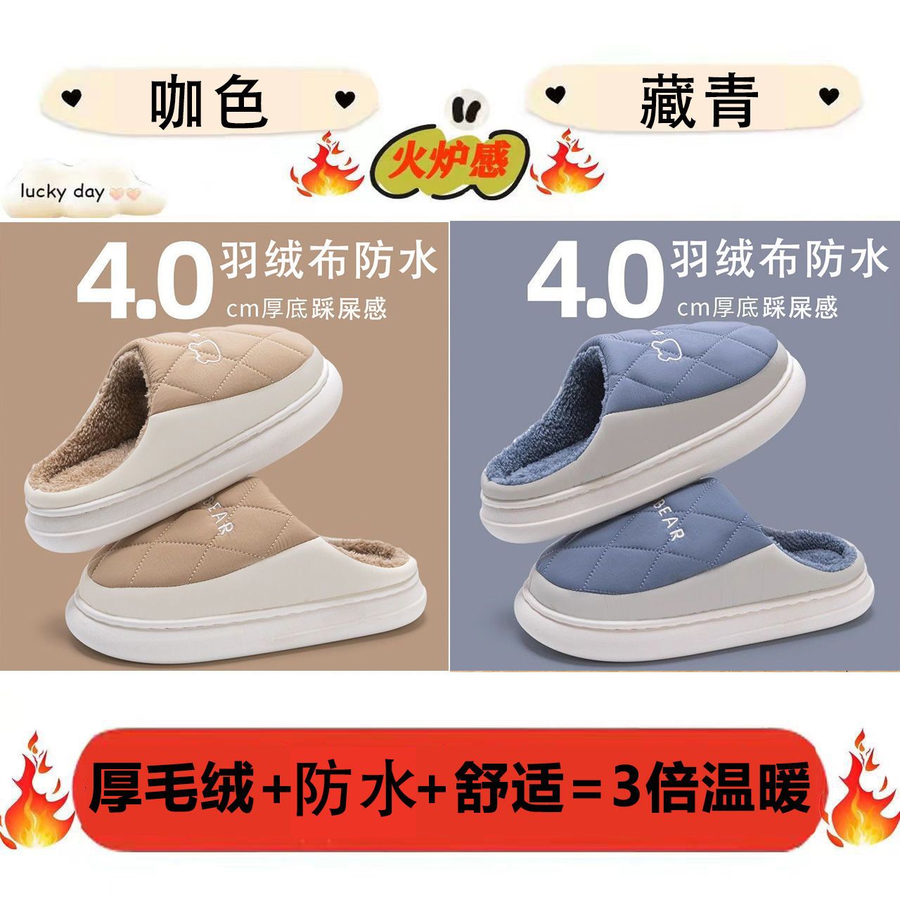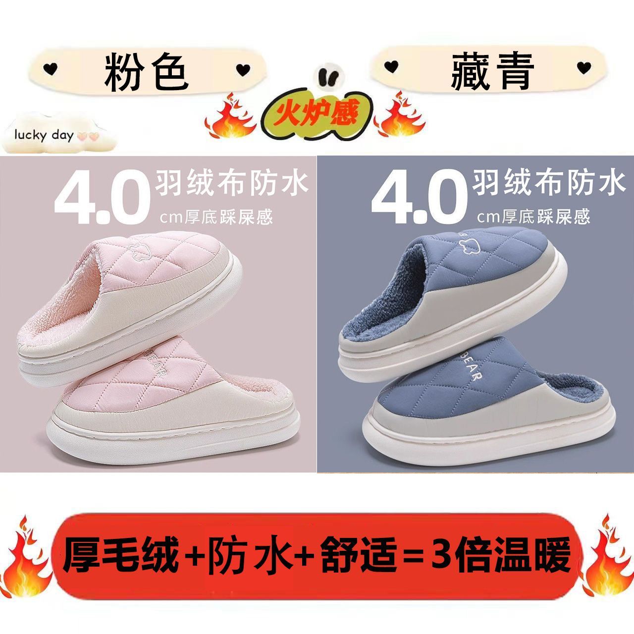 买一送一踩屎感冬季防水棉拖情侣厚底保暖防滑居家待客加绒耐磨鞋