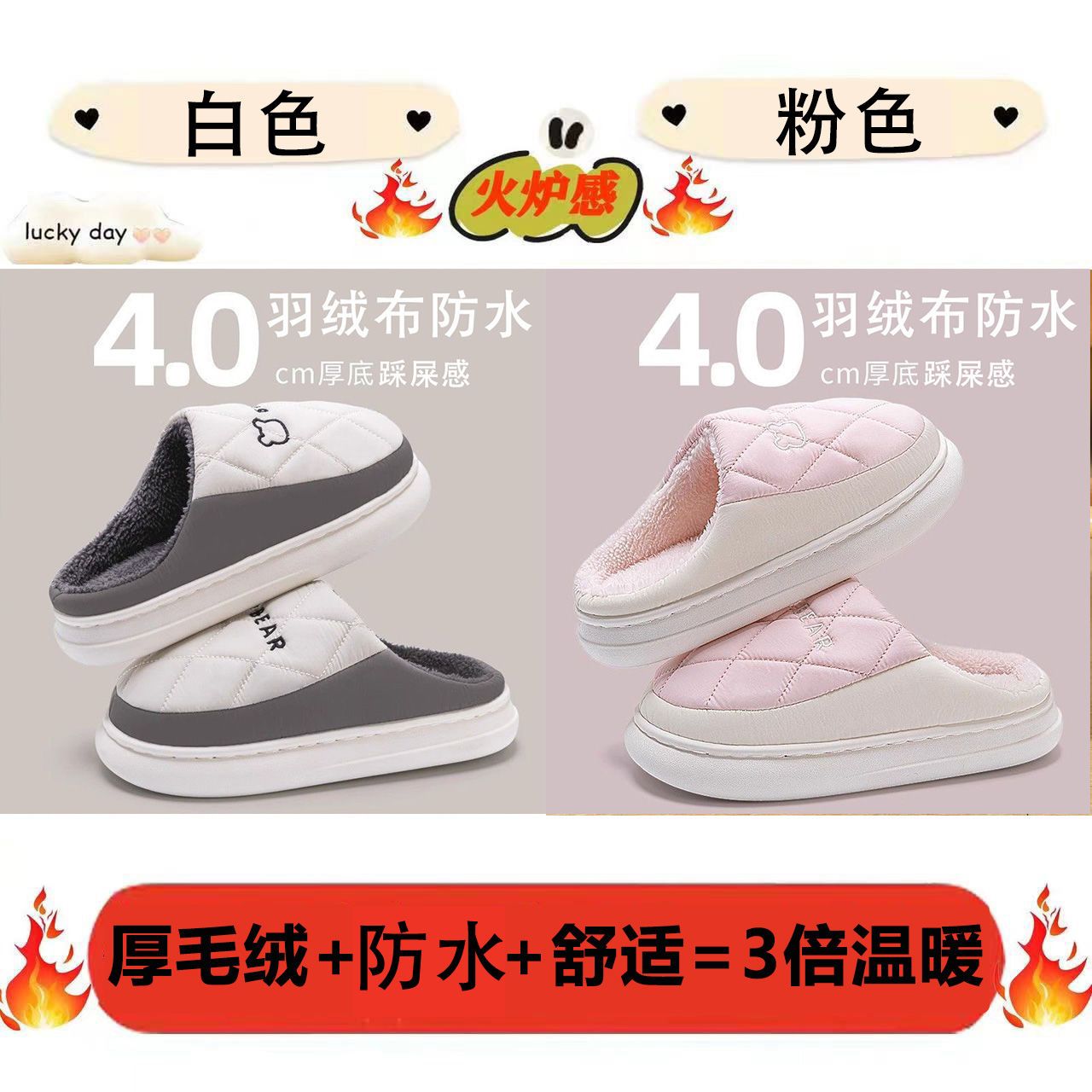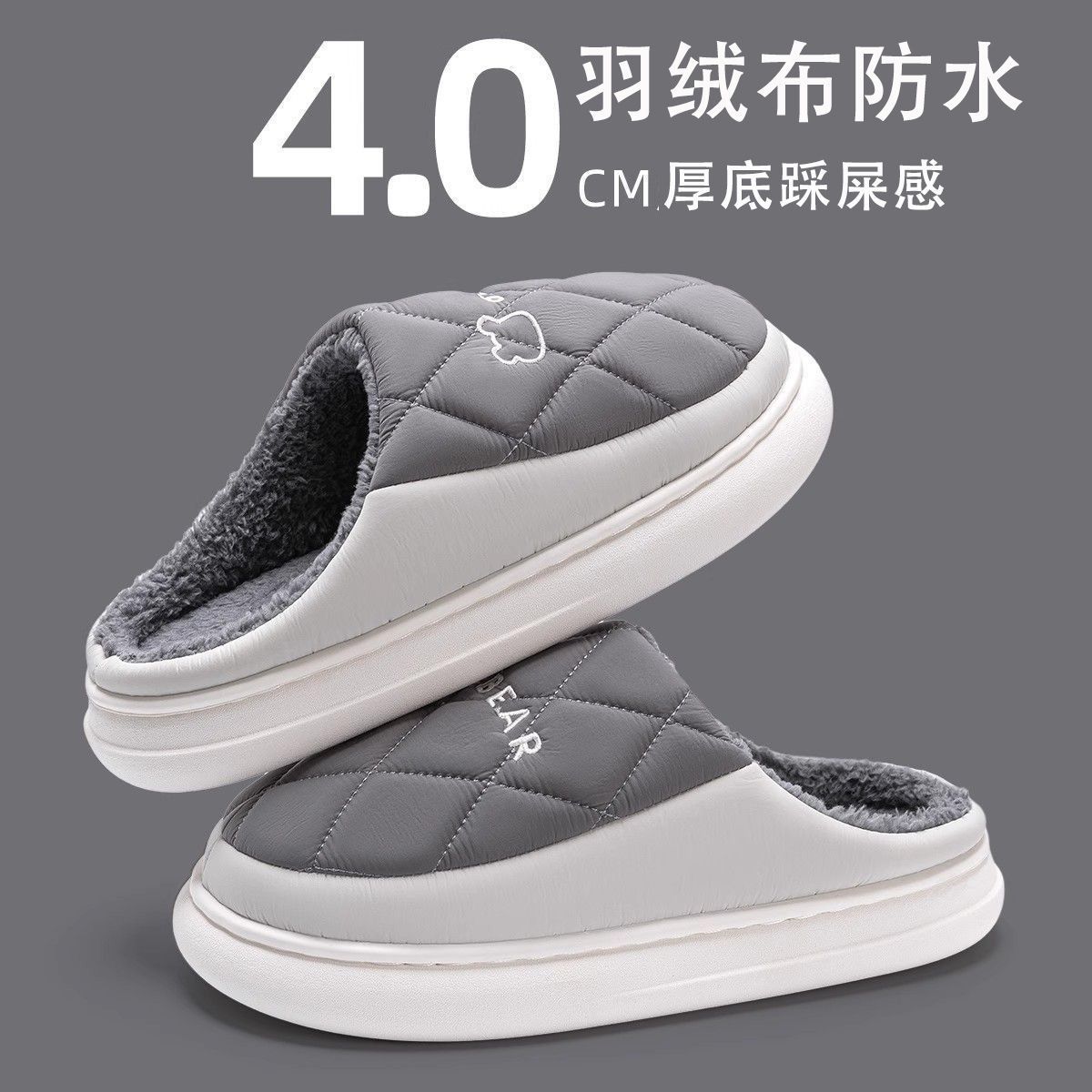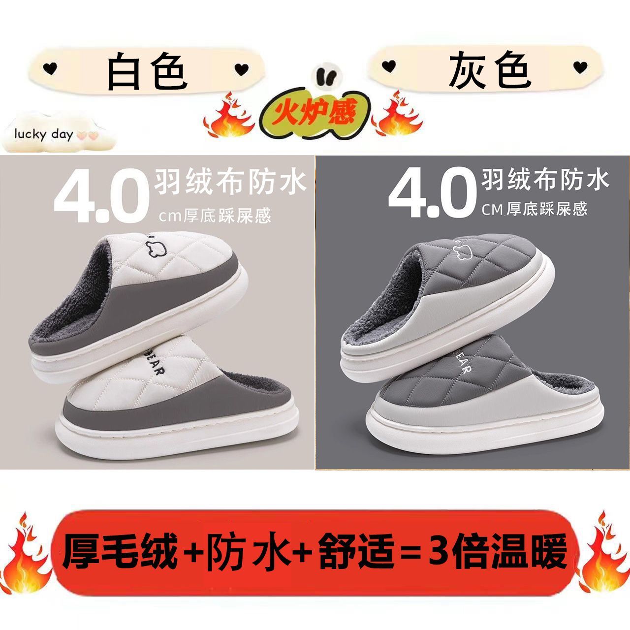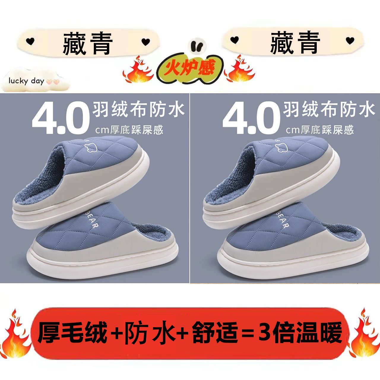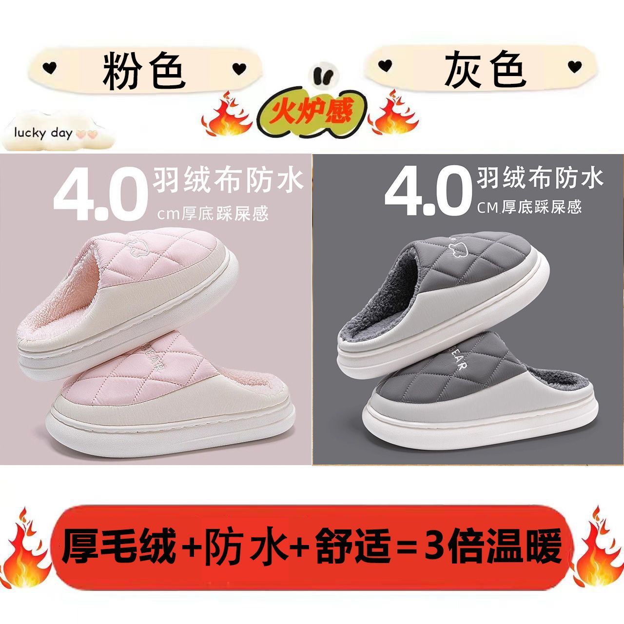 买一送一踩屎感冬季防水棉拖情侣厚底保暖防滑居家待客加绒耐磨鞋