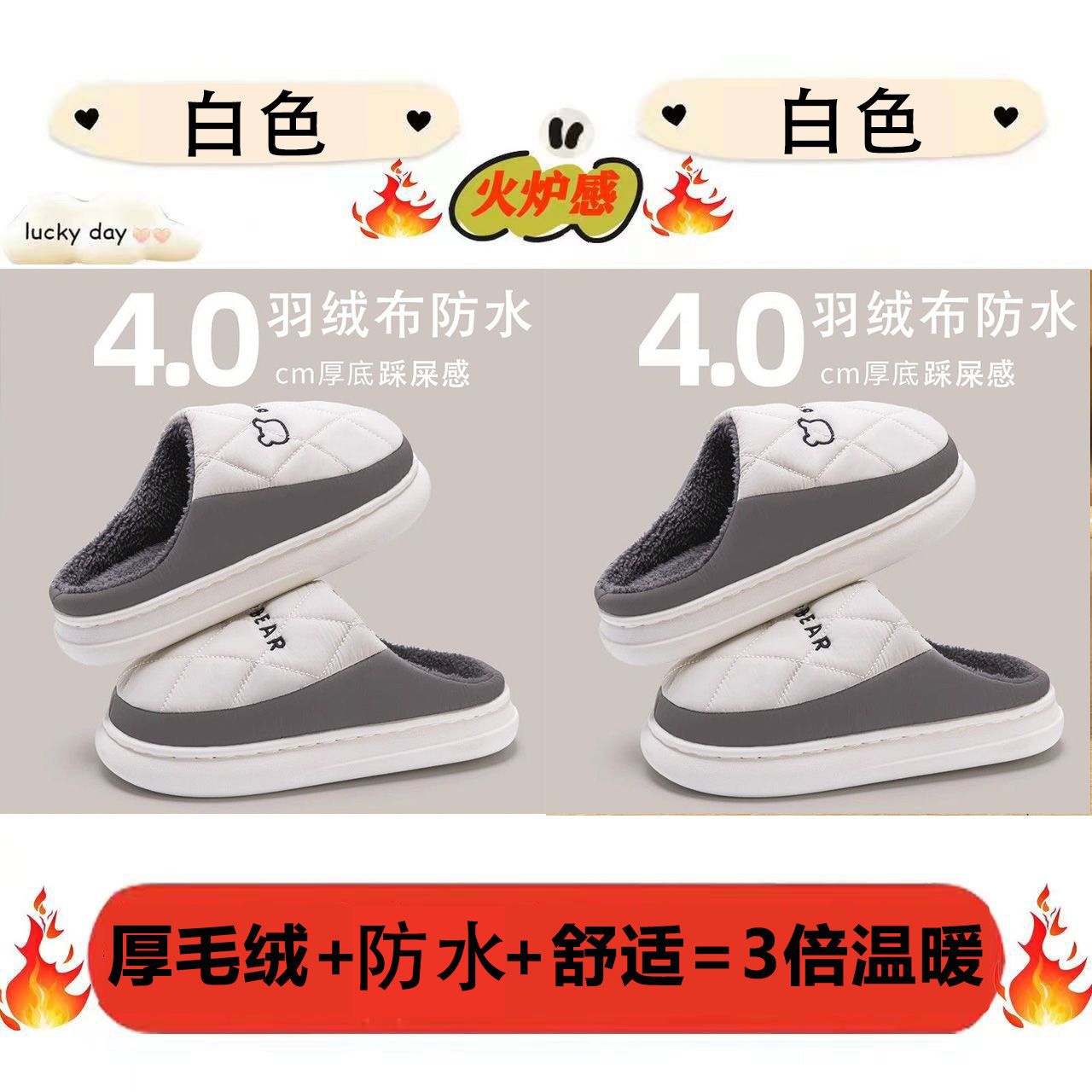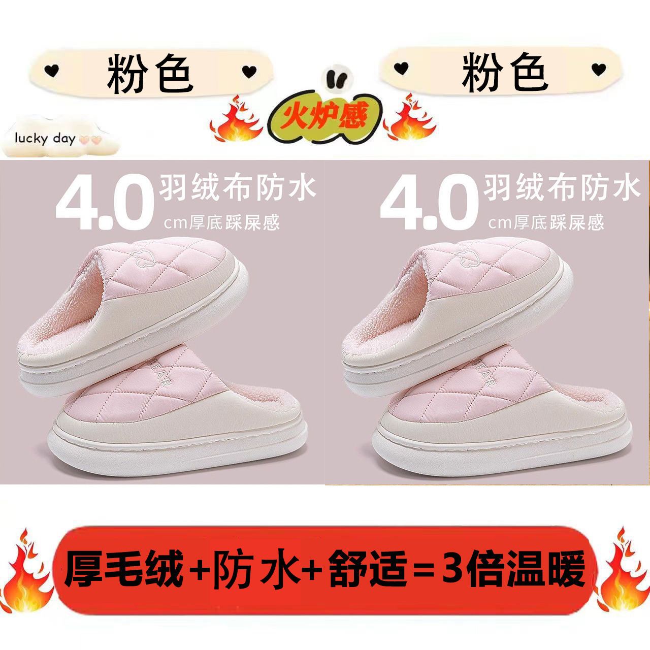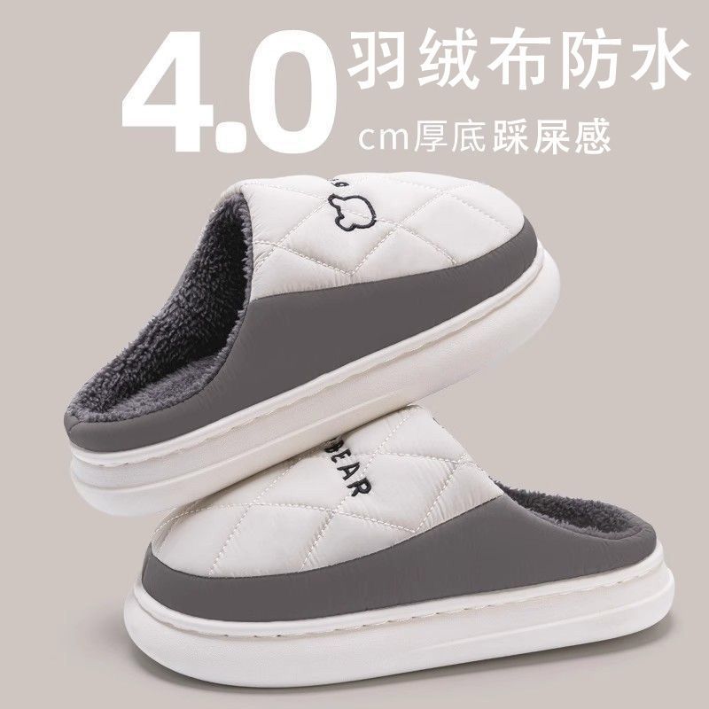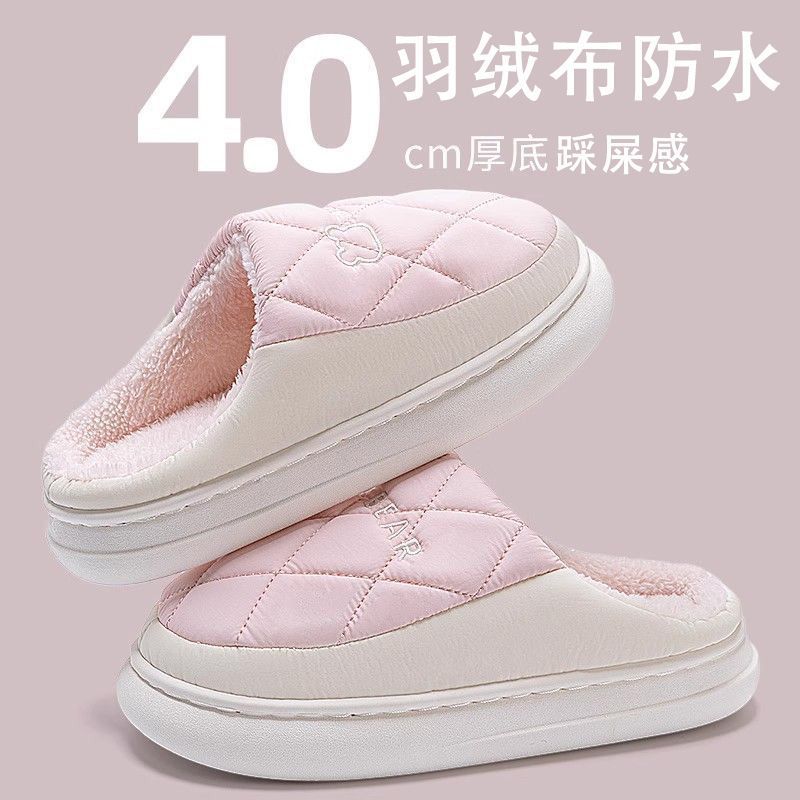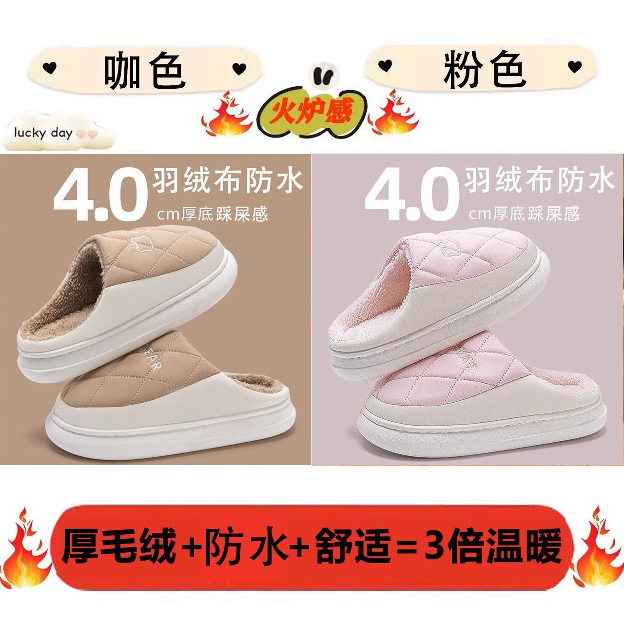 买一送一踩屎感冬季防水棉拖情侣厚底保暖防滑居家待客加绒耐磨鞋