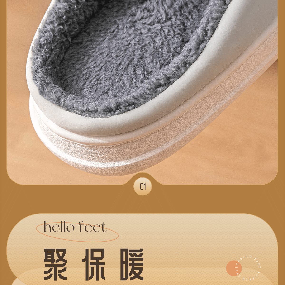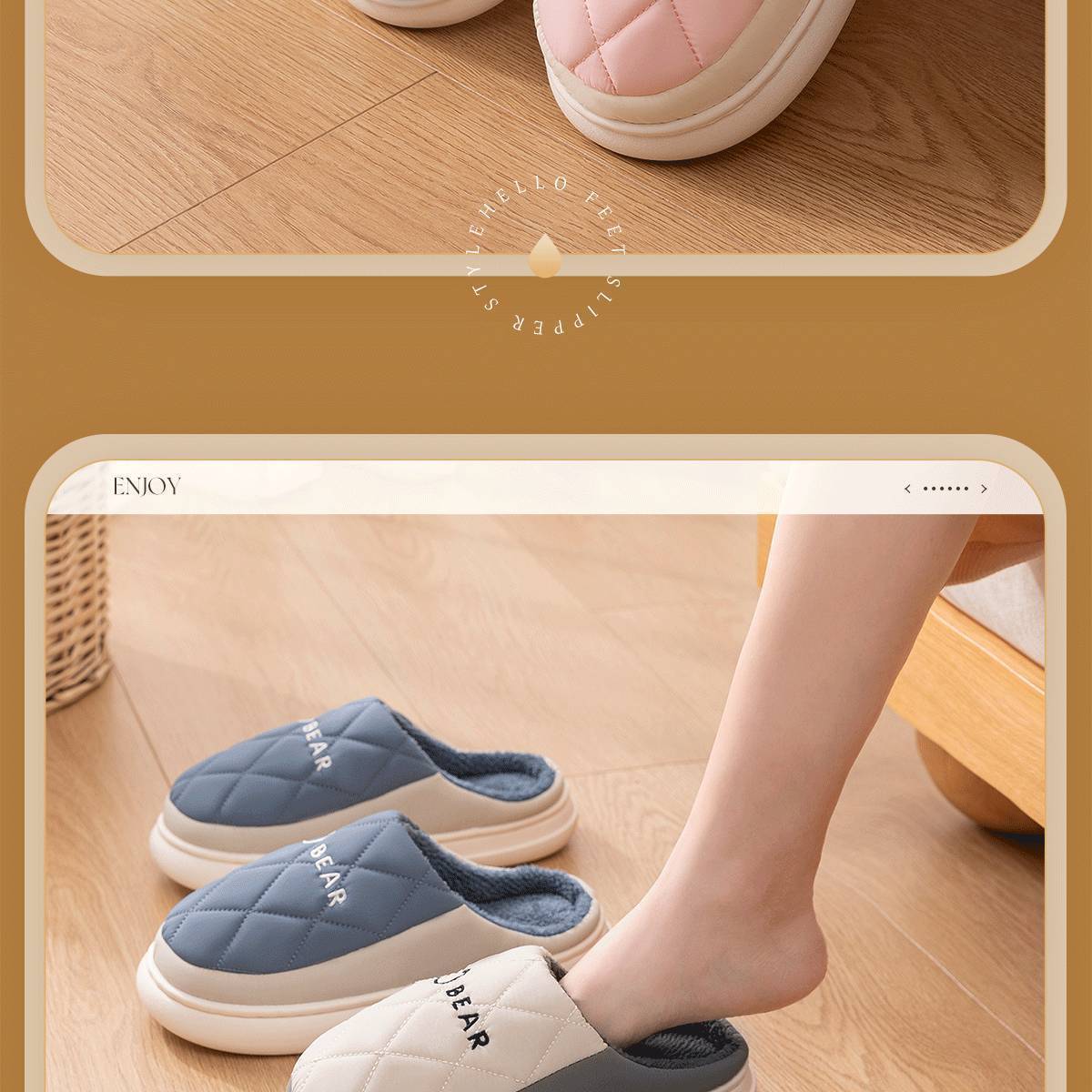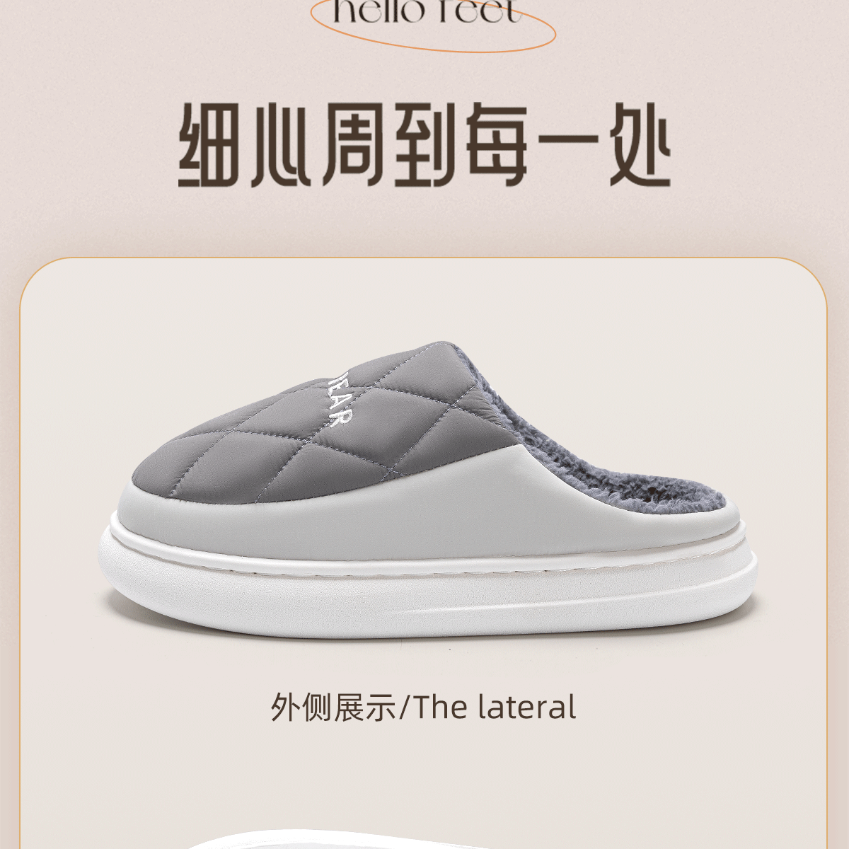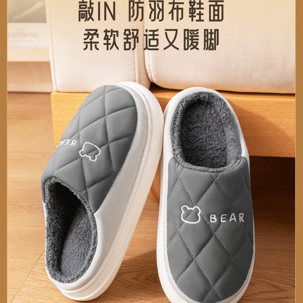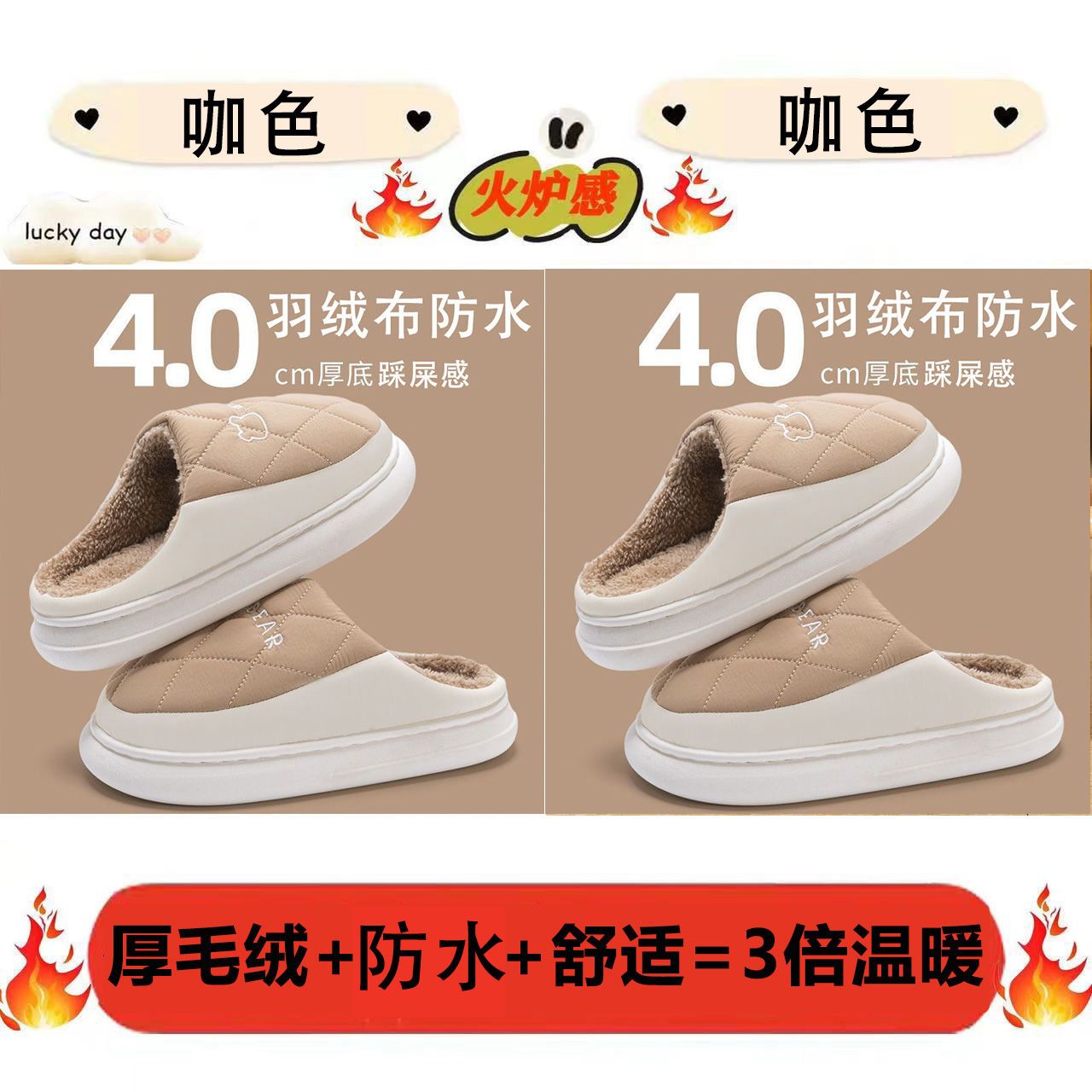 买一送一踩屎感冬季防水棉拖情侣厚底保暖防滑居家待客加绒耐磨鞋