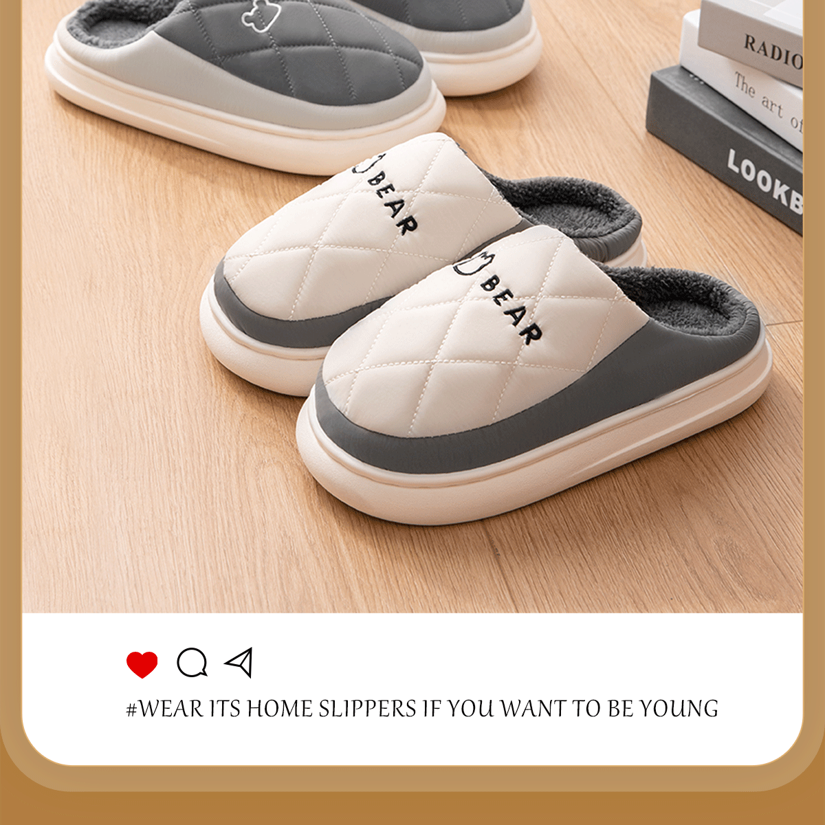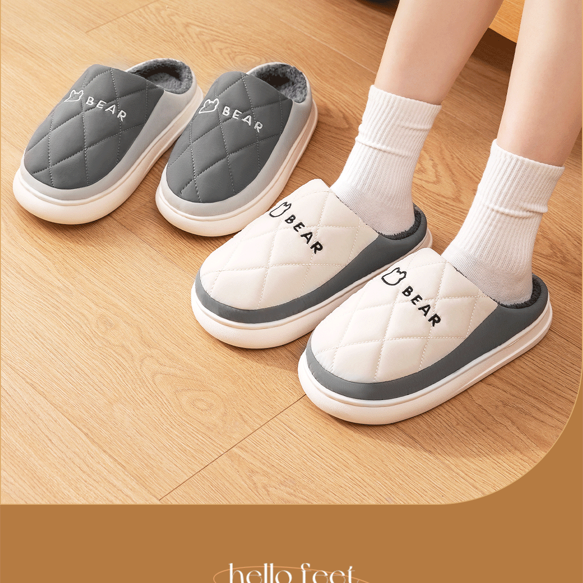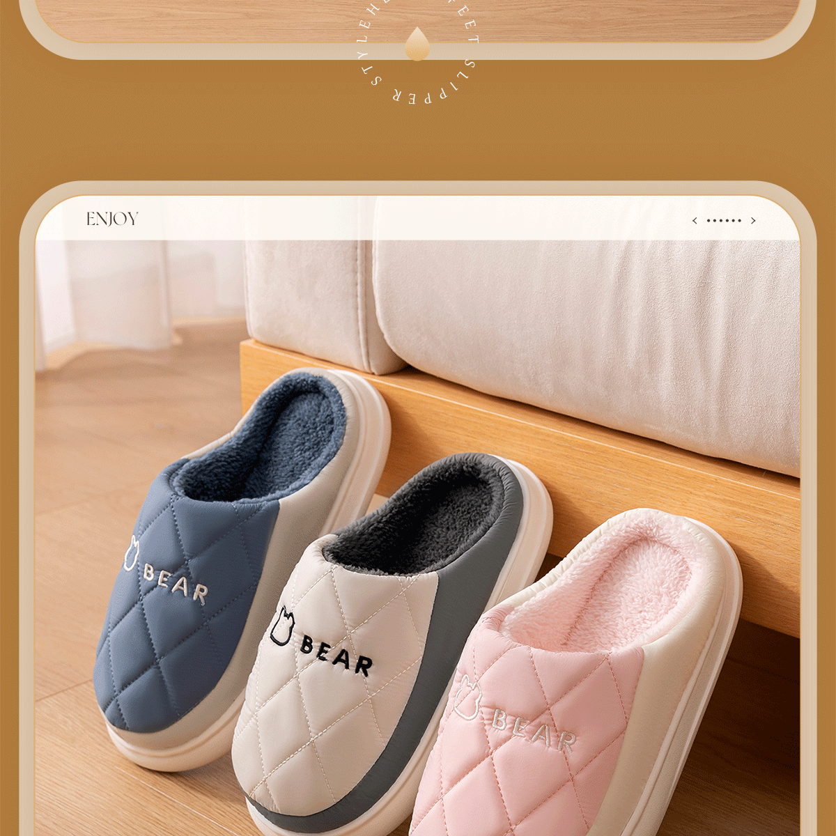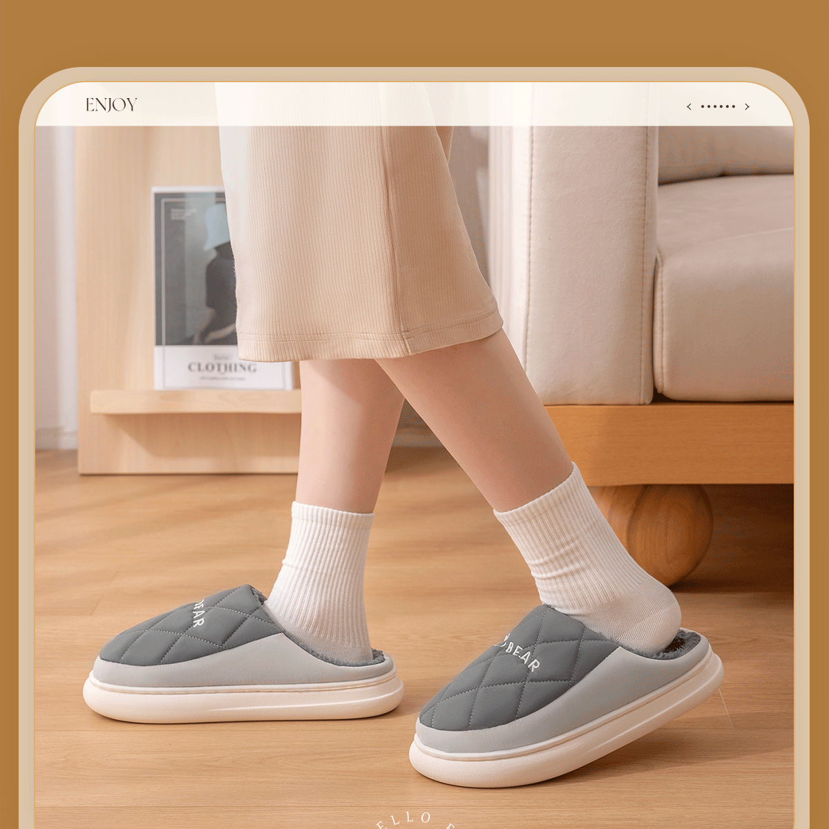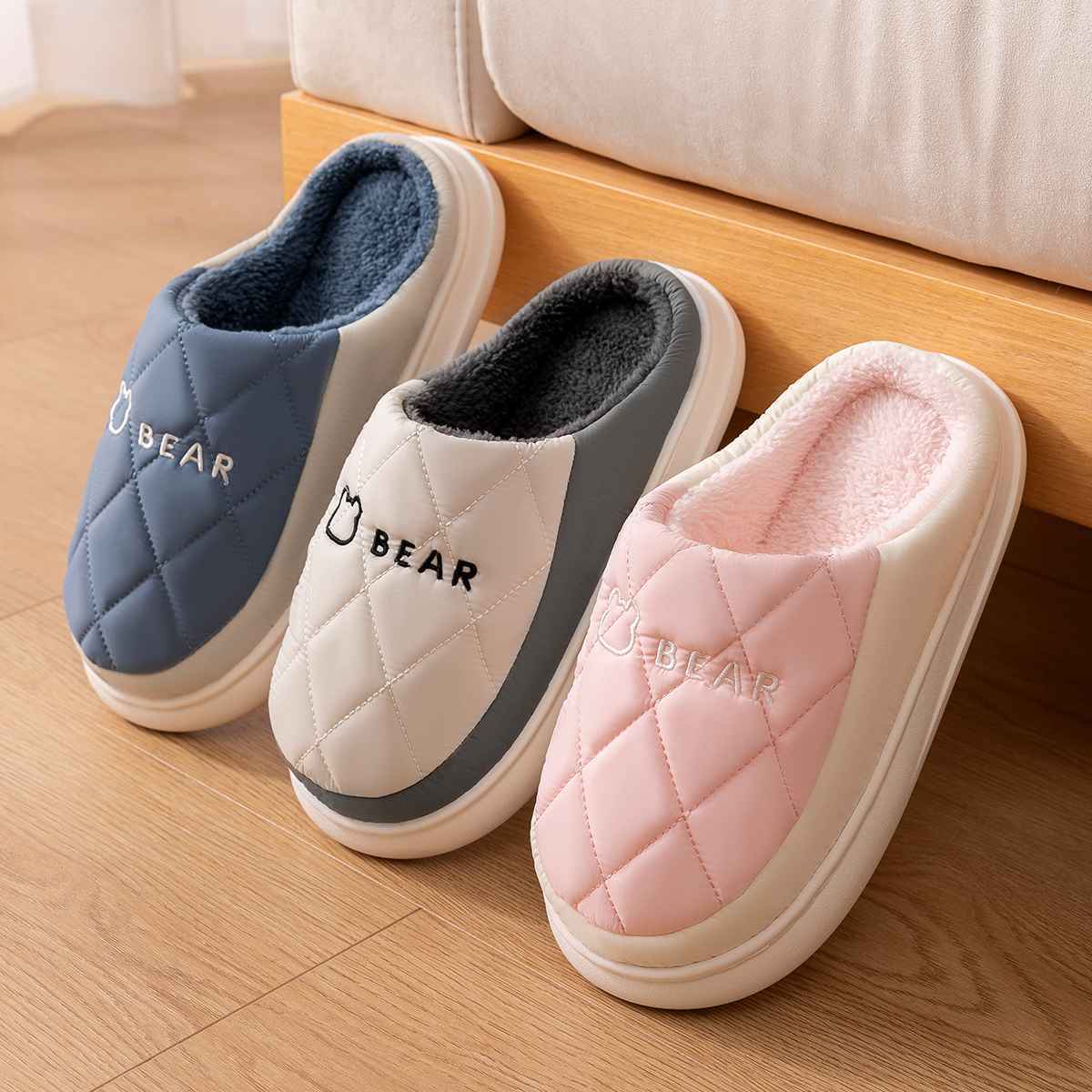 买一送一踩屎感冬季防水棉拖情侣厚底保暖防滑居家待客加绒耐磨鞋