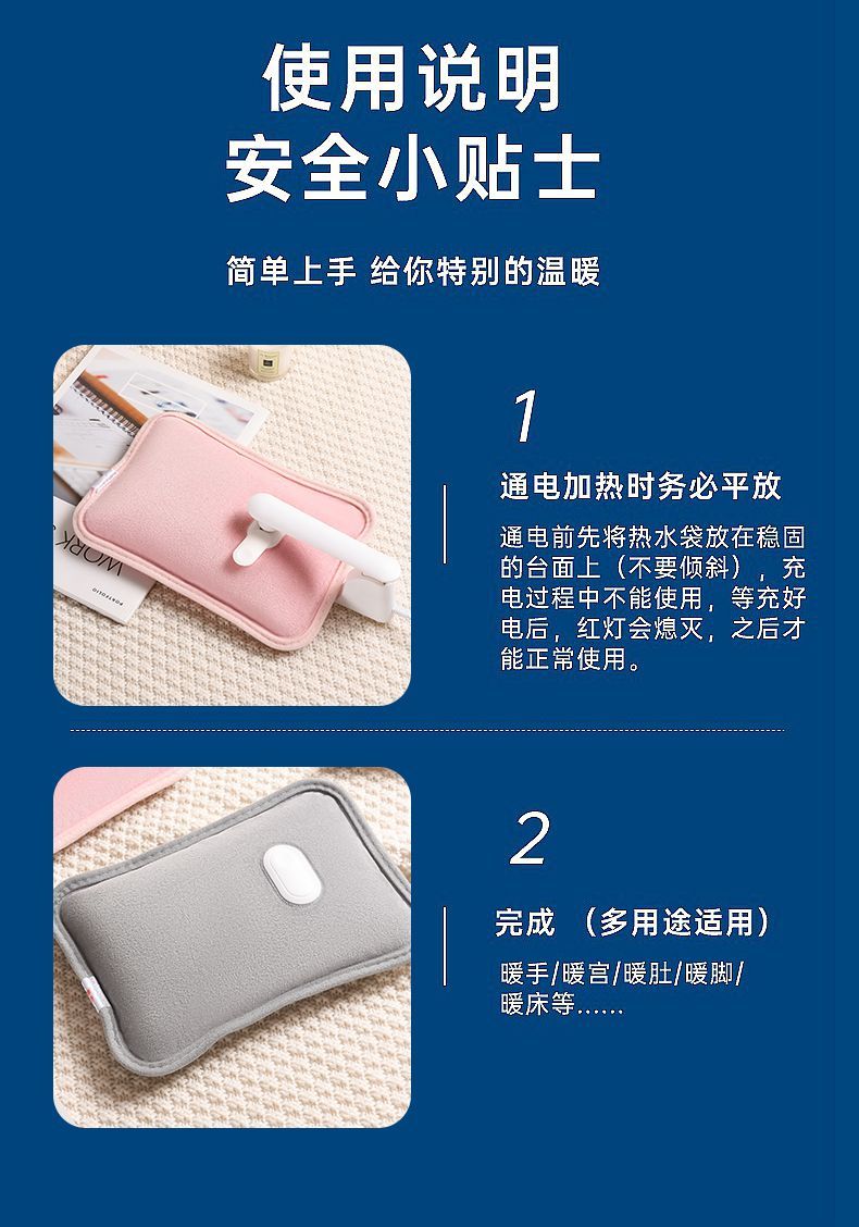 | national standard hot water bag + blue + charging clip(国标热水袋+蓝色+充电夹) | USD $6.54 | 999999 piece available |