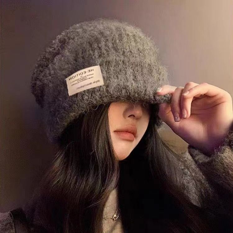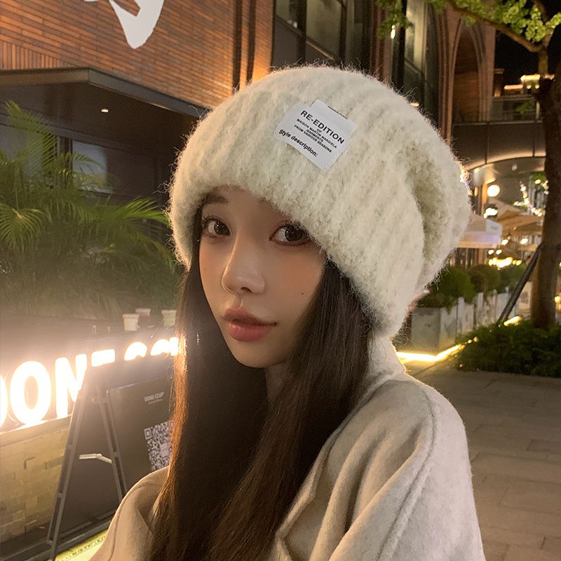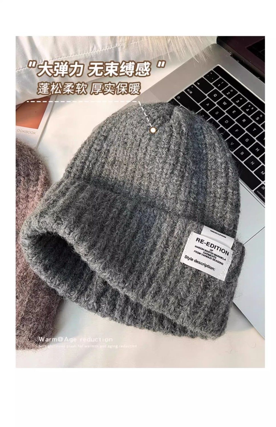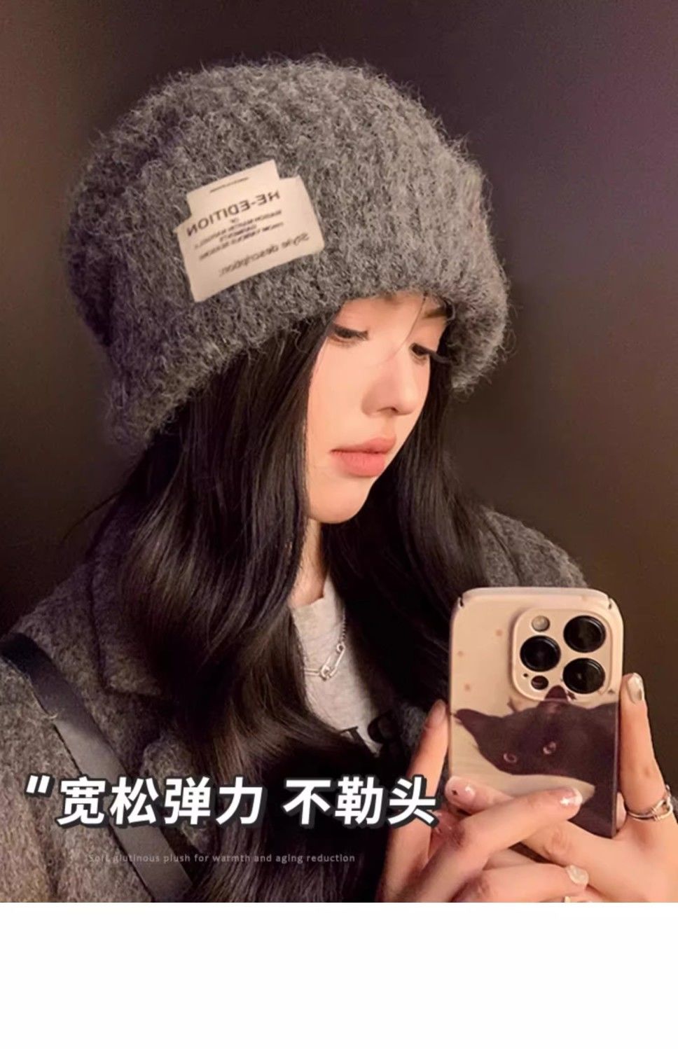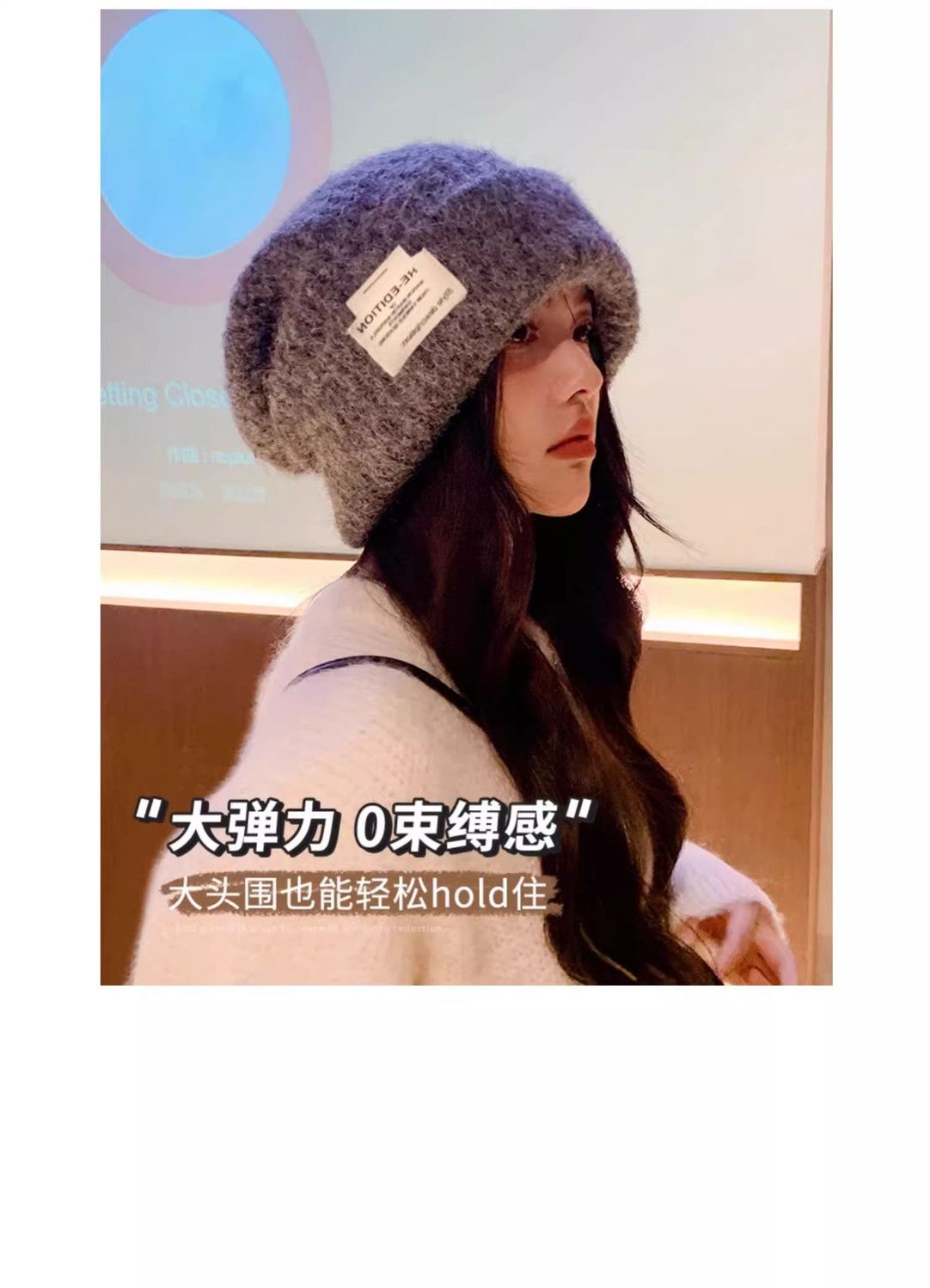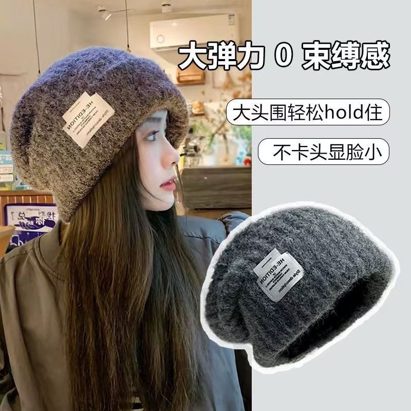 大头围针织帽子女冬季堆堆韩版新款显脸小保暖宽松护耳包头毛线帽