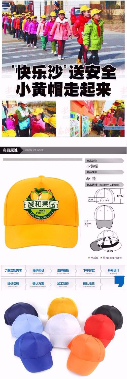 小黄帽定做儿童广告帽定制旅游棒球帽子志愿者帽印字小学生logo帽