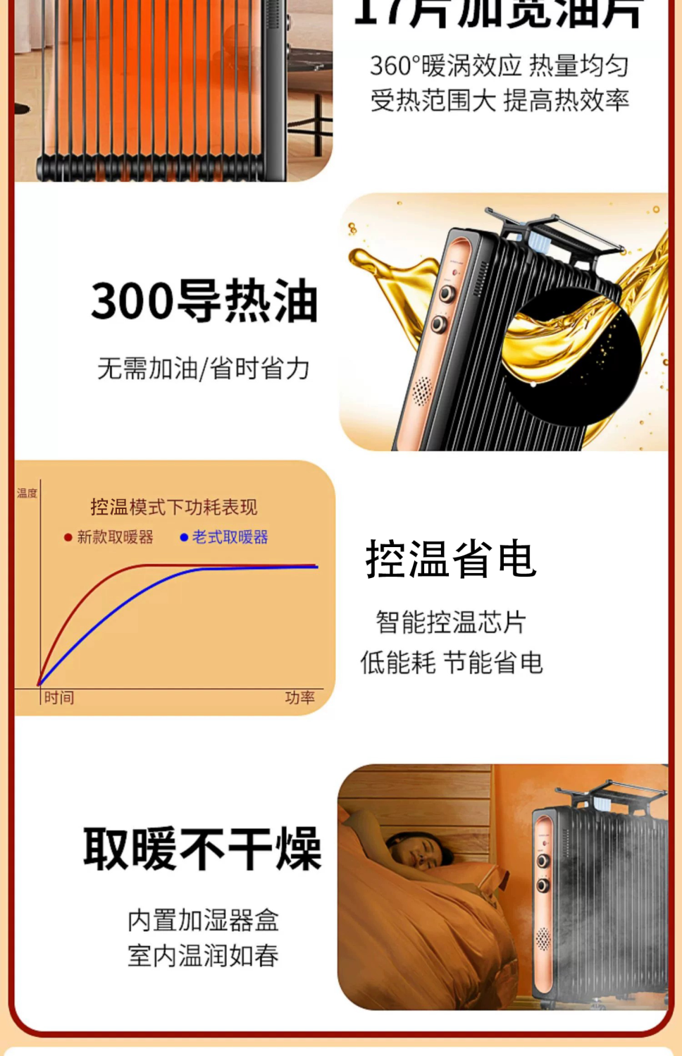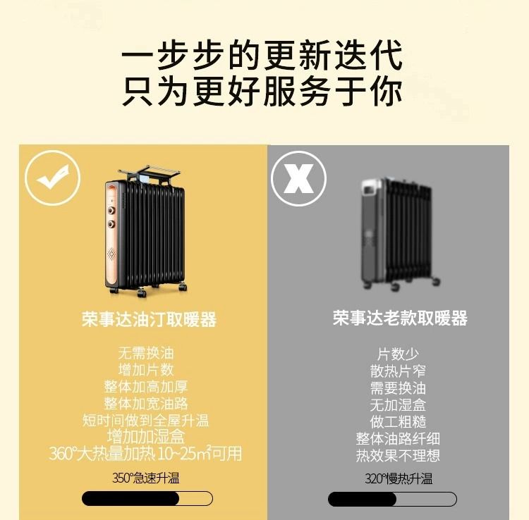 荣事达电热油汀取暖器家用节能速热省电烤火炉小太阳孕婴室内卧室