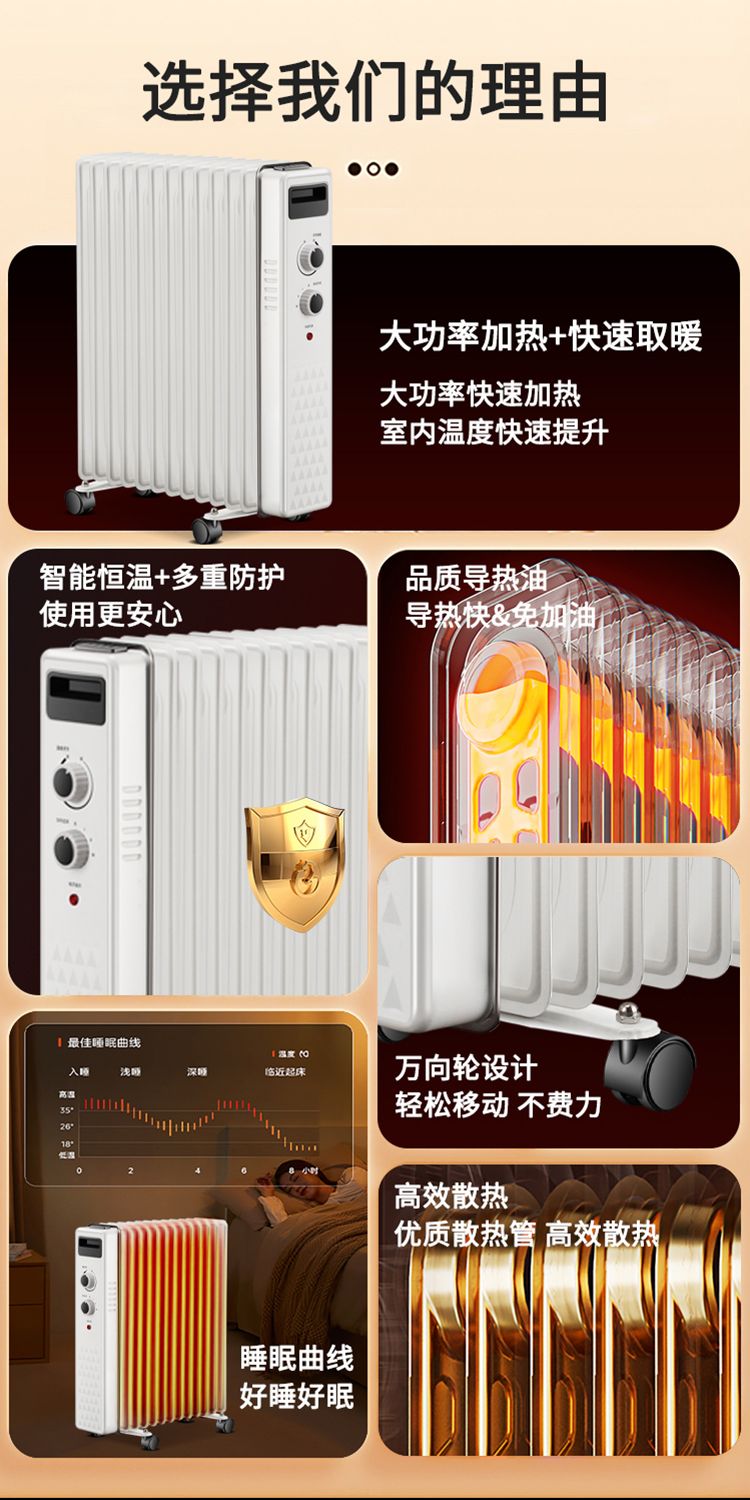 菊花油汀取暖器家用电暖器电暖气暖气片恒温静音节能暖炉速热