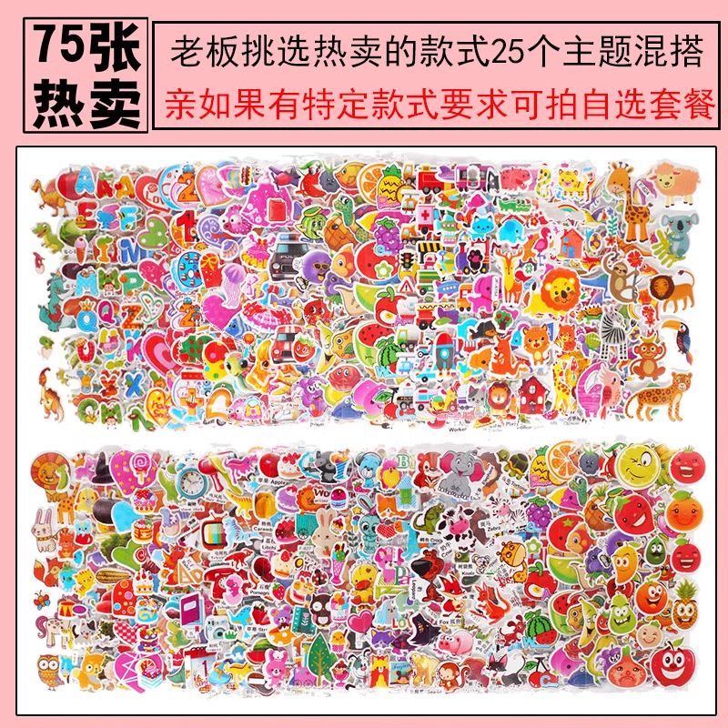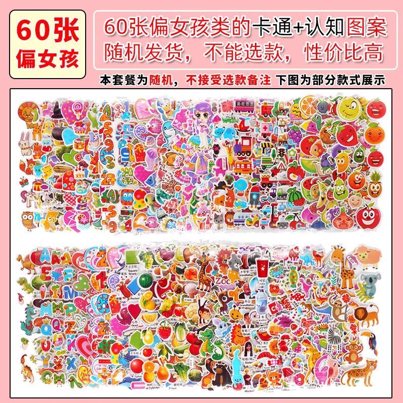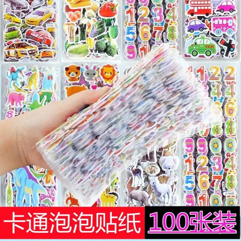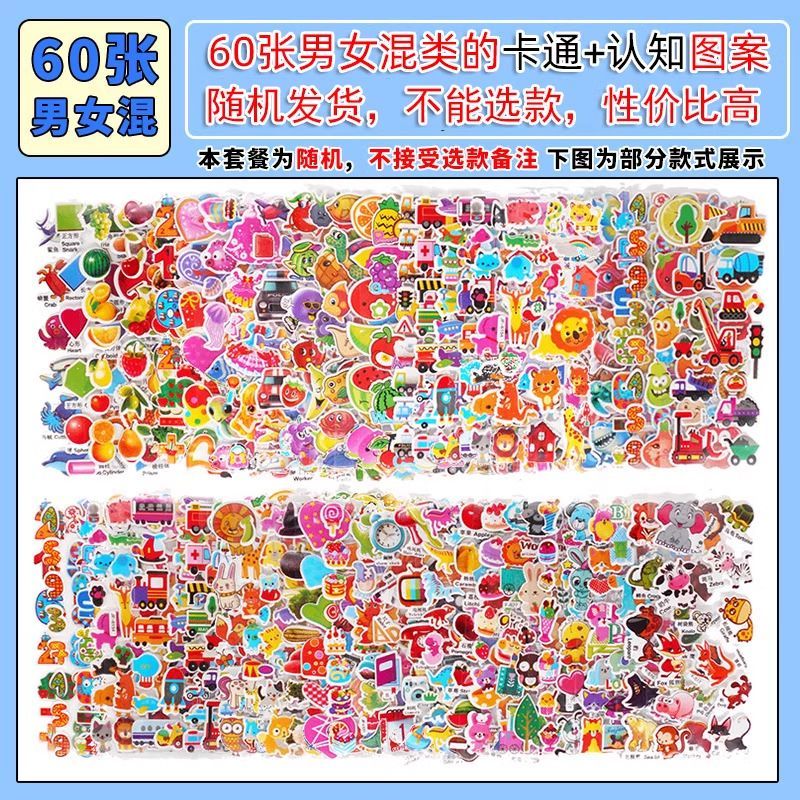 儿童贴纸男女孩卡通泡泡贴画小公主奥特曼3D立体动漫泡泡贴纸奖励
