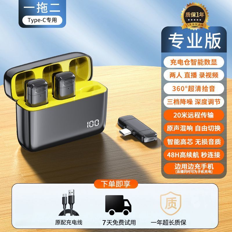无线麦克风领夹式主播直播专用一拖二专业级降噪收发器苹果15录音