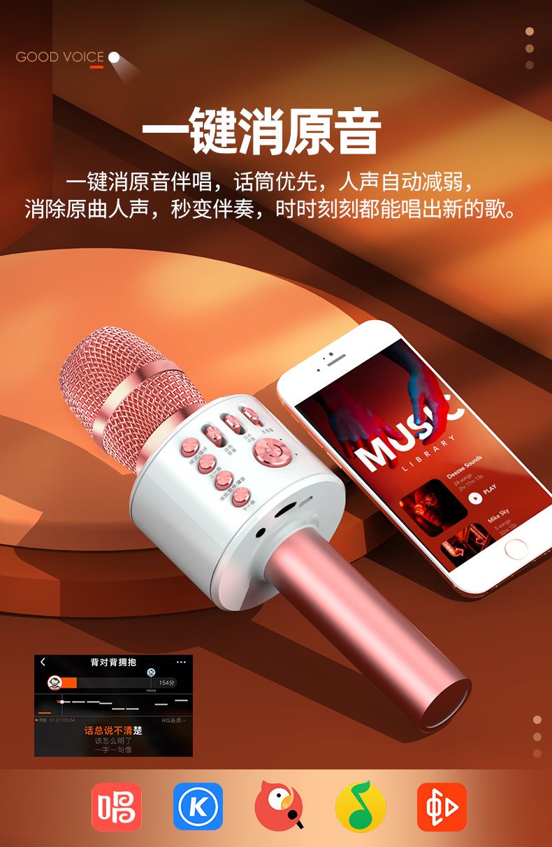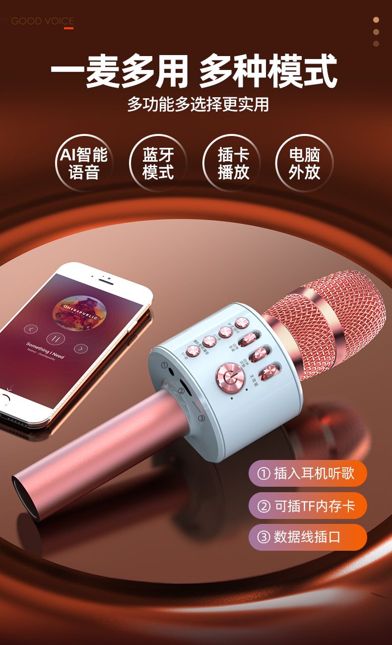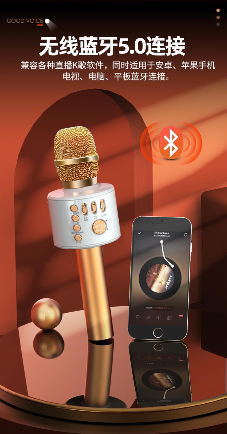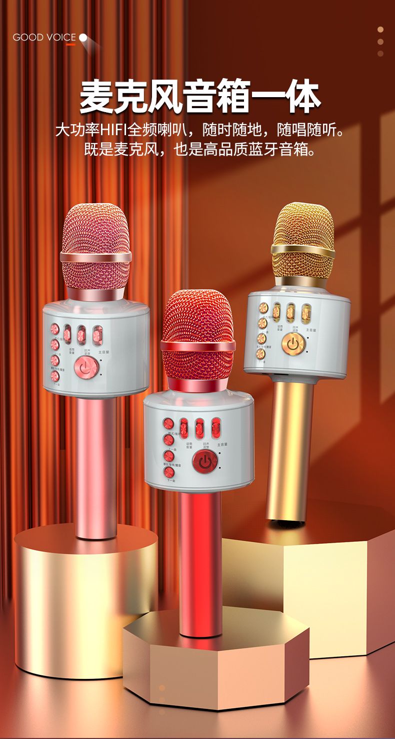 话筒音响一体麦克风儿童无线蓝牙可充电全民唱歌话筒手机电视通用