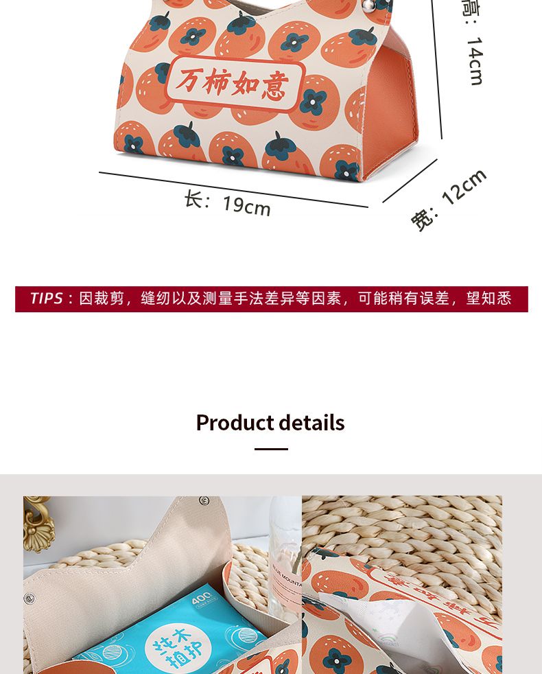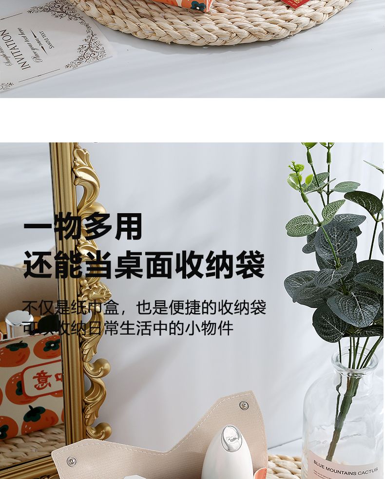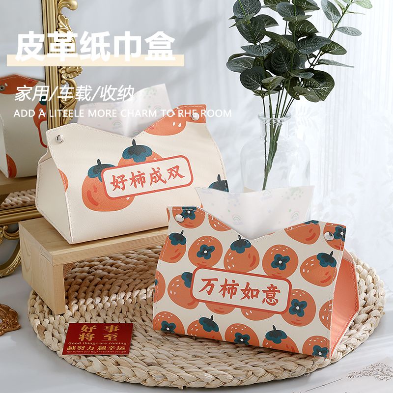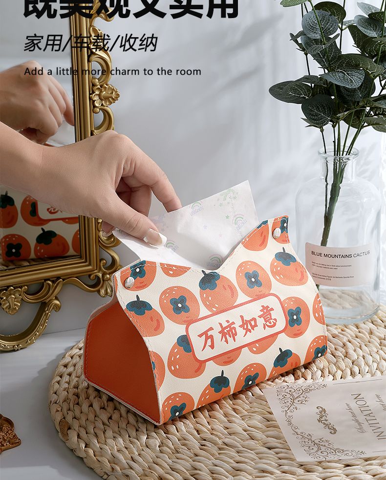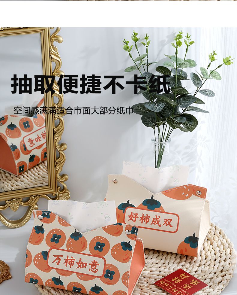 北欧风万柿如意纸抽盒客厅车载卫生间卷纸巾盒装饰袋收纳套抽纸盒