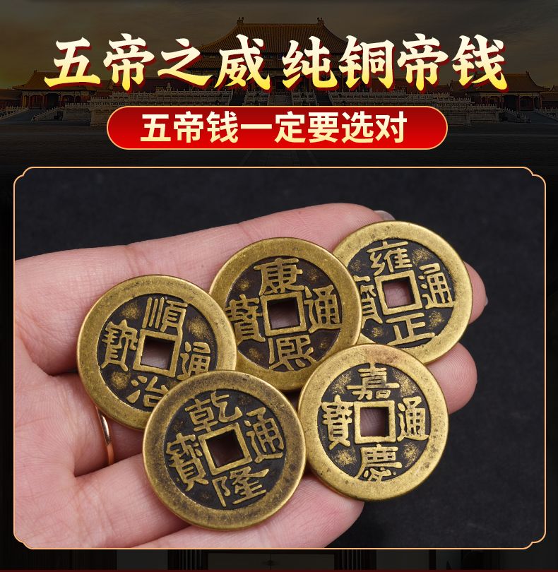 | [brass five emperor coins pendants] 10 strings *(【黄铜五帝钱挂件】10串*) | USD $5.37 | 999999 piece available |