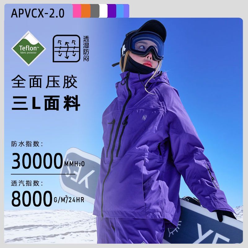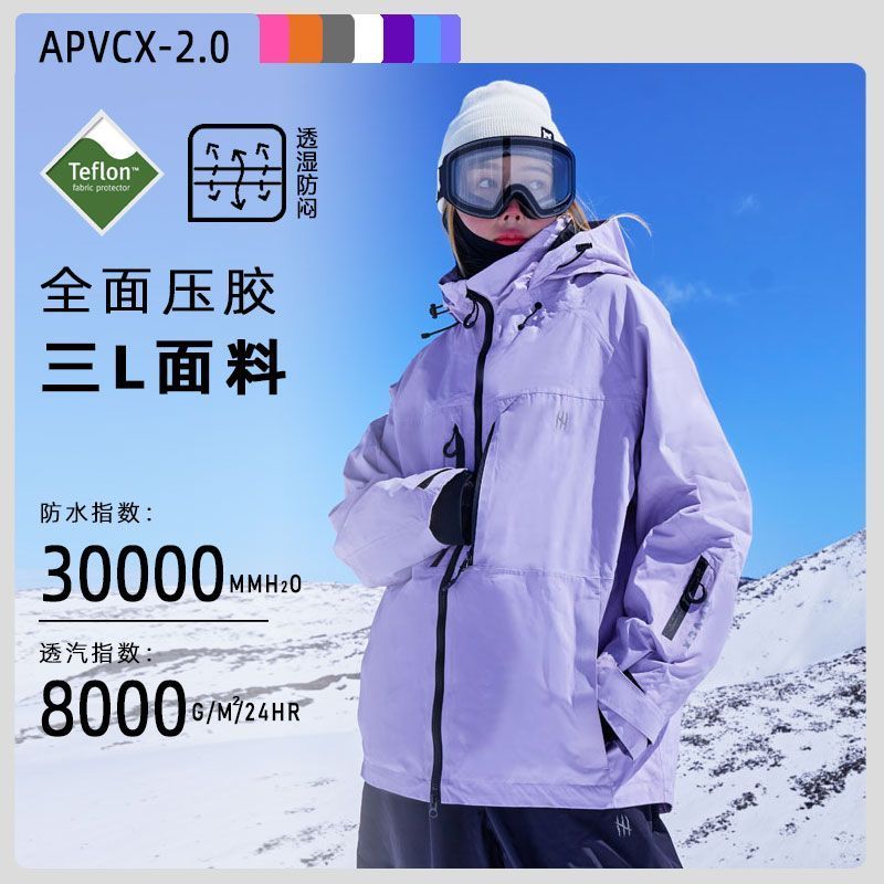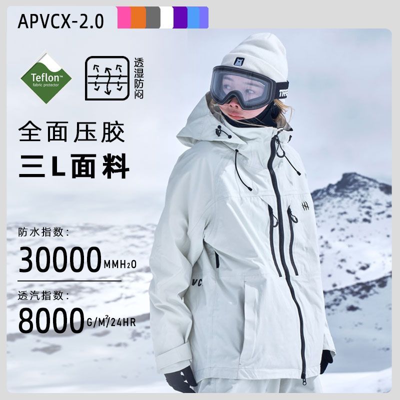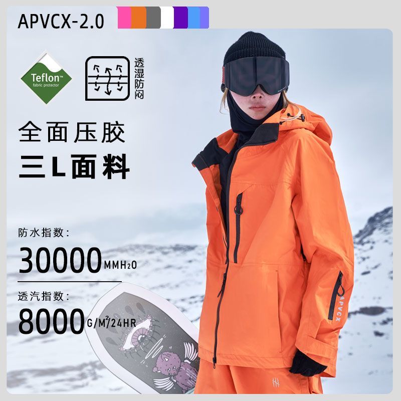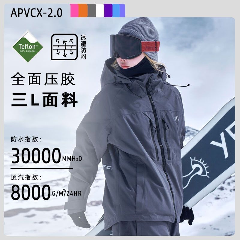 APVCX新款2024滑雪服2.0男女套装单板男女款保暖美式外套防水防风
