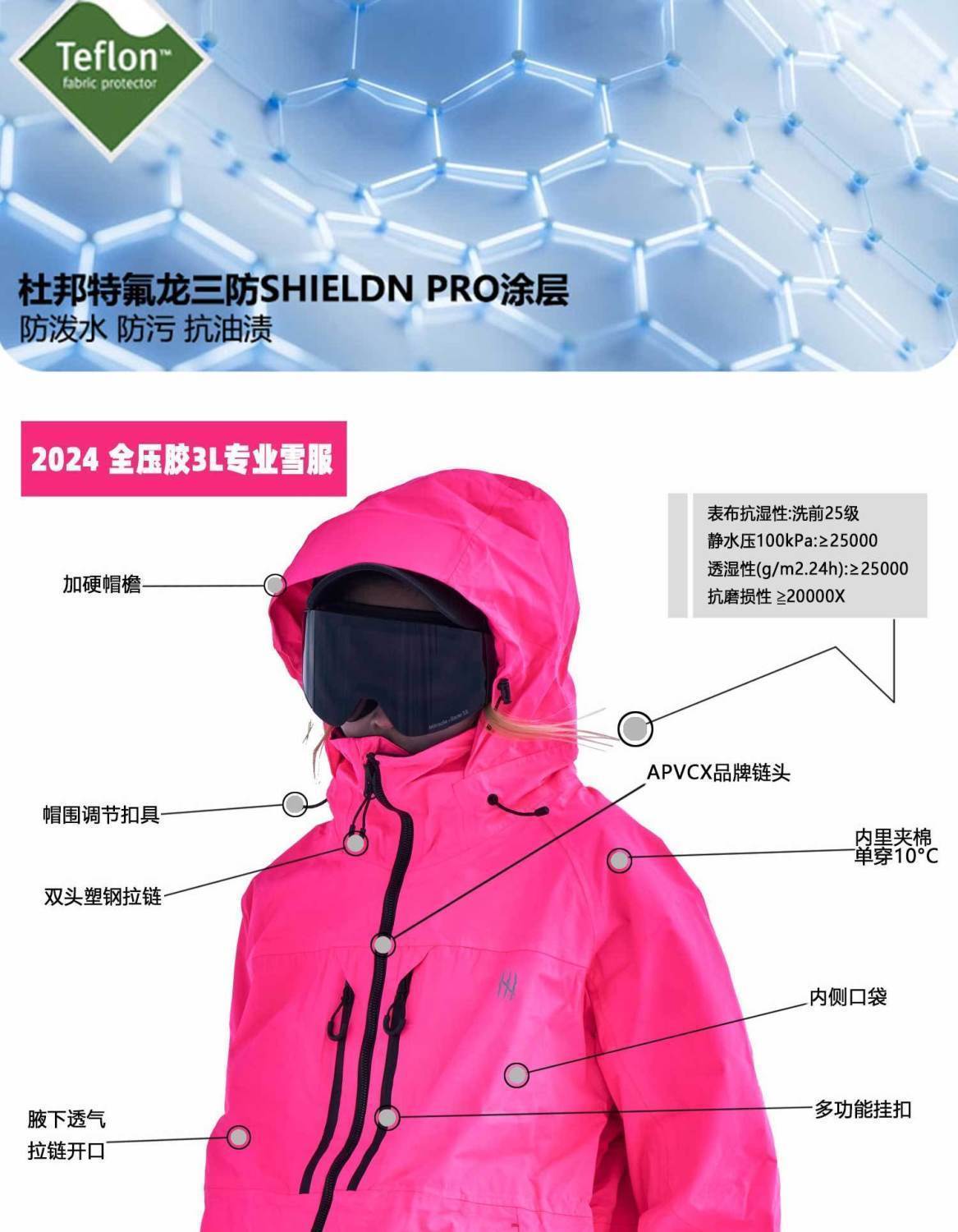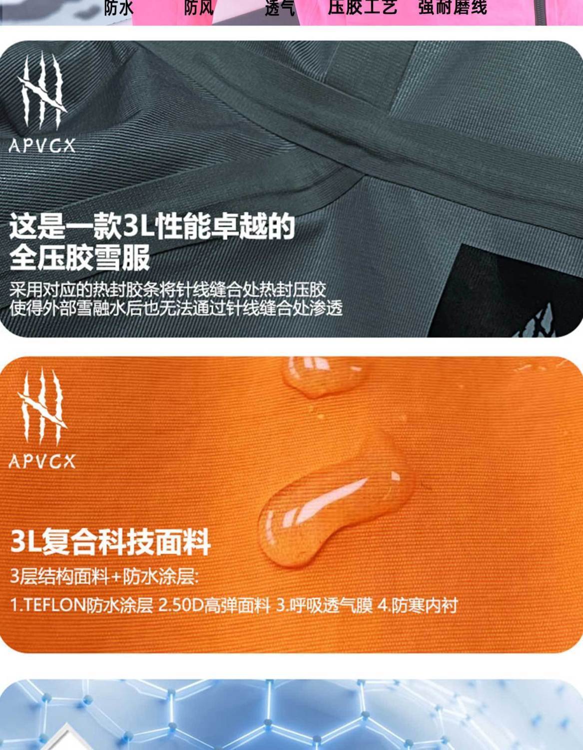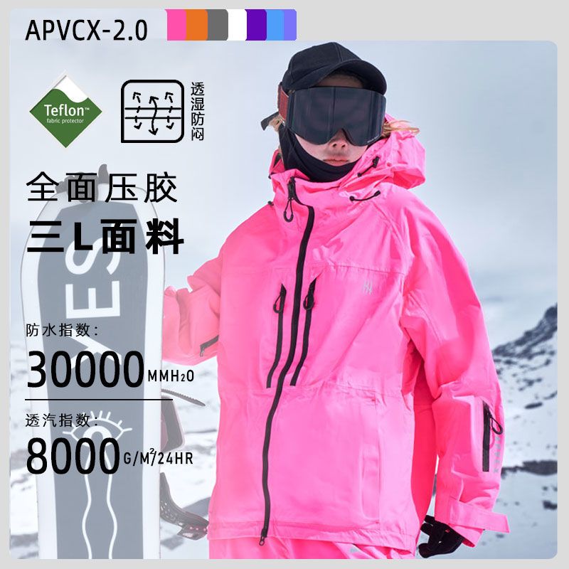 APVCX新款2024滑雪服2.0男女套装单板男女款保暖美式外套防水防风