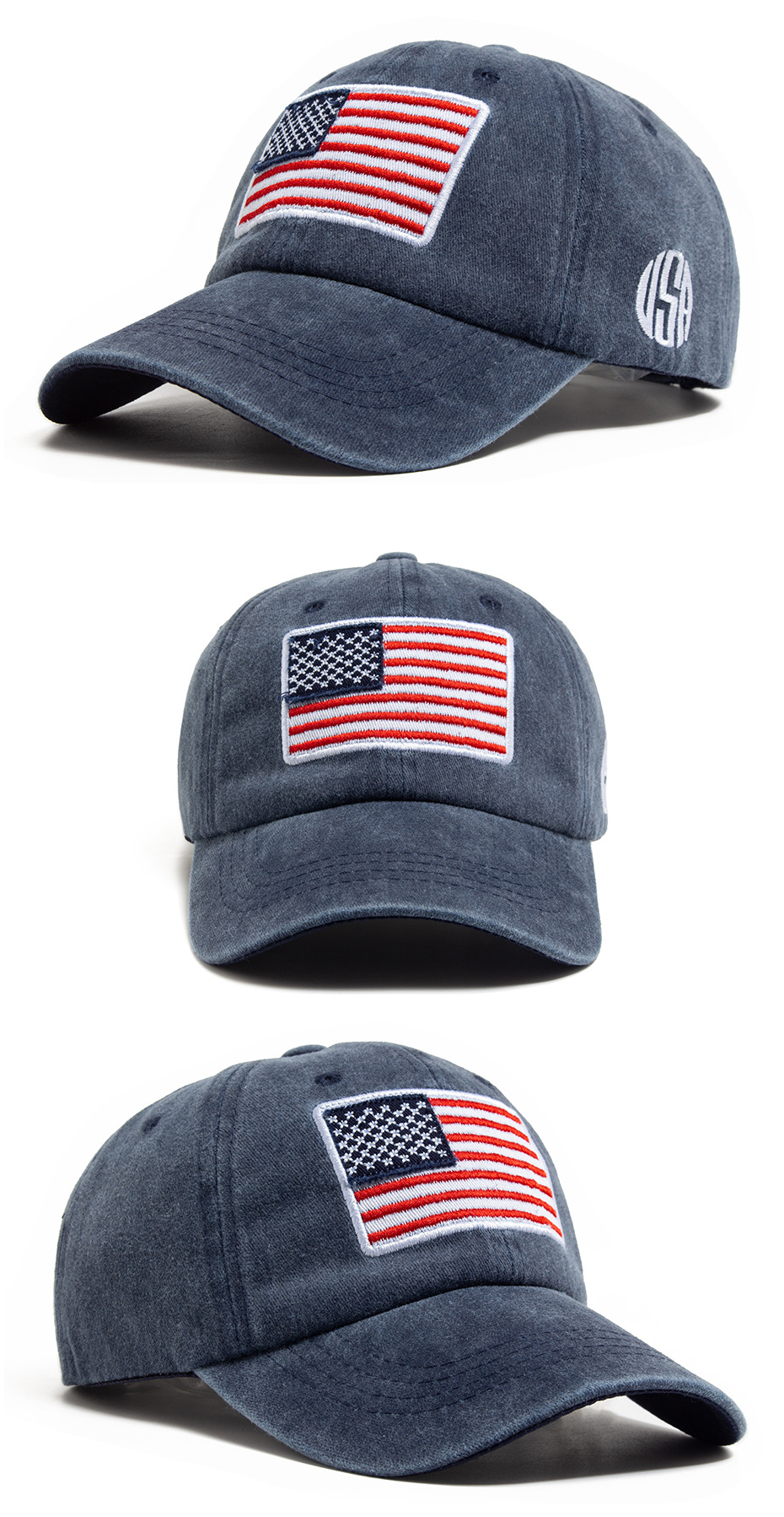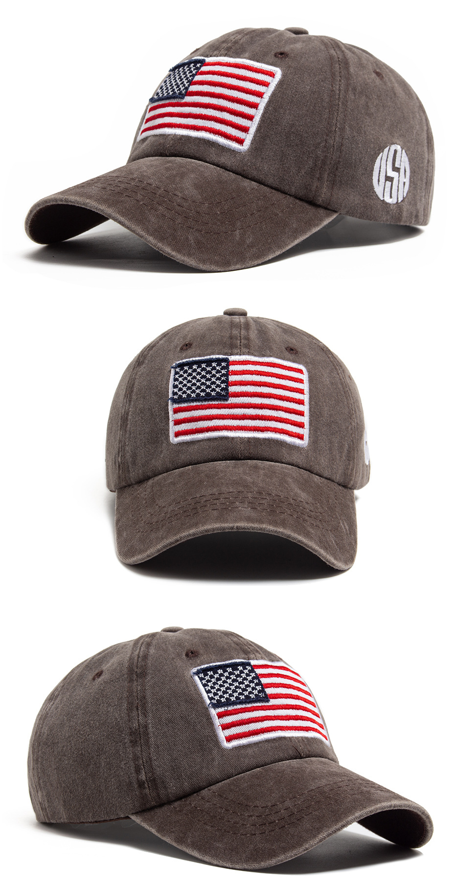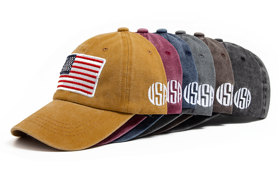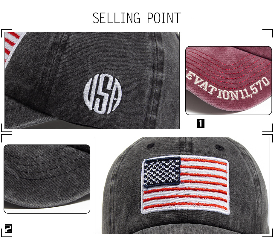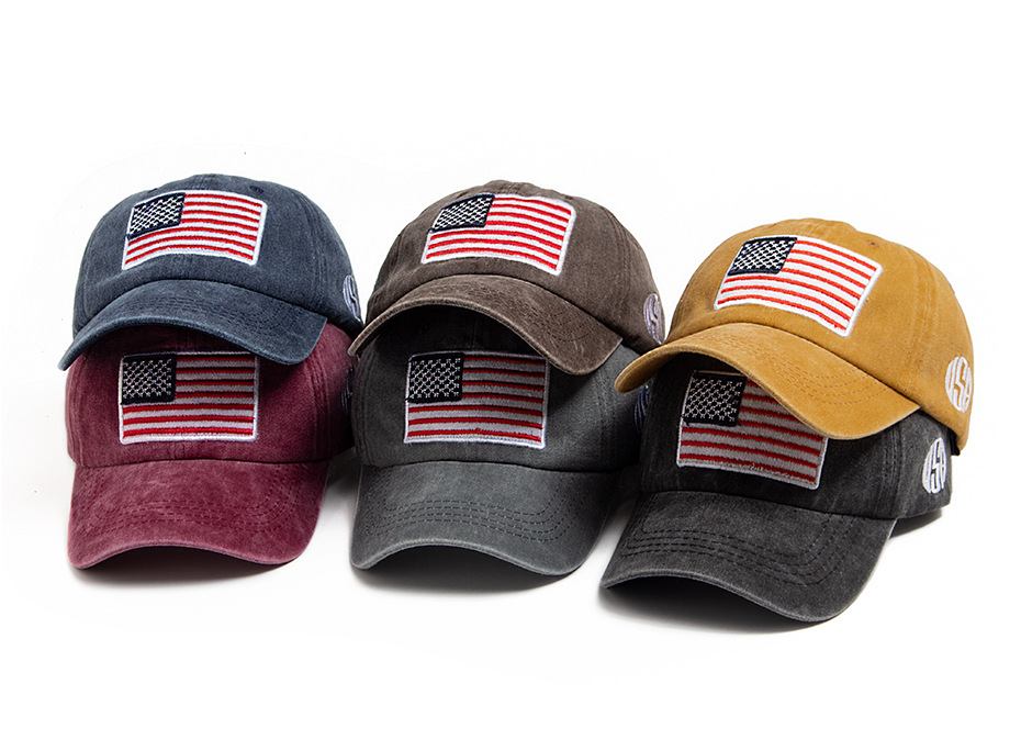 跨境美国国旗刺绣棒球帽男亚马逊热销水洗棉复古鸭舌帽春夏遮阳帽