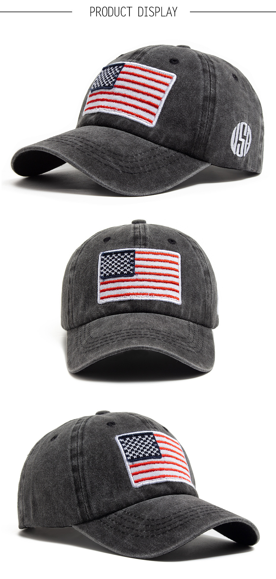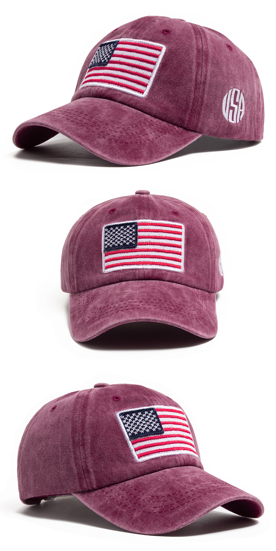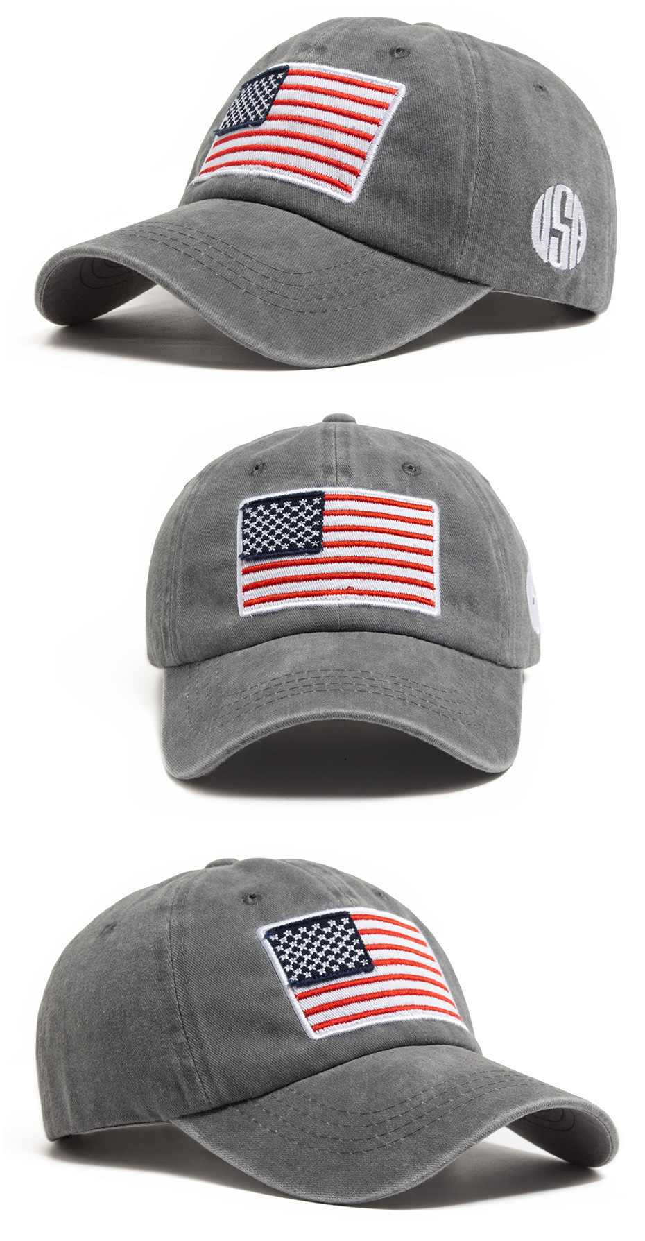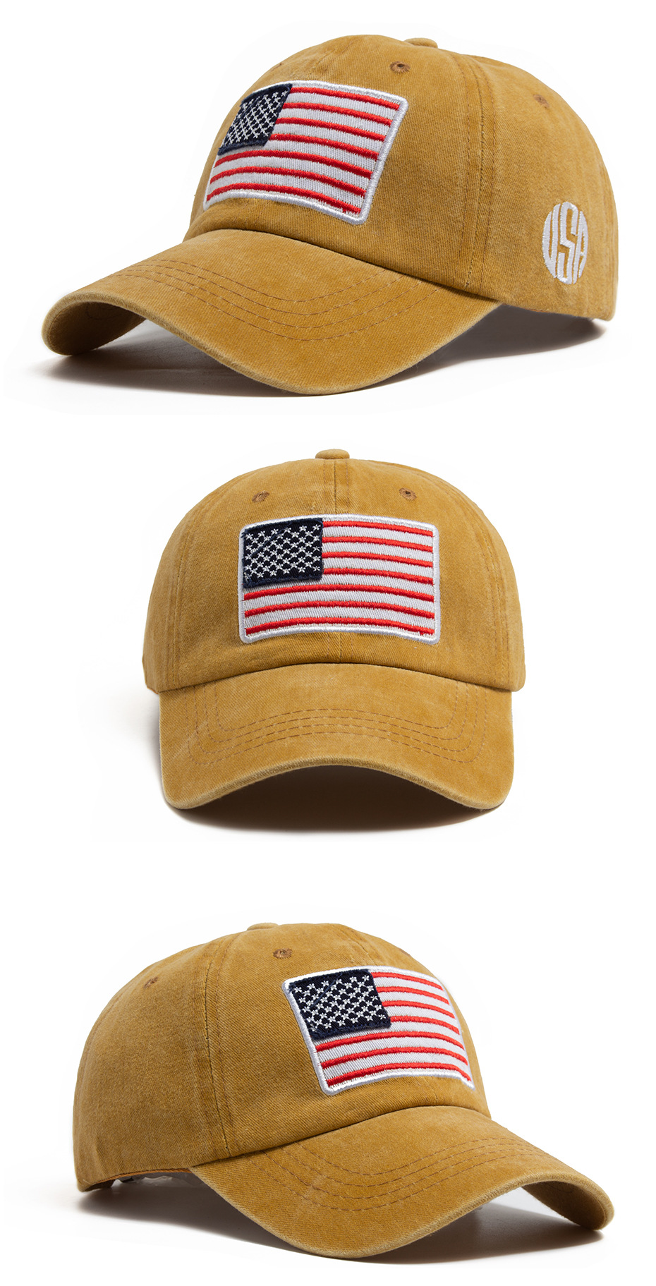 跨境美国国旗刺绣棒球帽男亚马逊热销水洗棉复古鸭舌帽春夏遮阳帽