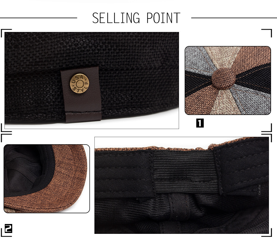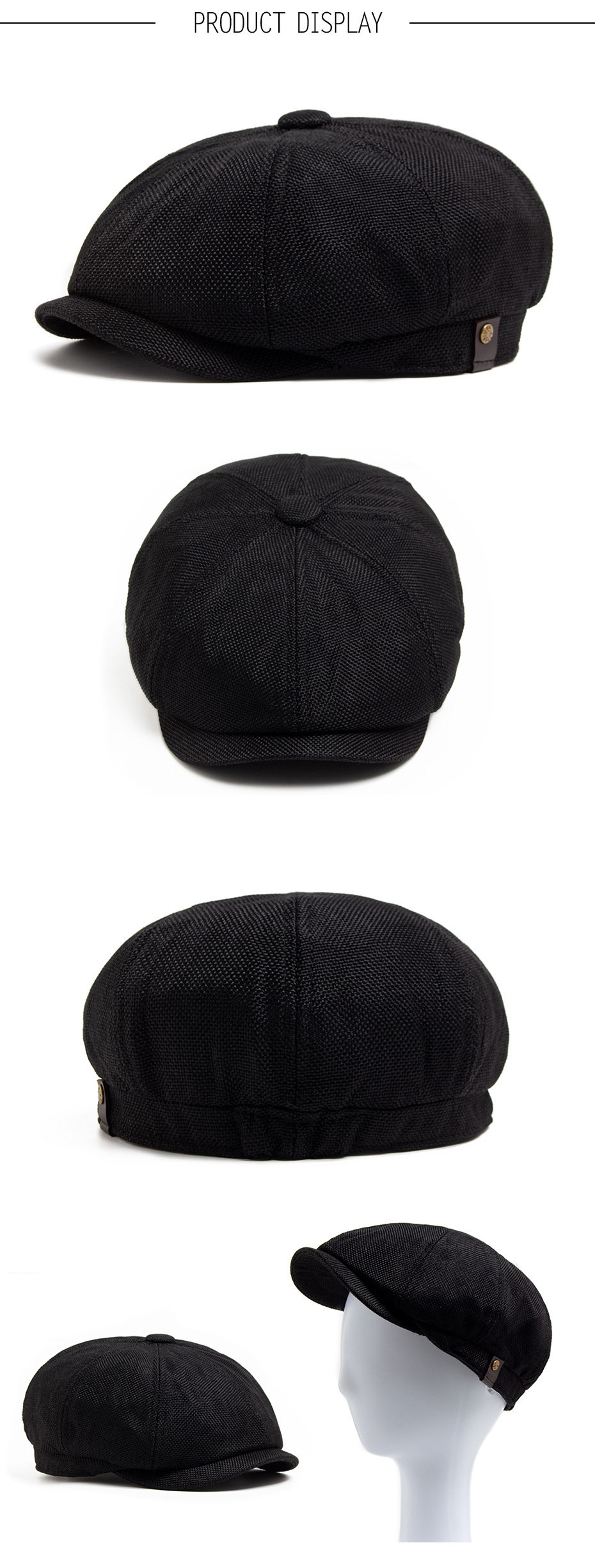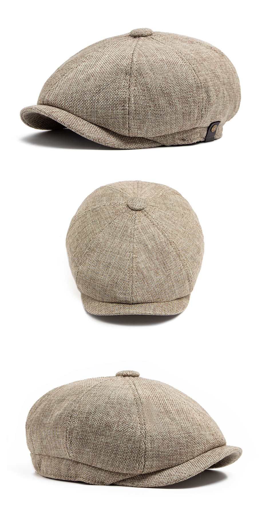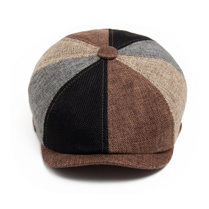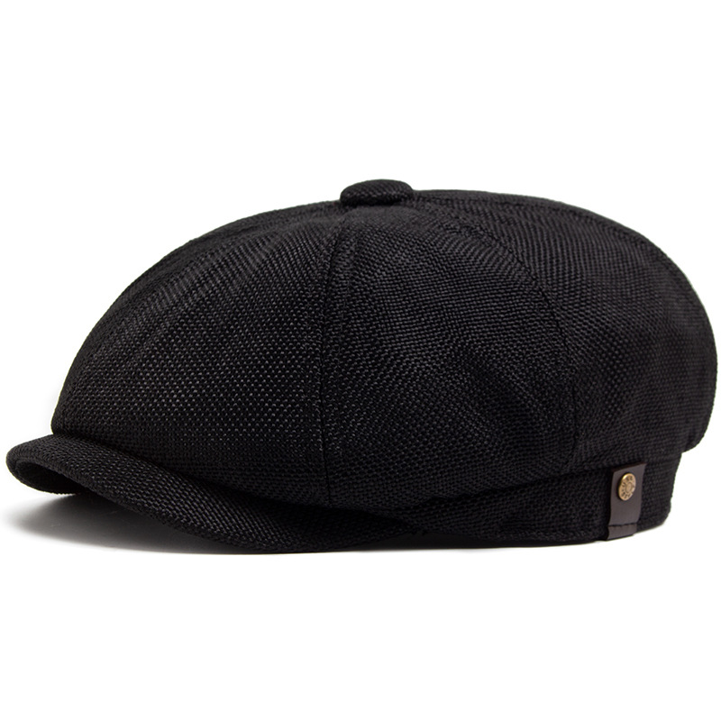 仿麻八角帽男士春夏薄款透气鸭舌帽英伦复古休闲贝雷帽女外贸批发