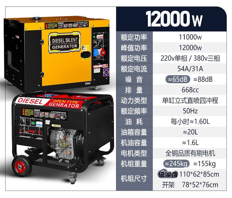| 12kw luxury low noise dual voltage(12KW豪华低噪音款双电压) | USD $1805.3 | 999999 piece available |