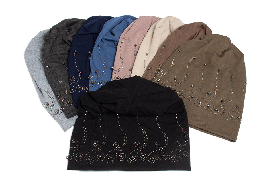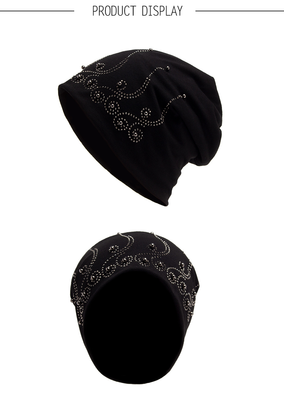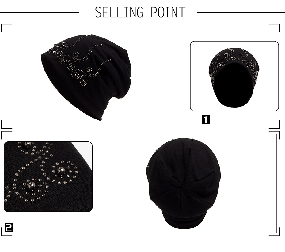 欧美双层套头帽女士时尚烫钻无檐小便帽薄款帽子跨境现货批发春秋