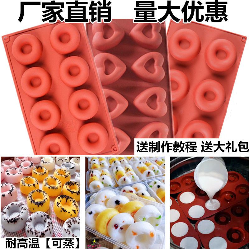 8连甜甜圈模具硅胶米糕模具水塔糕蒸糕模家用6连烘焙蛋糕蒸模商用