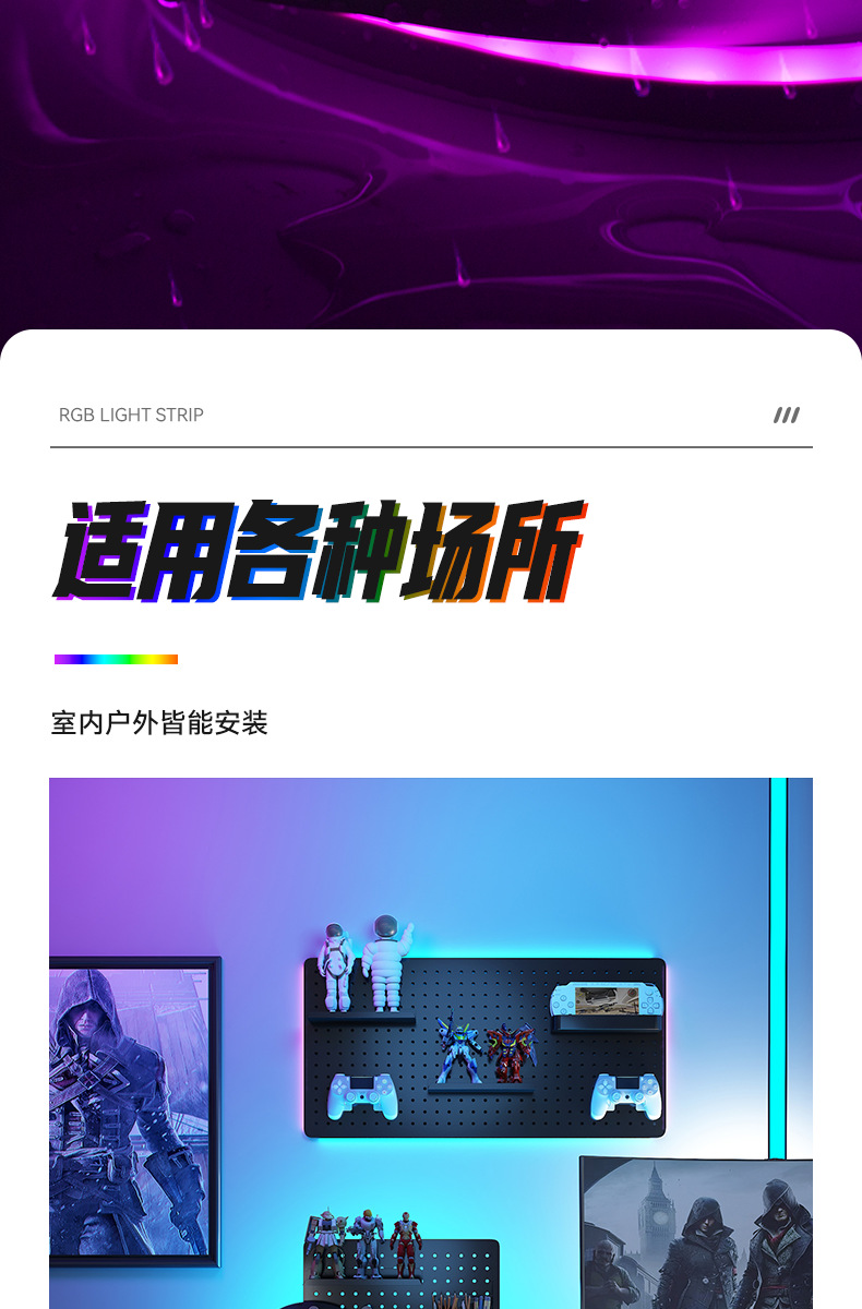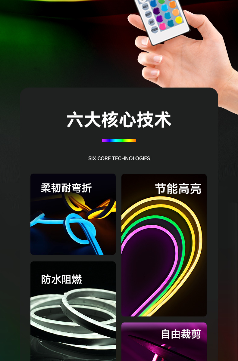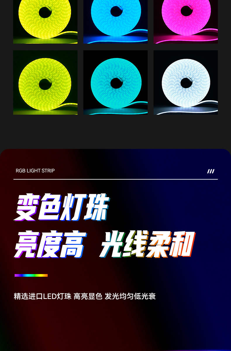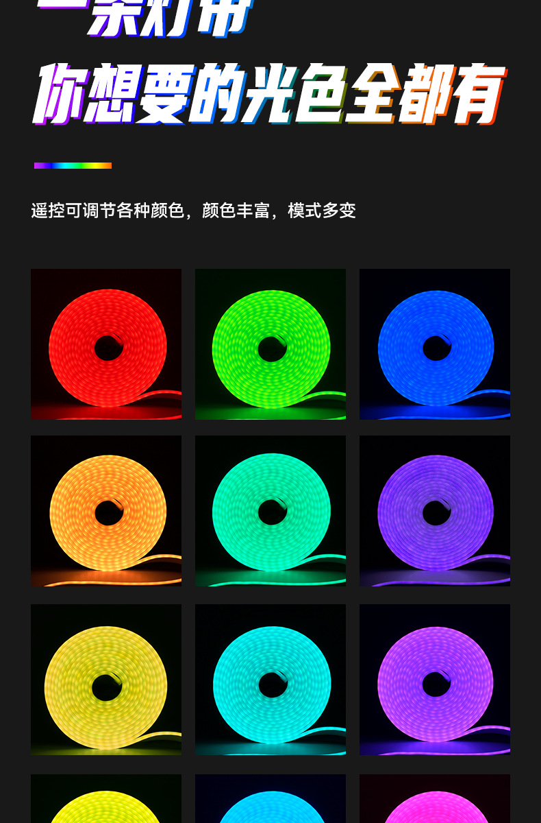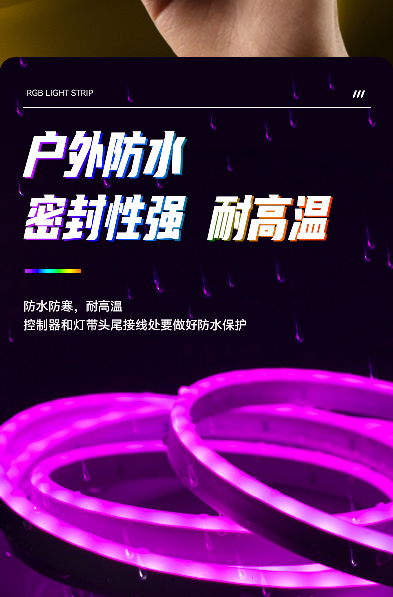 LED灯条RGB七彩变色柔性硅胶霓虹氛围light自粘户外防水低压灯带