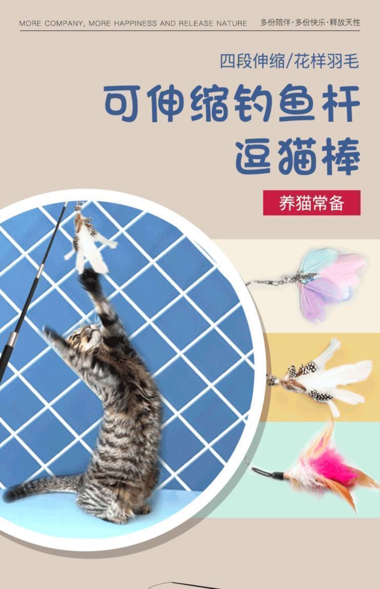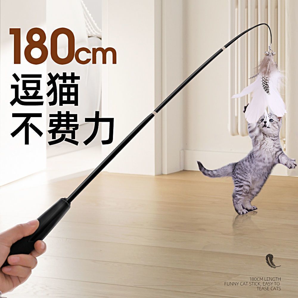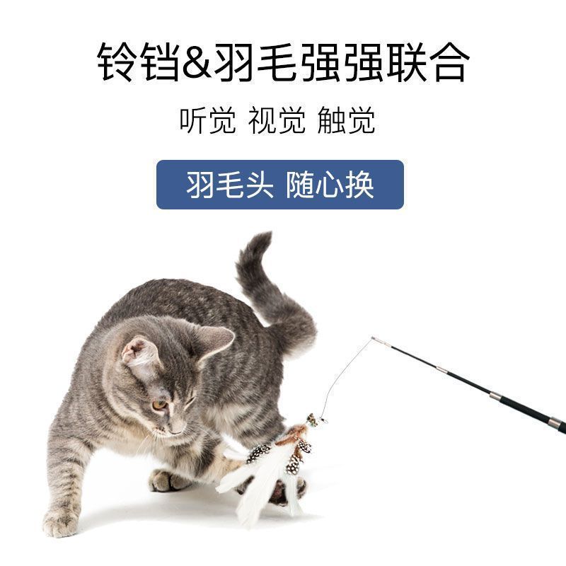 逗猫棒长杆可伸缩1米8钓鱼逗猫杆羽毛耐咬带铃铛猫咪解闷自嗨玩具