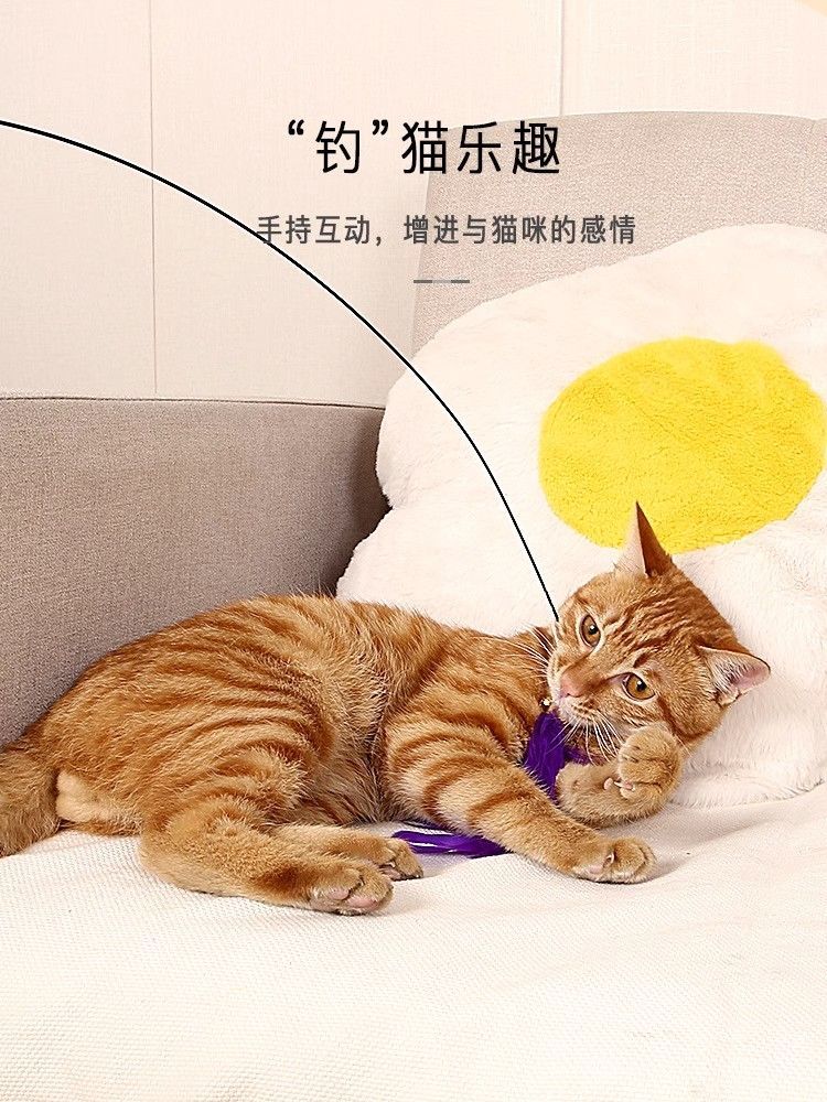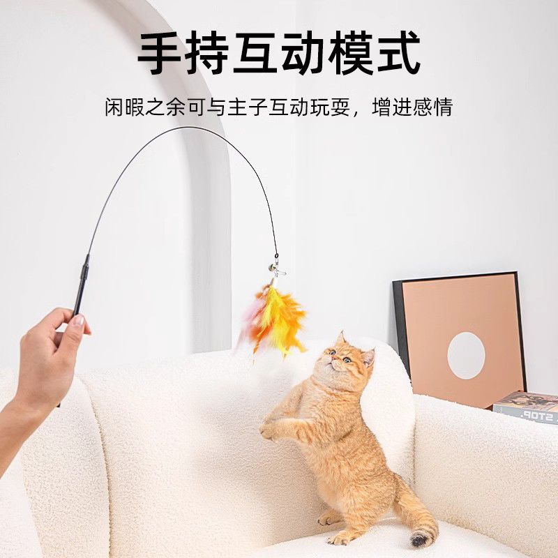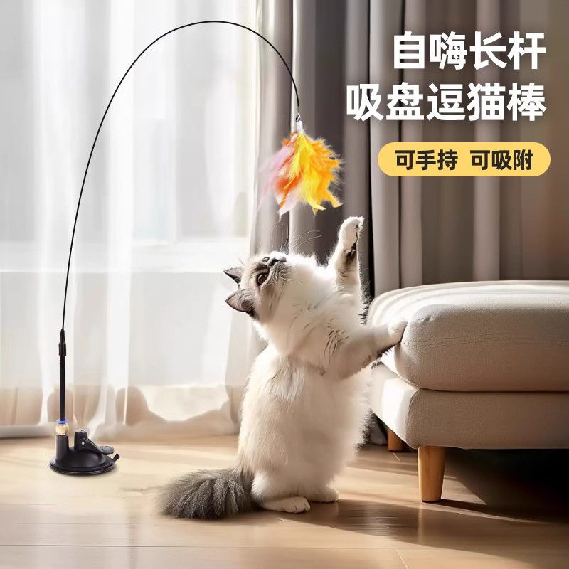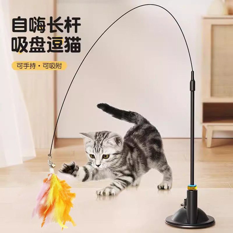 吸盘逗猫棒猫咪用品玩具自嗨解闷钢丝长杆自动逗猫羽毛替换头耐咬