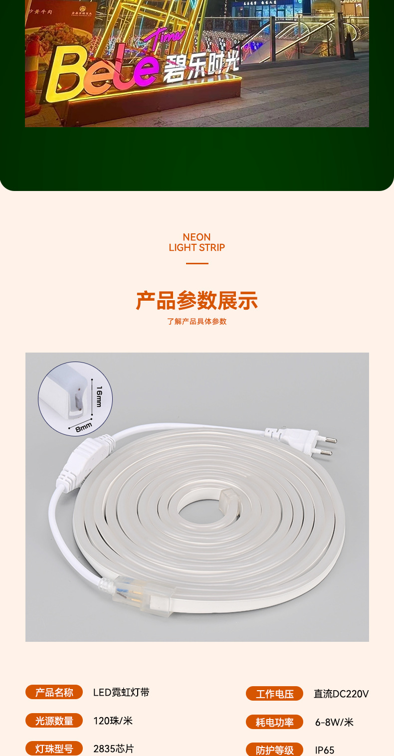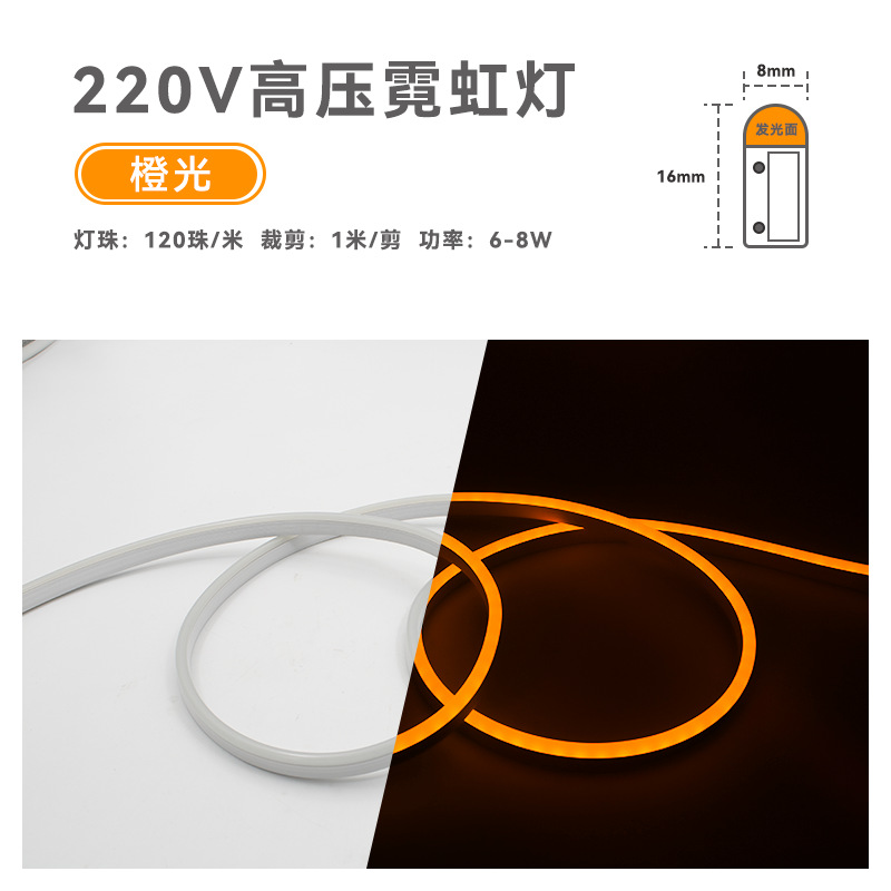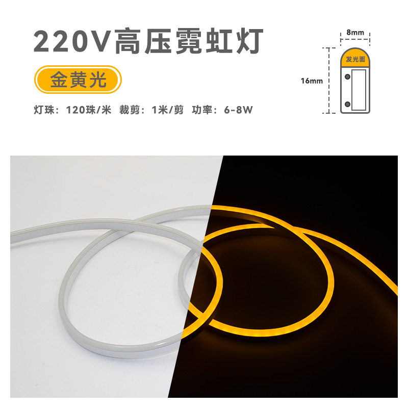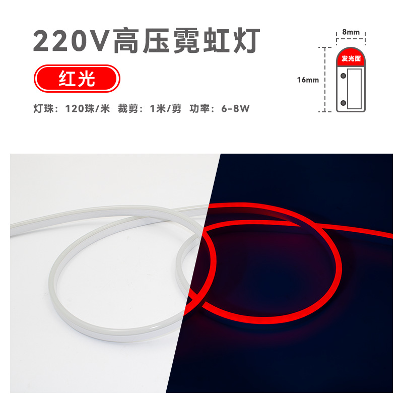 LED灯带条柔性霓虹硅胶线型灯8X16户外防水220v高压2835氛围light
