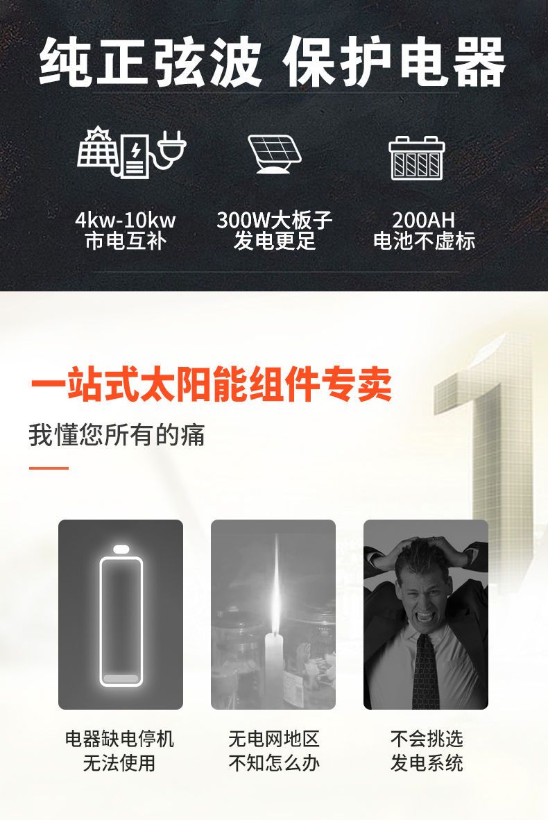 太阳能发电机系统大型家用220v电池板5000w全套光伏发电系统