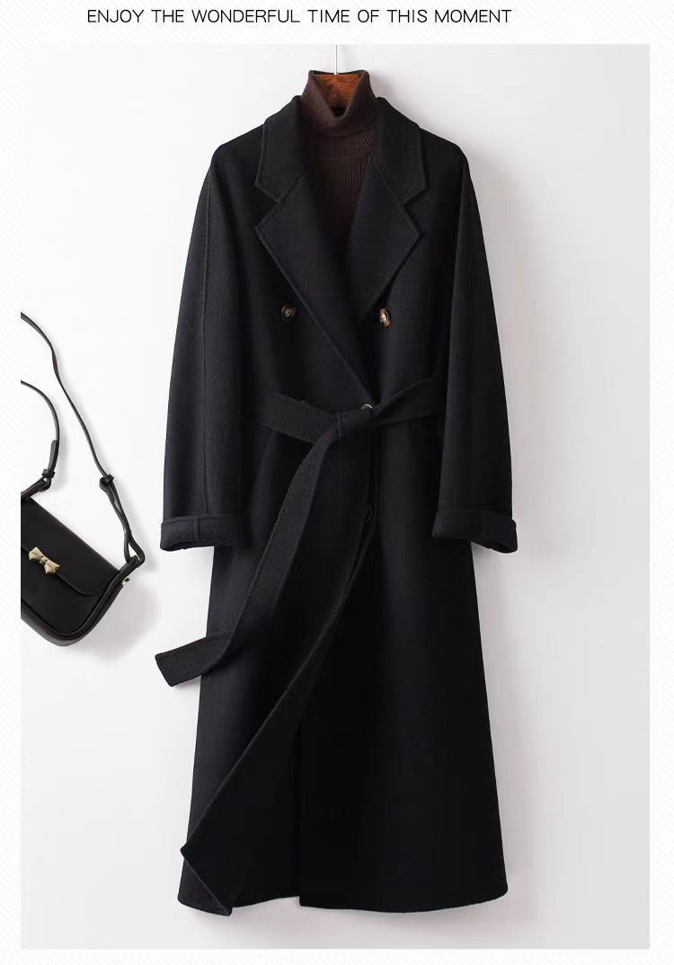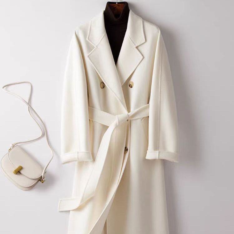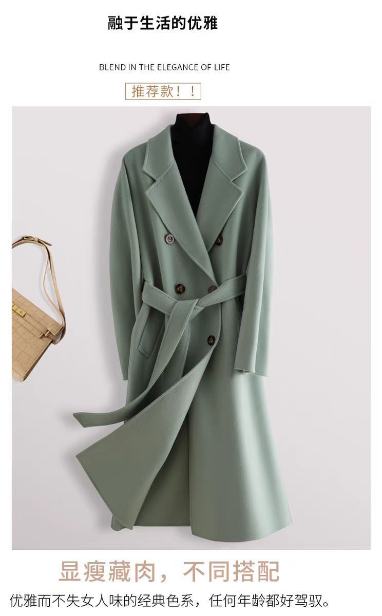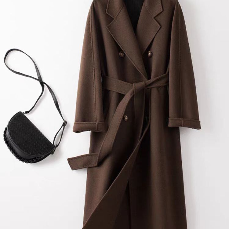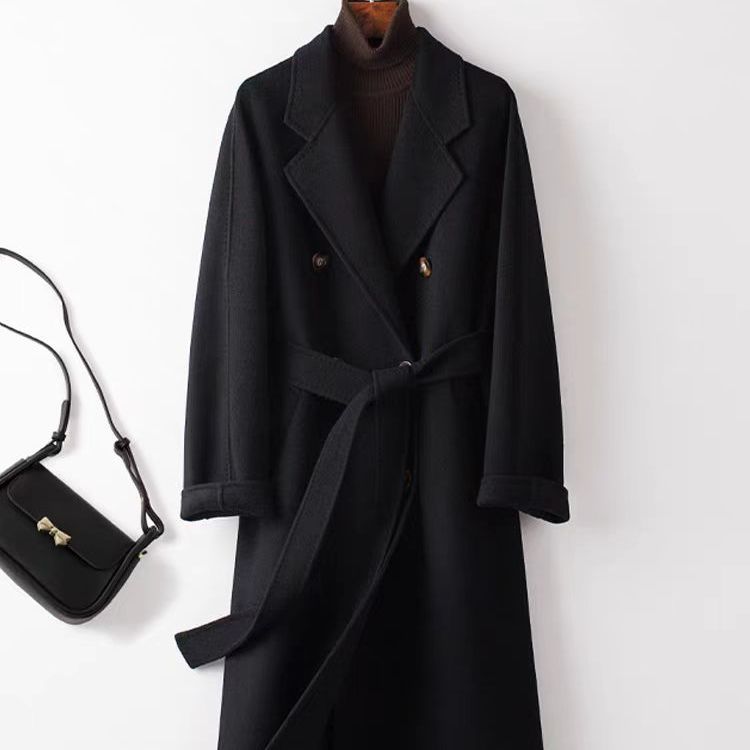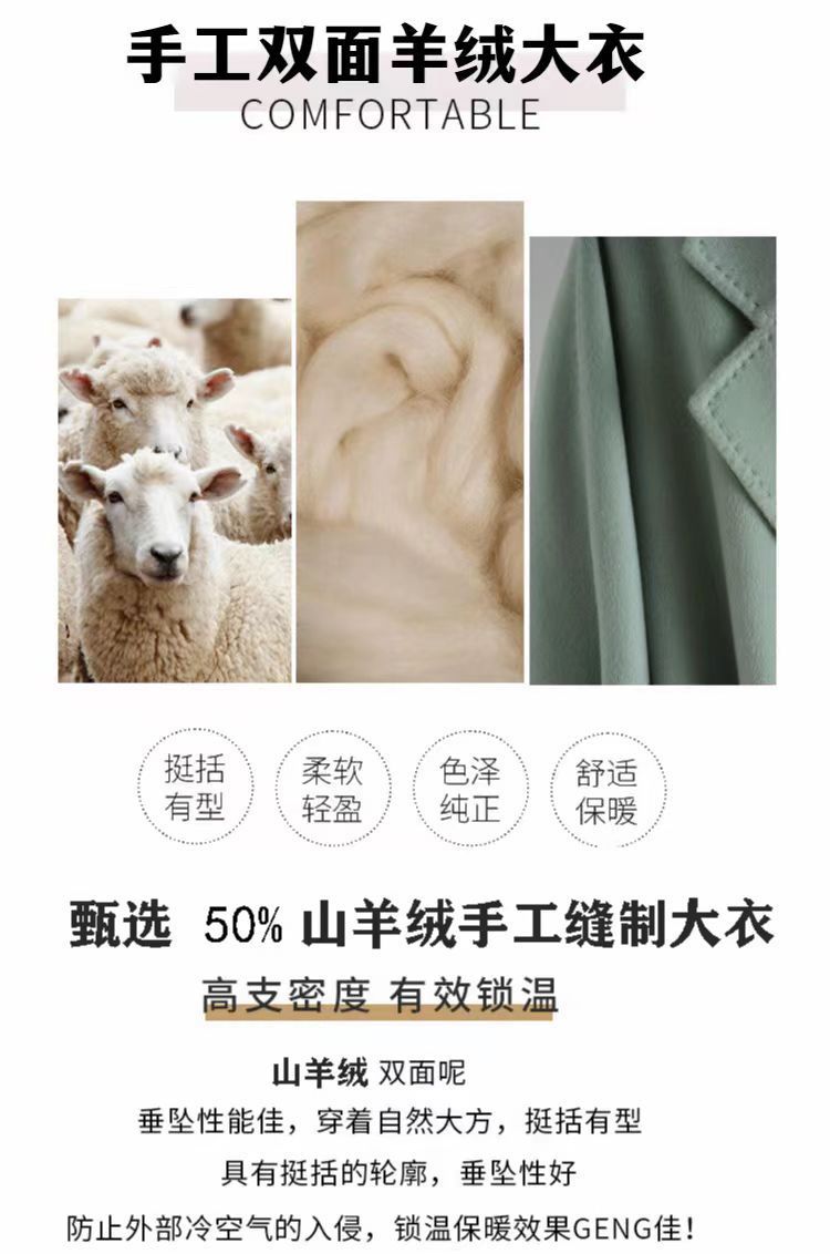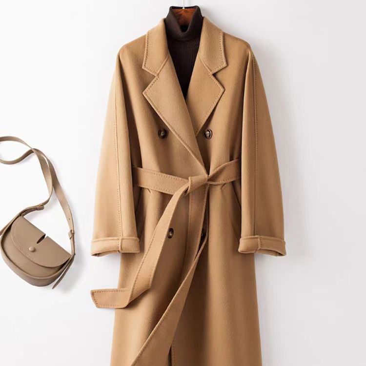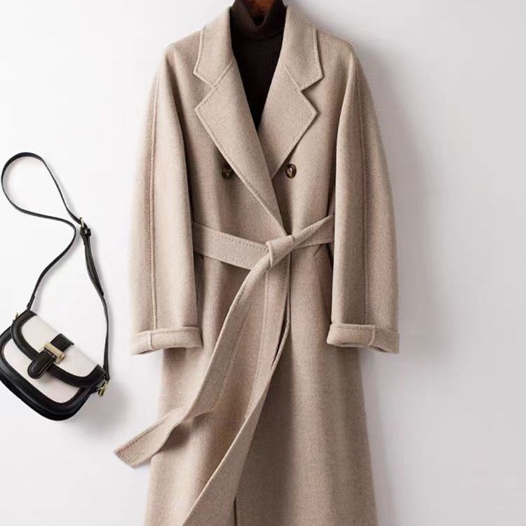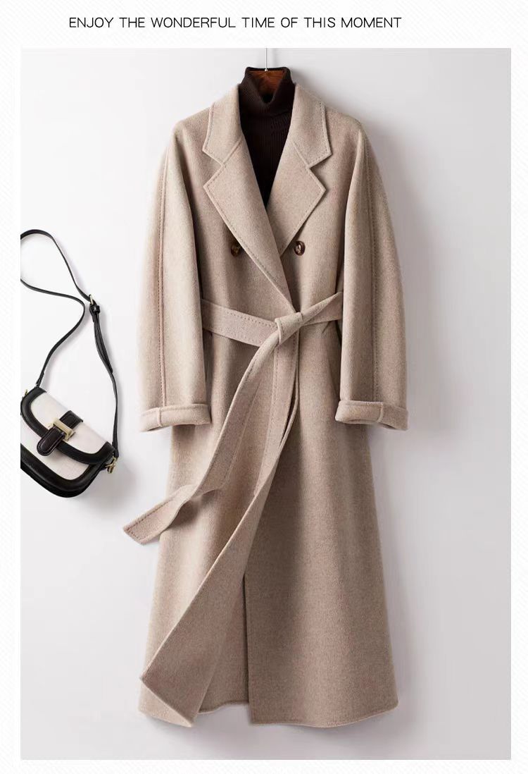 高端双面羊绒大衣女中长款宽松韩版双排扣大衣新款50山羊绒系腰带