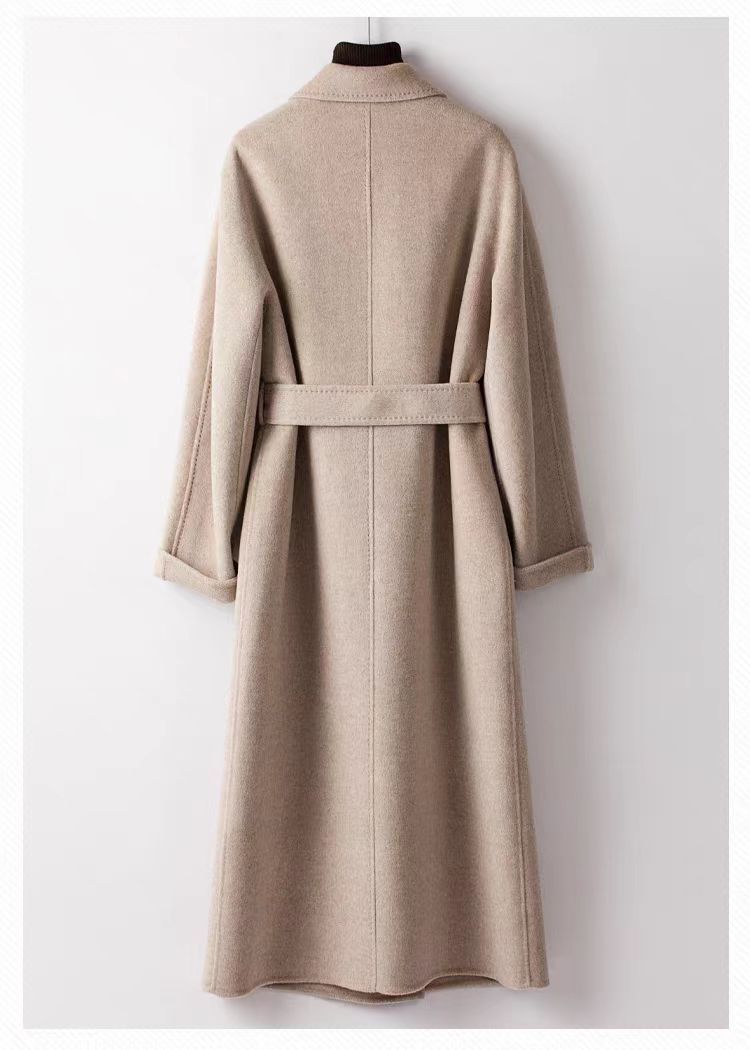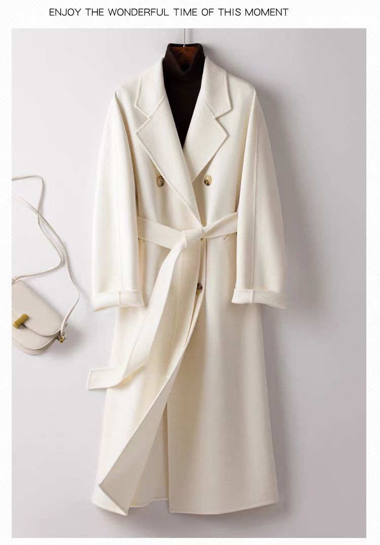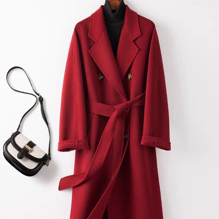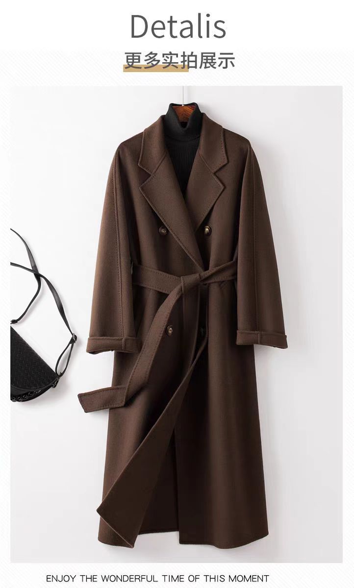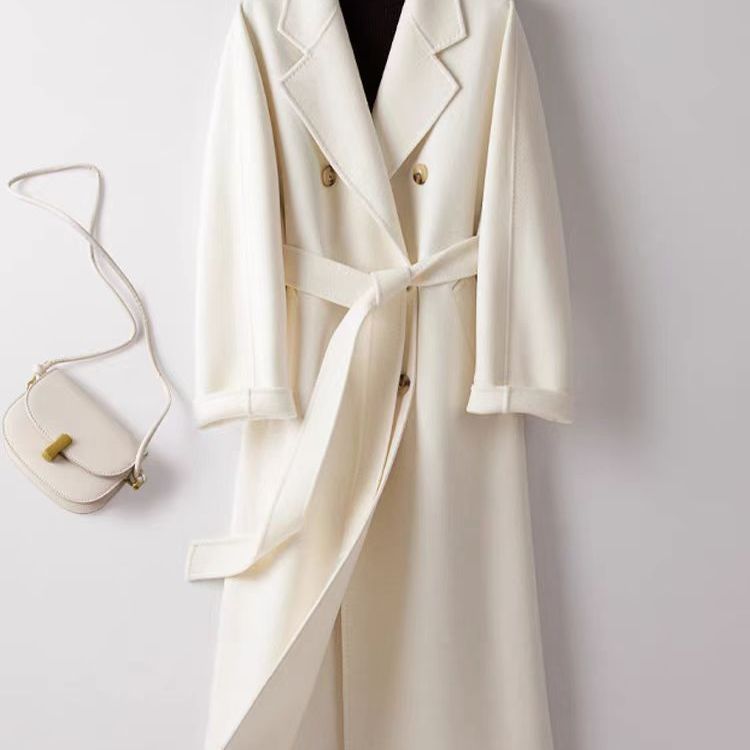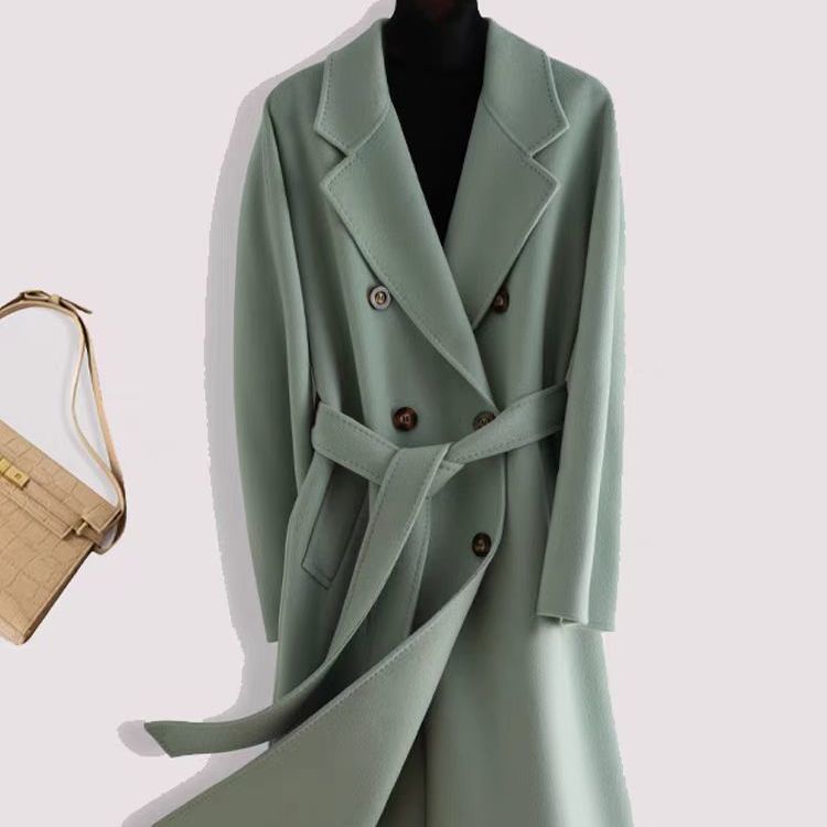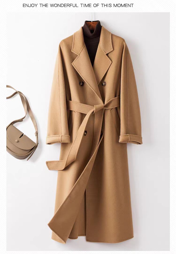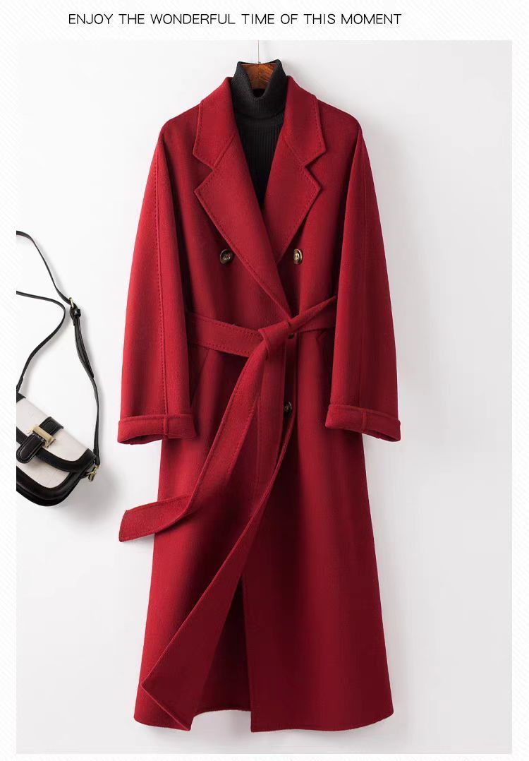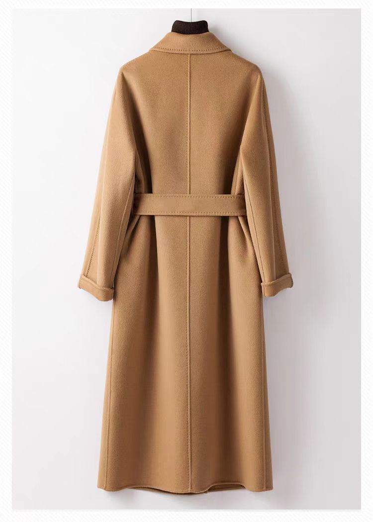 高端双面羊绒大衣女中长款宽松韩版双排扣大衣新款50山羊绒系腰带