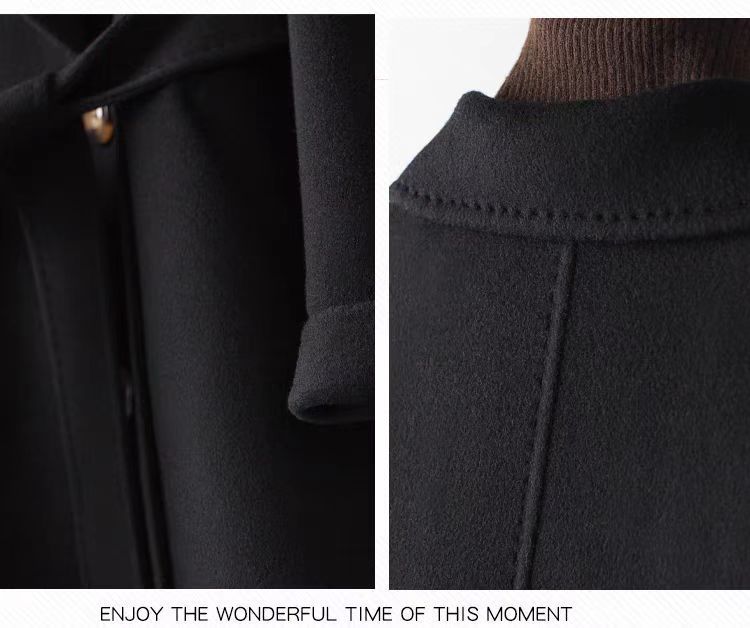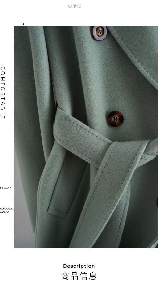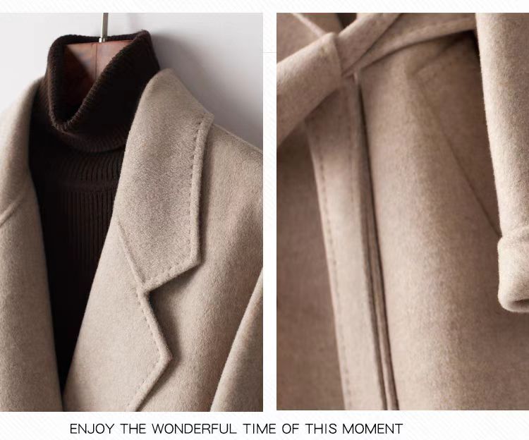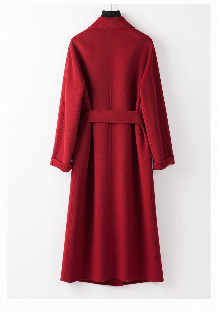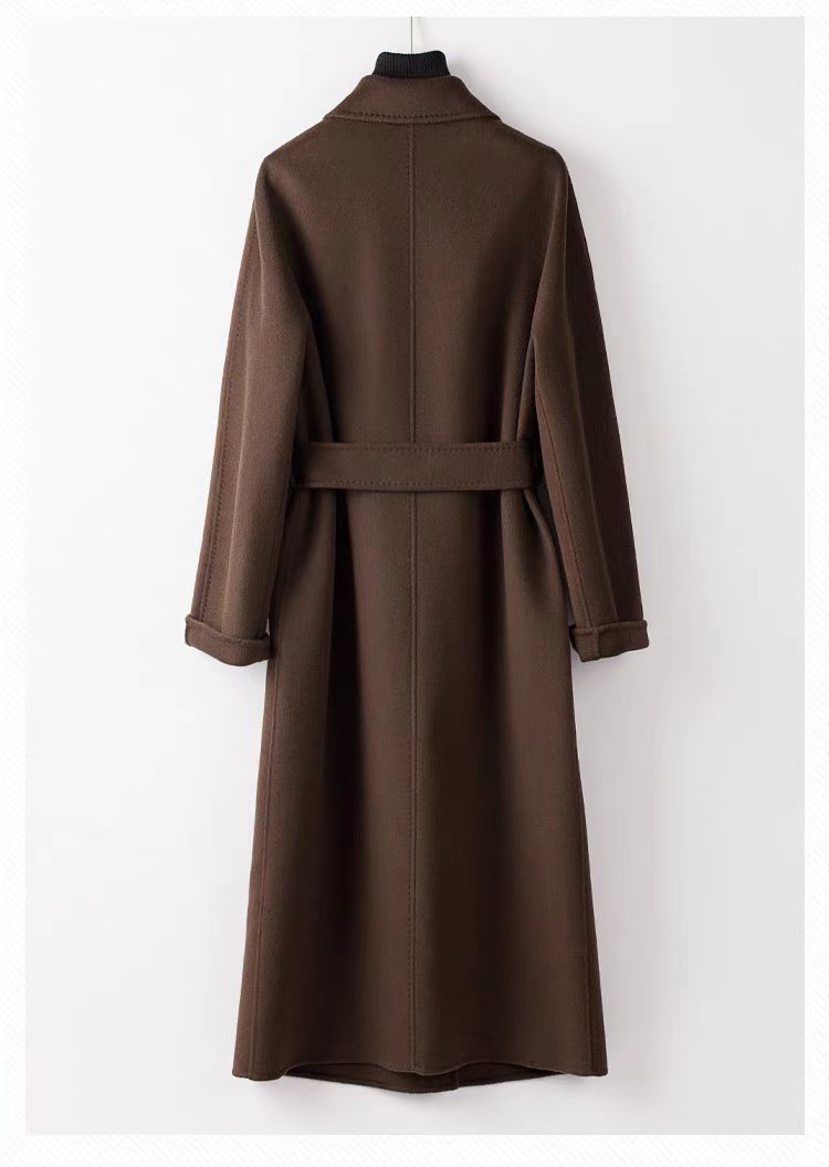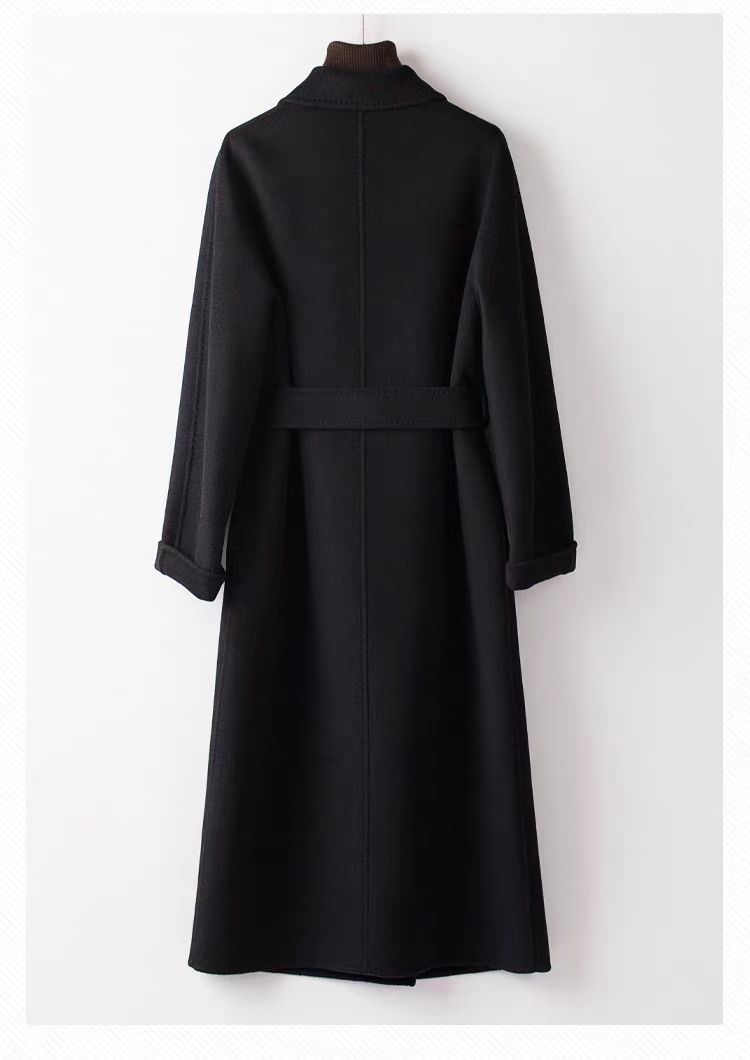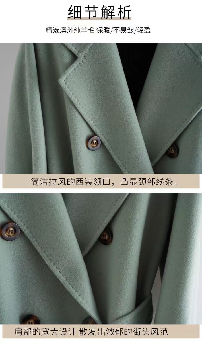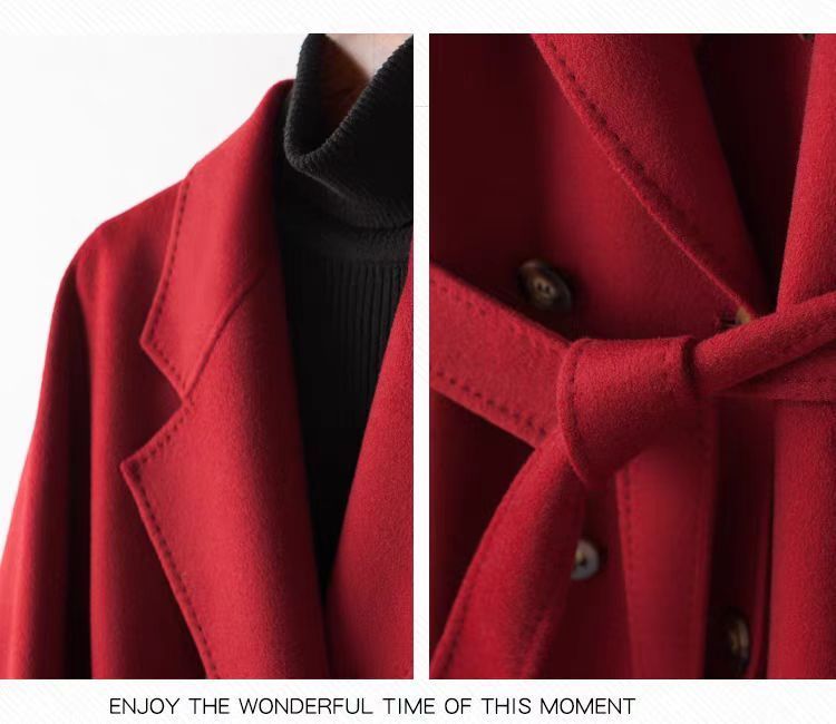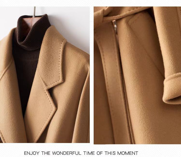 高端双面羊绒大衣女中长款宽松韩版双排扣大衣新款50山羊绒系腰带