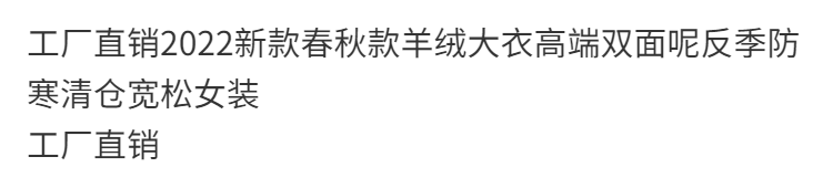 工厂直销2023新款春秋款羊绒大衣高端双面呢反季防寒清仓宽松女装