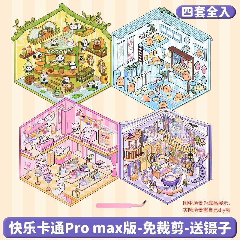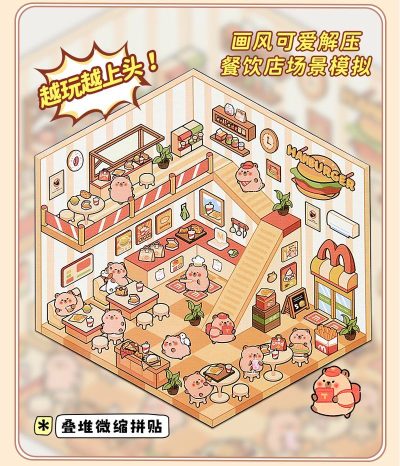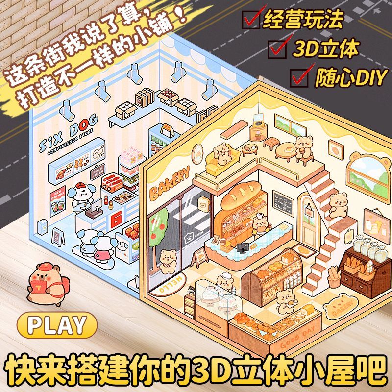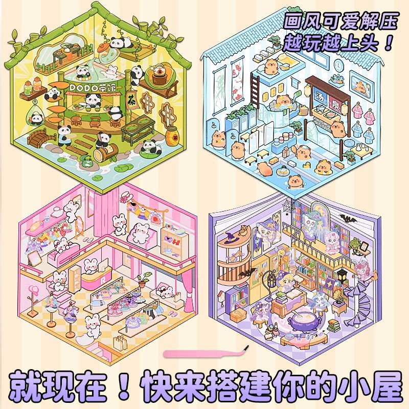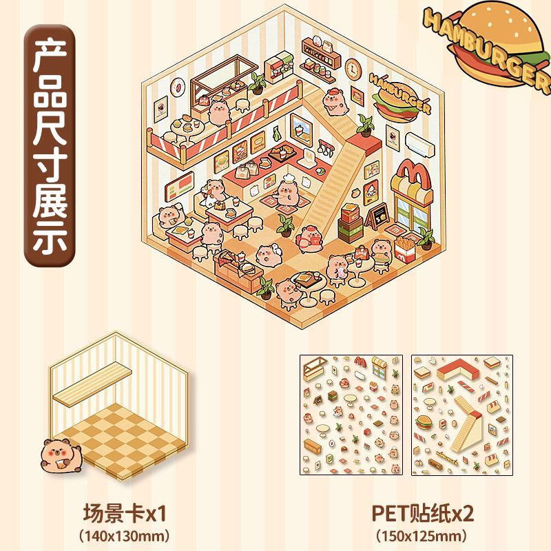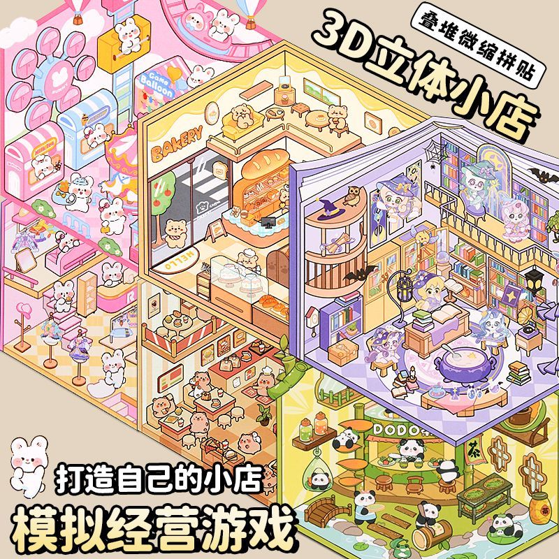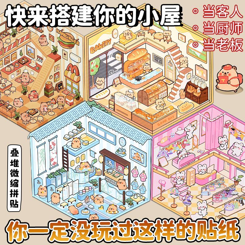 立体微缩3D造景贴纸堆叠小屋场景可爱贴画解压diy手工三层餐厅
