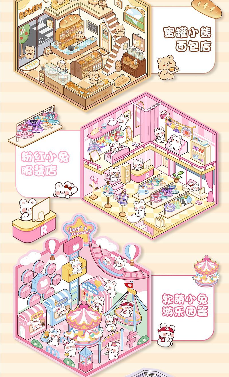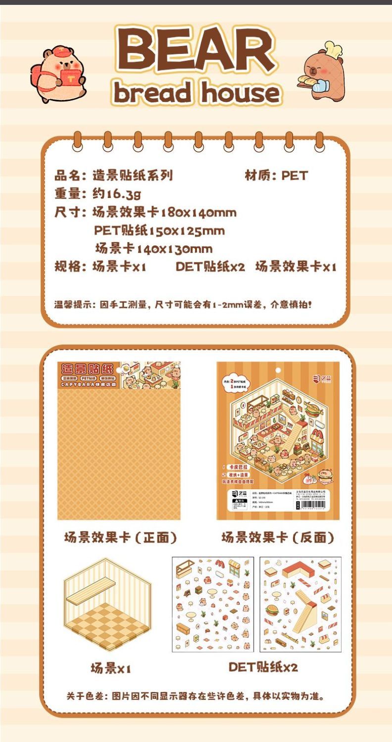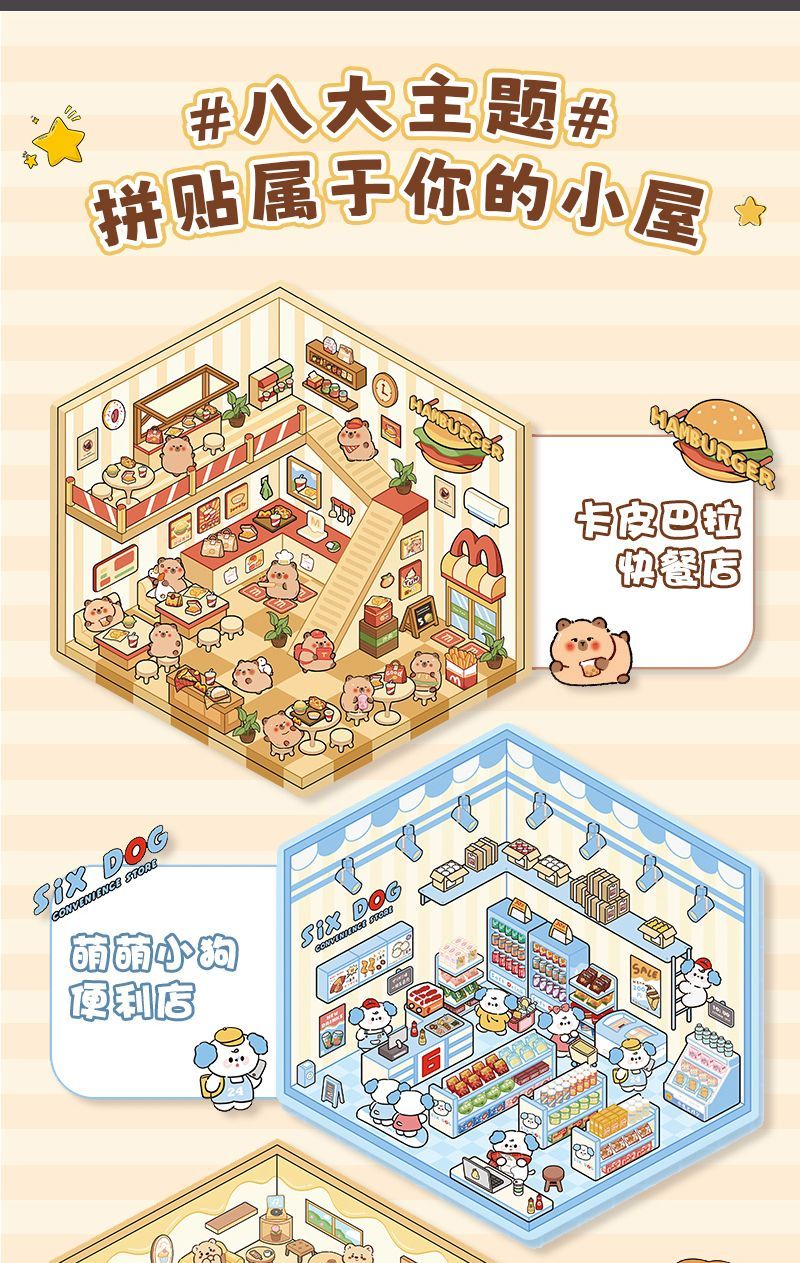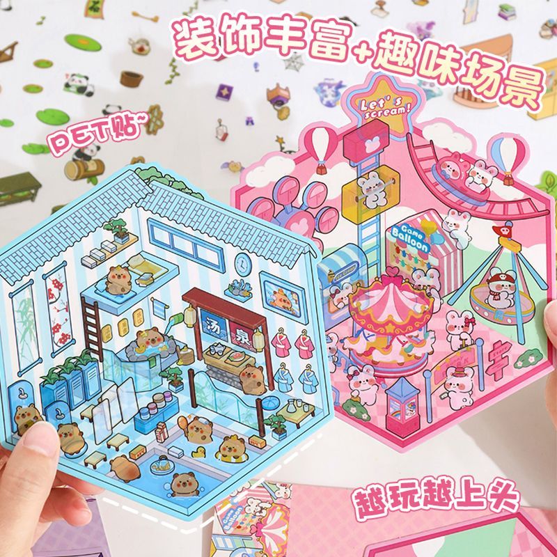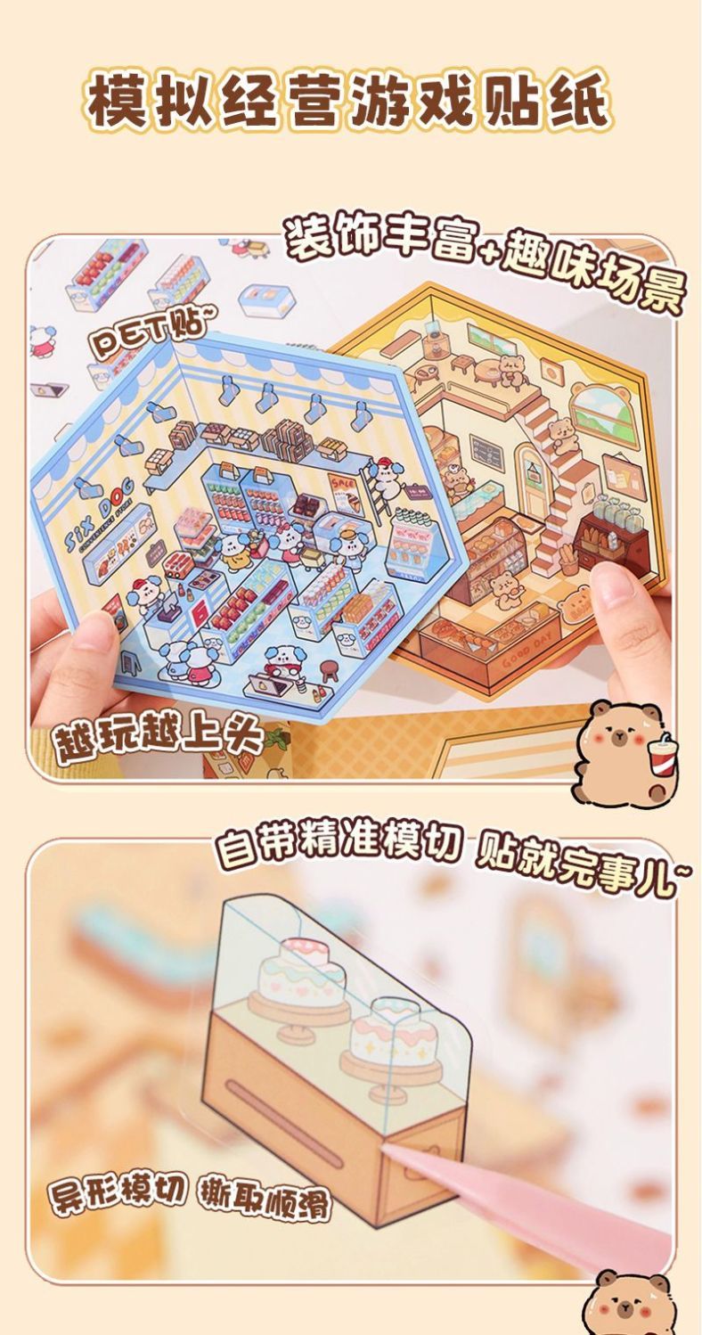 立体微缩3D造景贴纸堆叠小屋场景可爱贴画解压diy手工三层餐厅