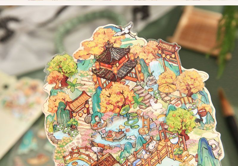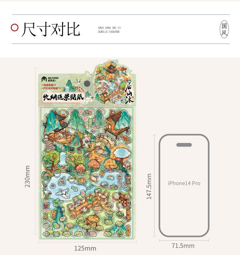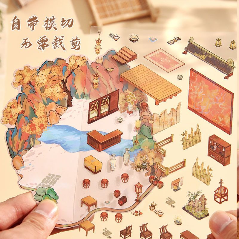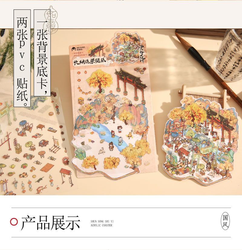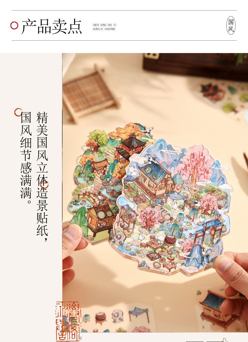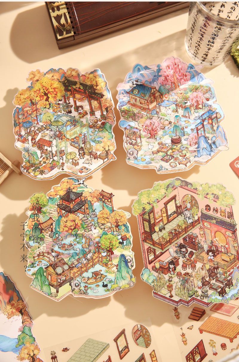 与君有约国风造景收纳贴纸3D立体创意场景DIY手帐益智解压贴纸