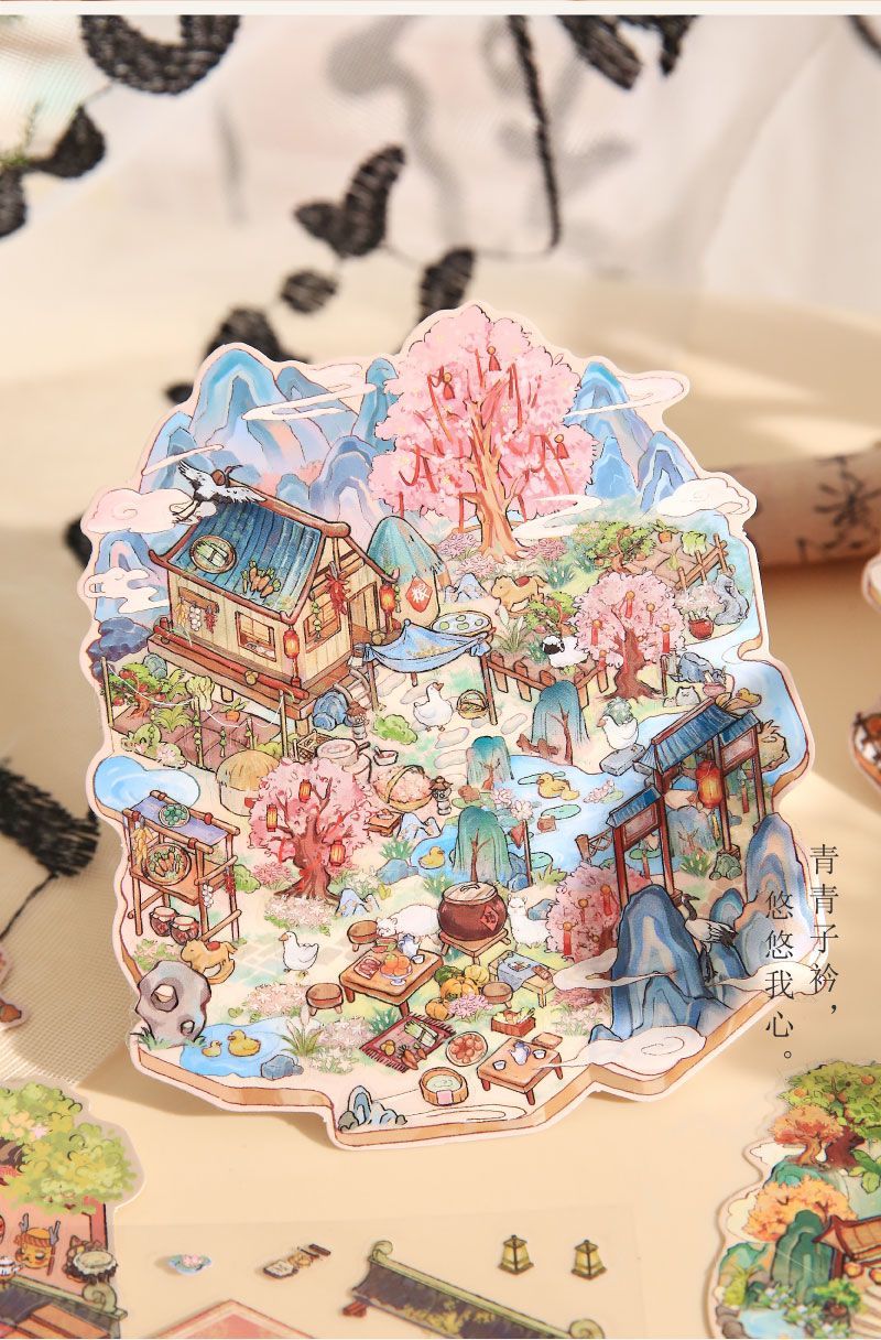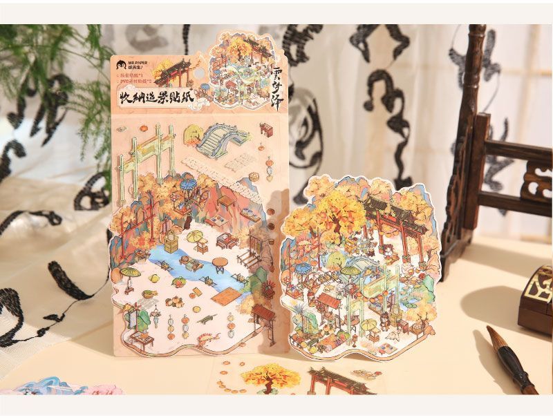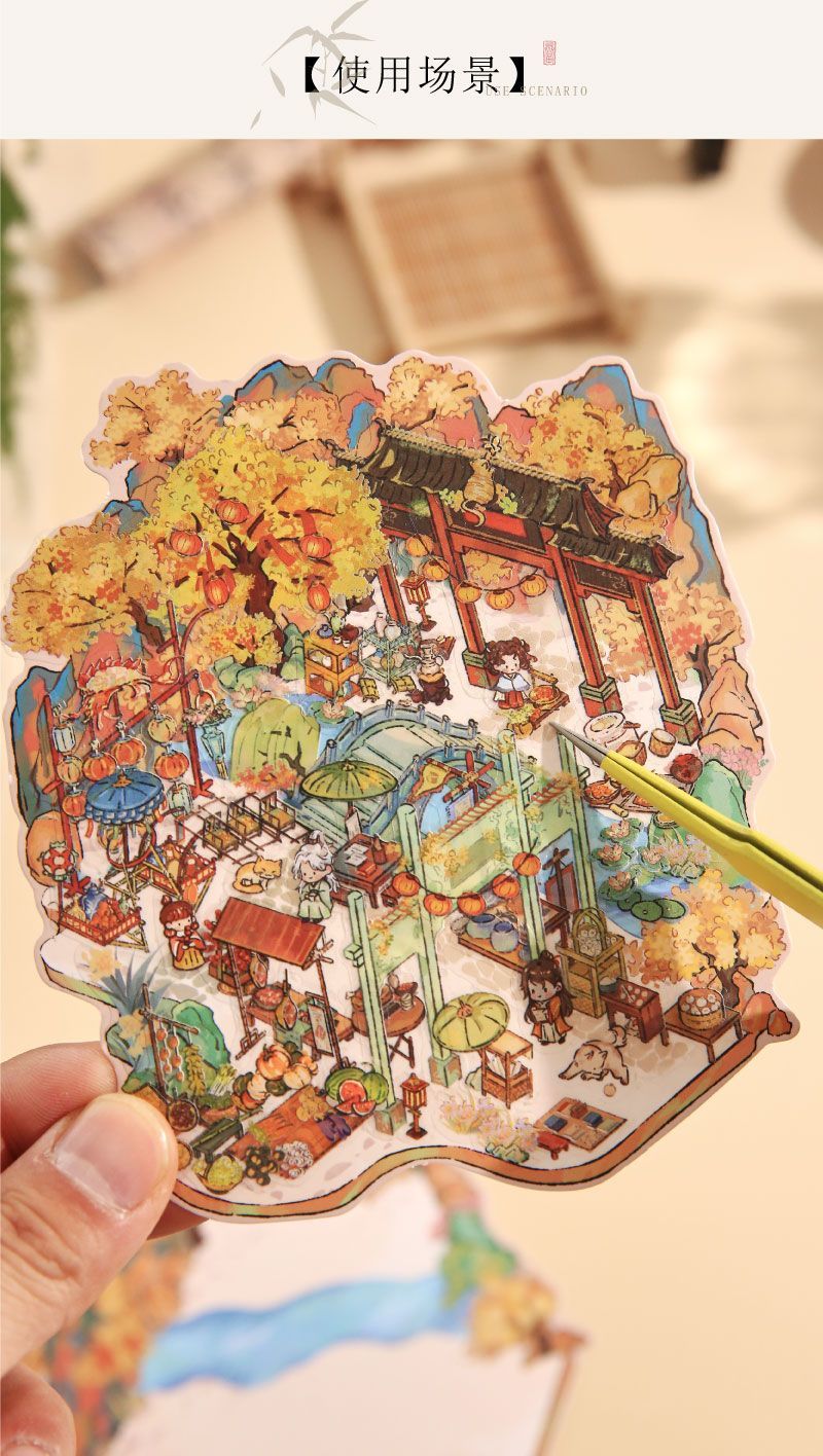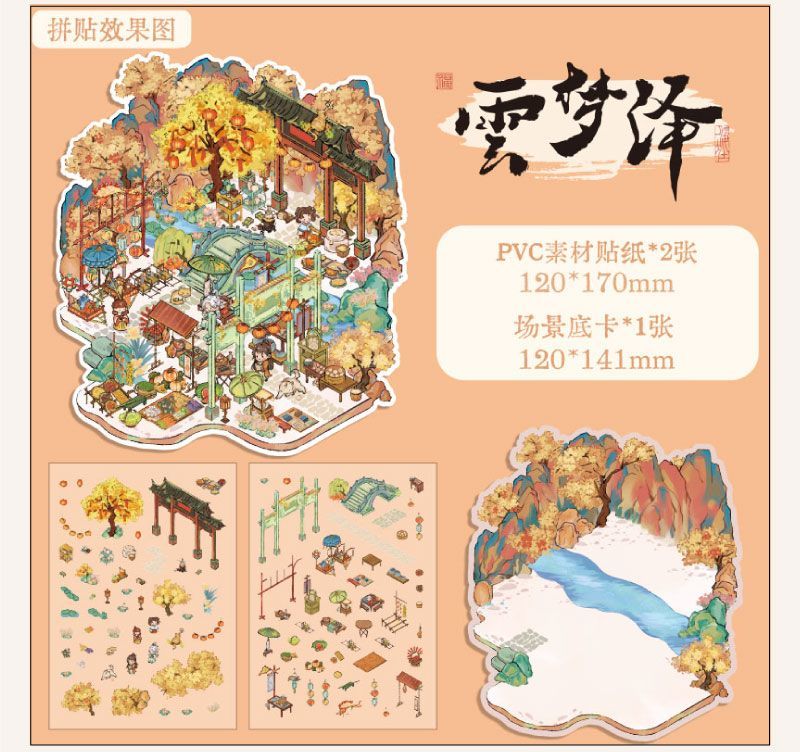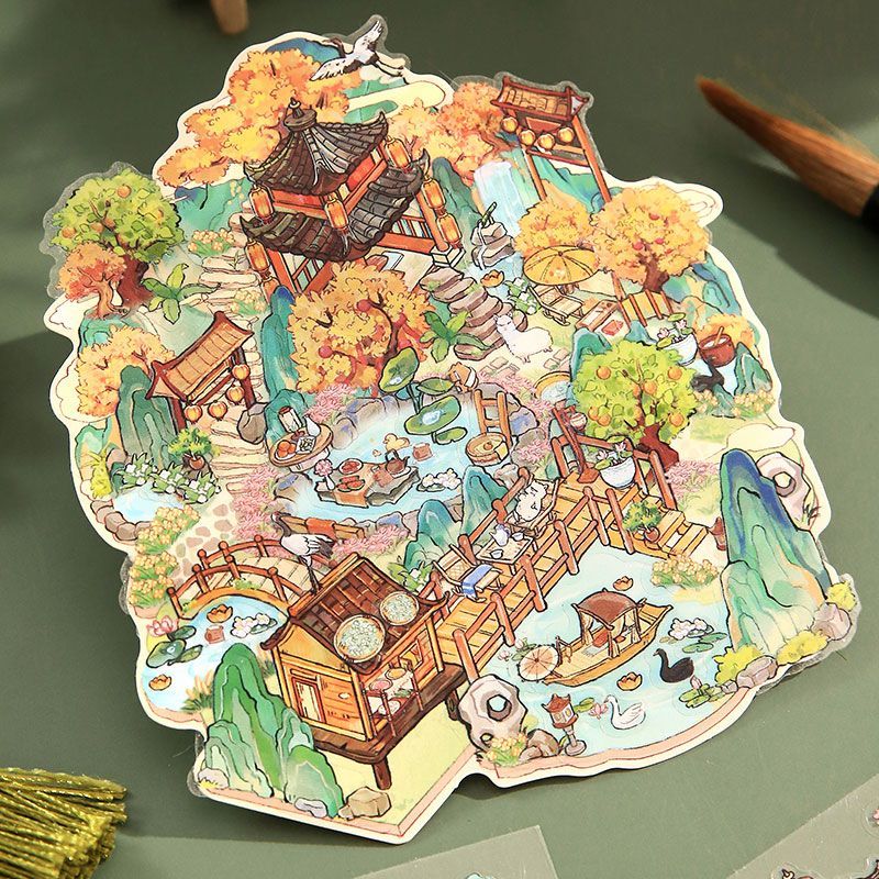 与君有约国风造景收纳贴纸3D立体创意场景DIY手帐益智解压贴纸