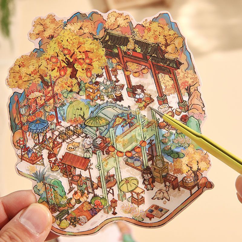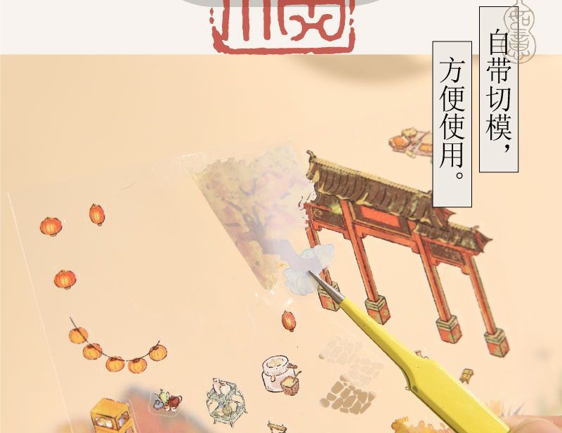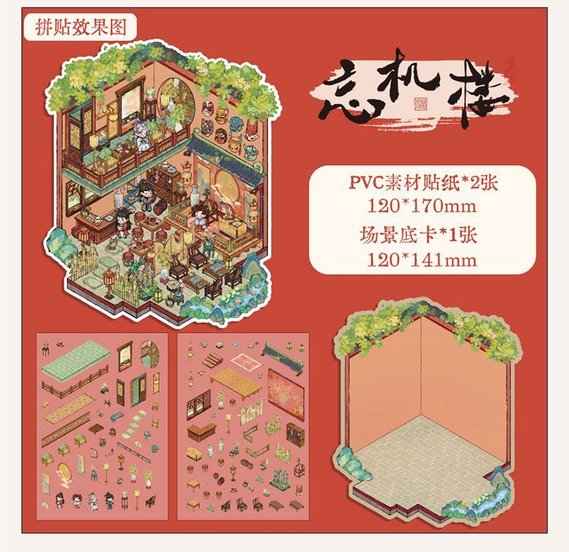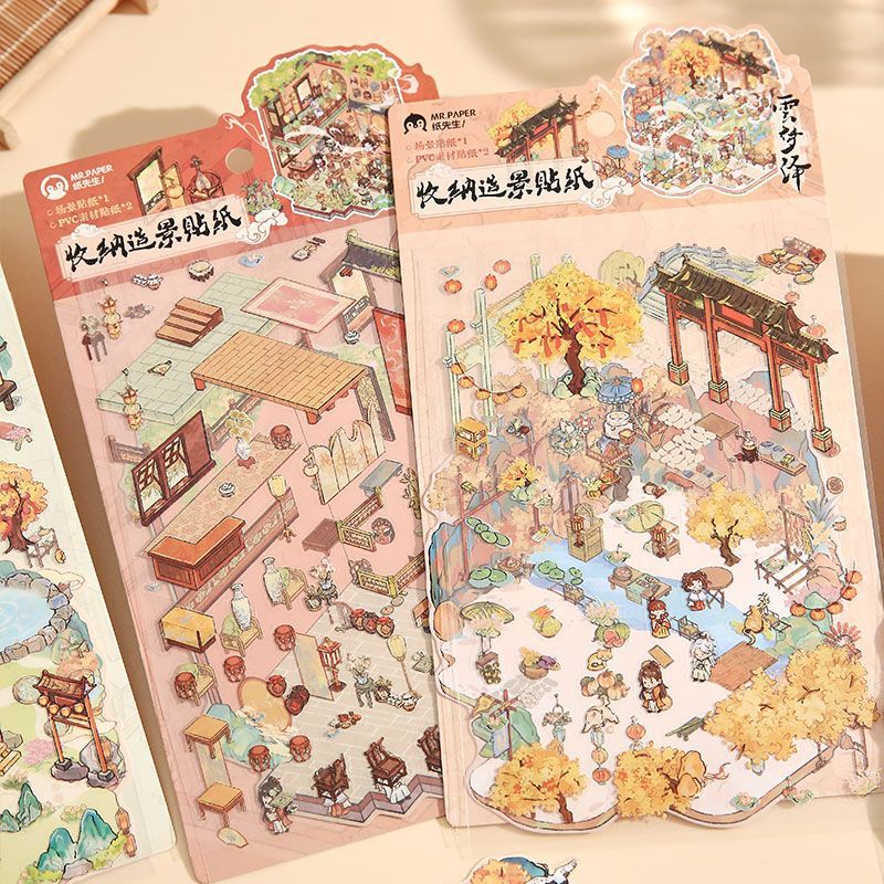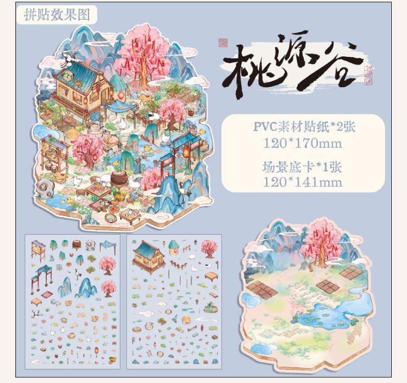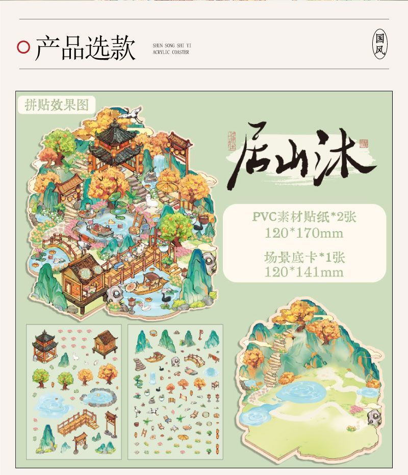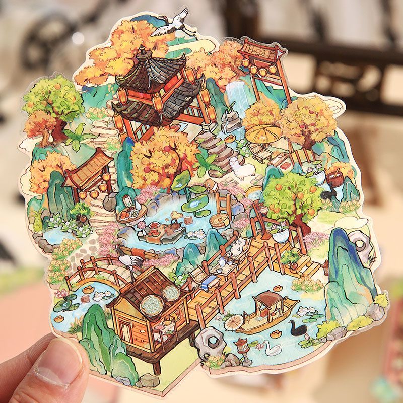 与君有约国风造景收纳贴纸3D立体创意场景DIY手帐益智解压贴纸