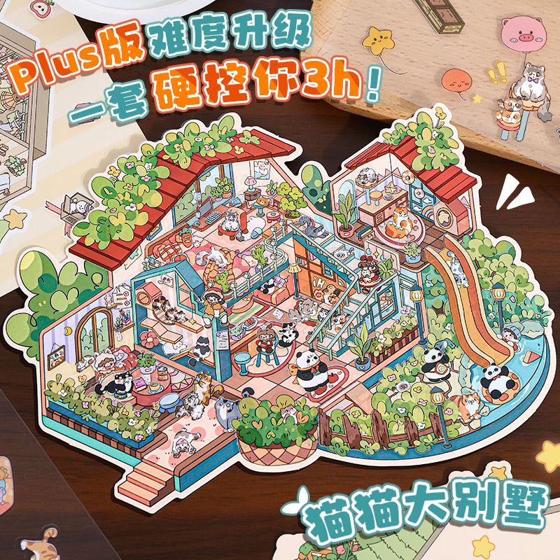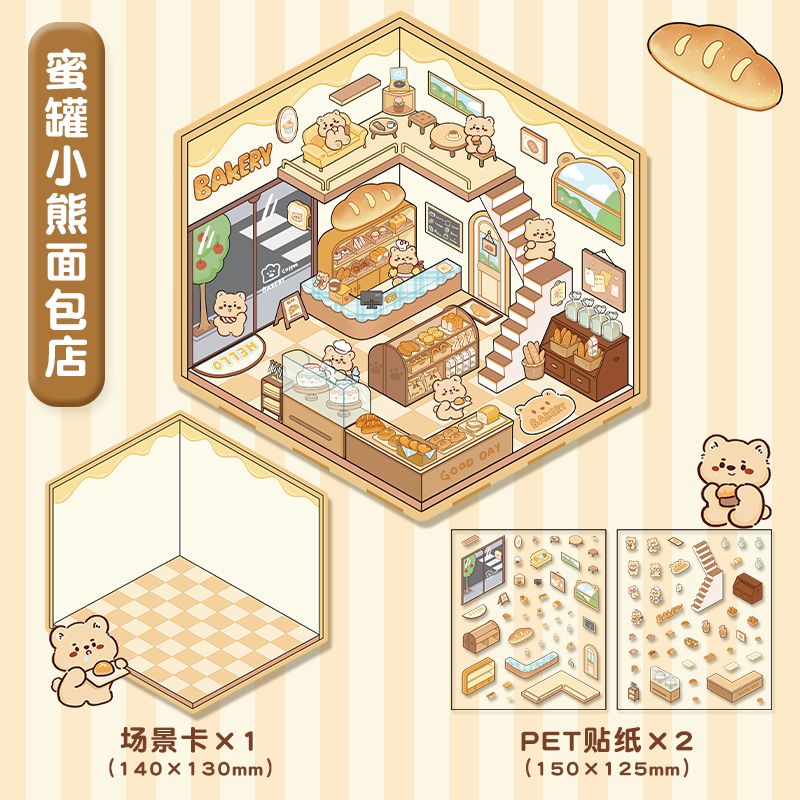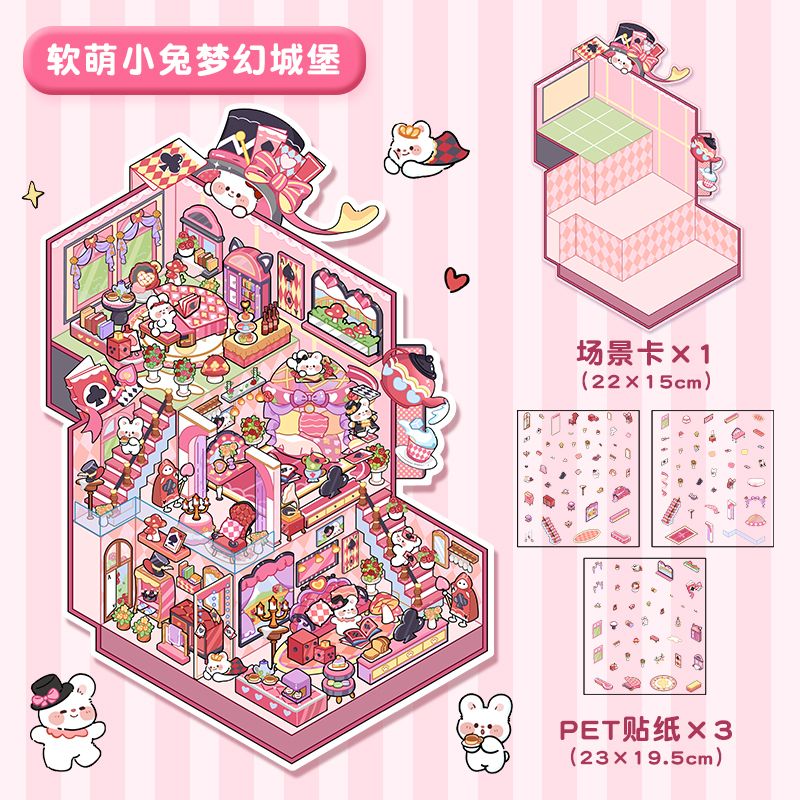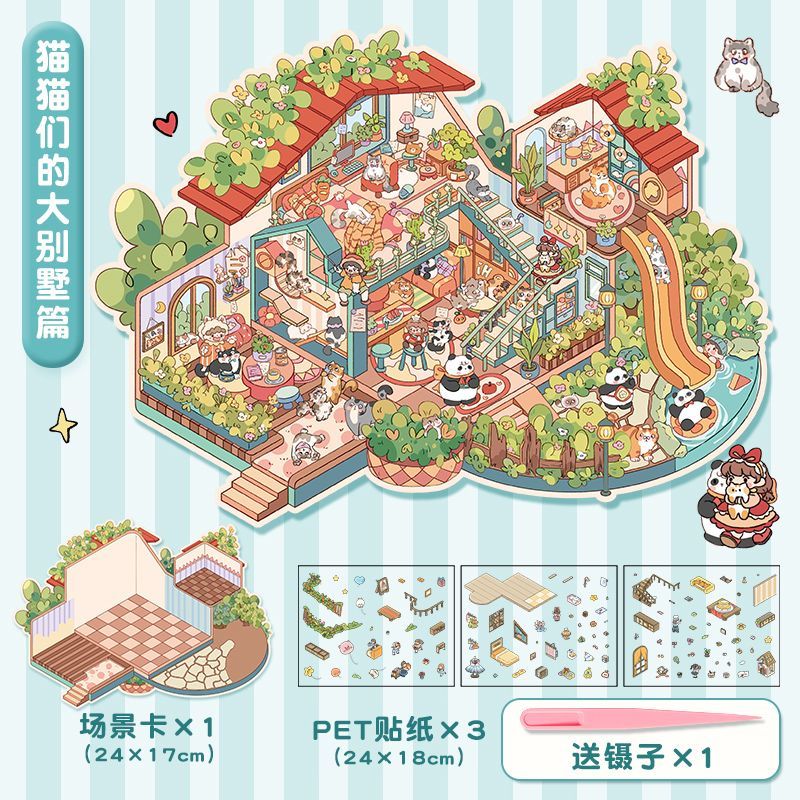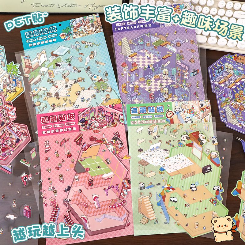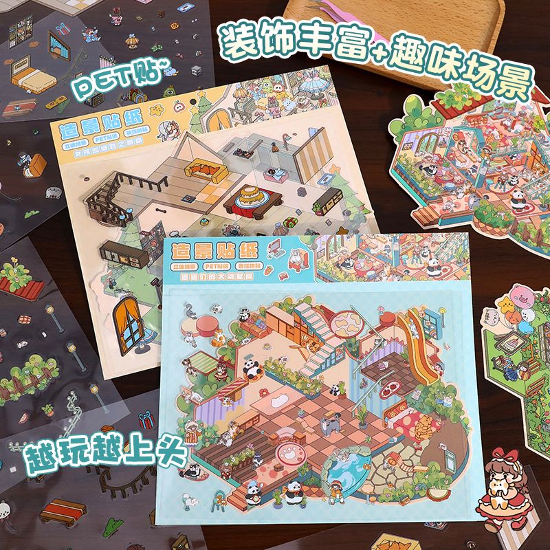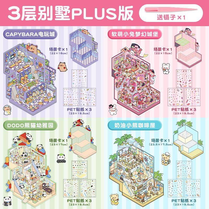 造景贴纸3d立体小屋免剪裁叠堆造景解压微缩场景DIY小屋贴纸套装