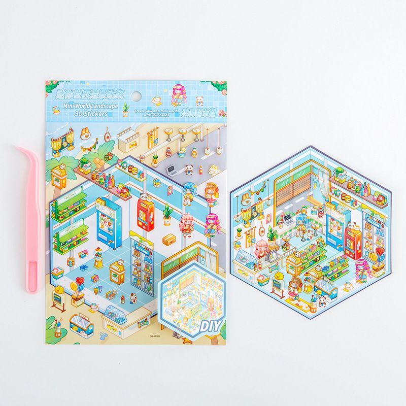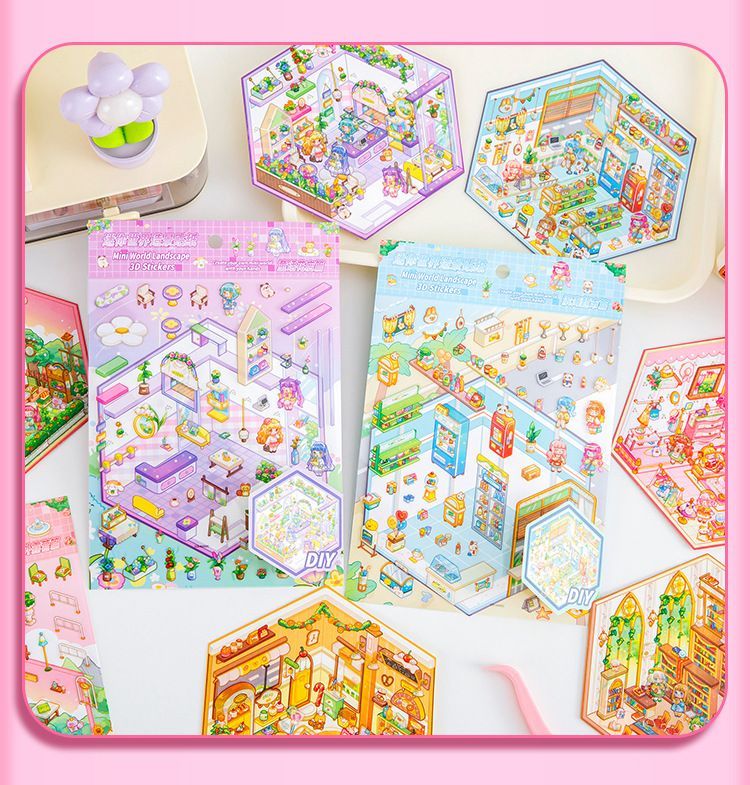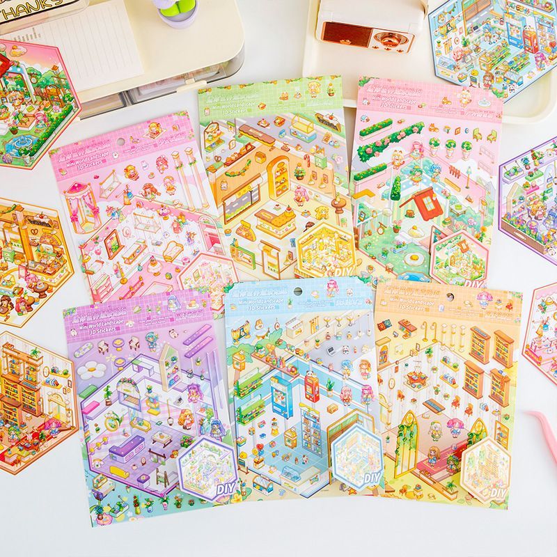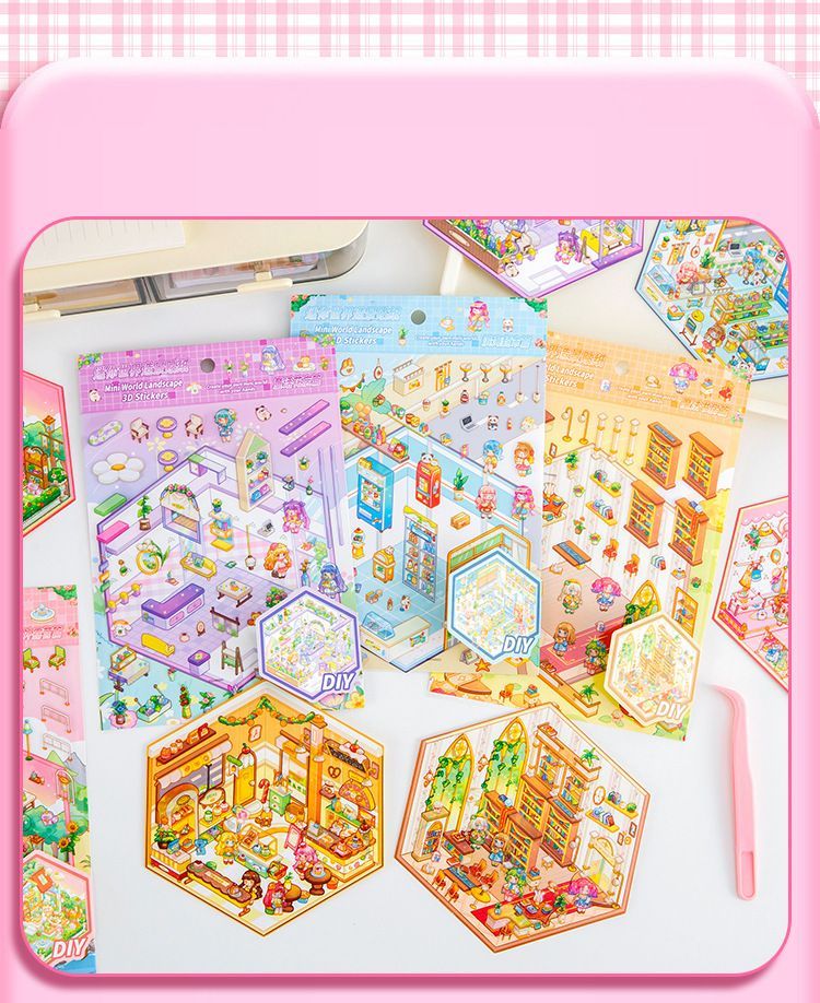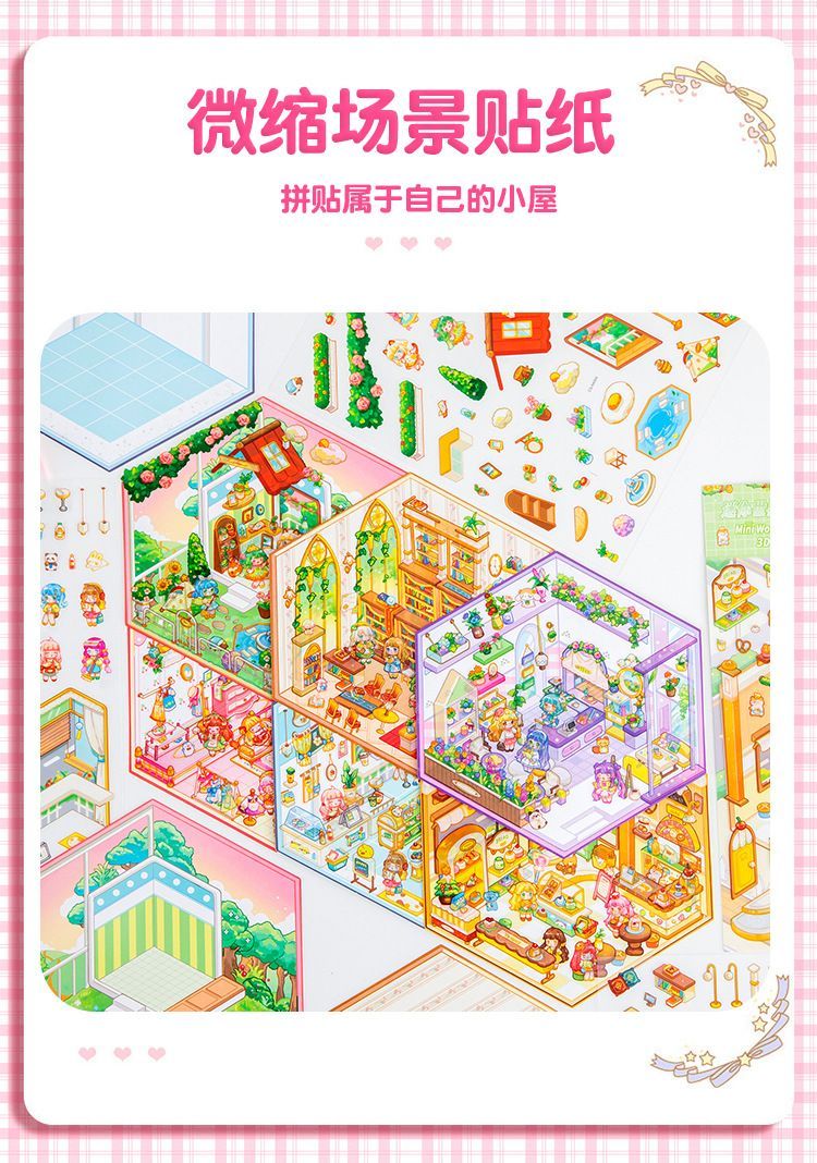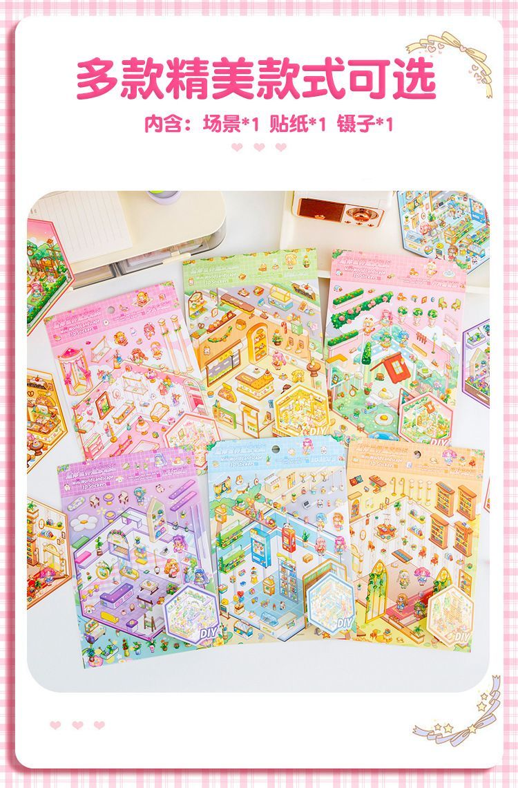 韩系3D微缩新堆叠小屋造景贴纸diy立体解压手工场景贴画热卖推荐