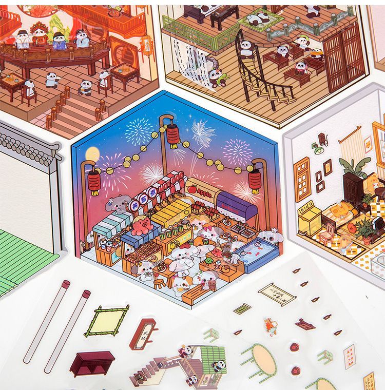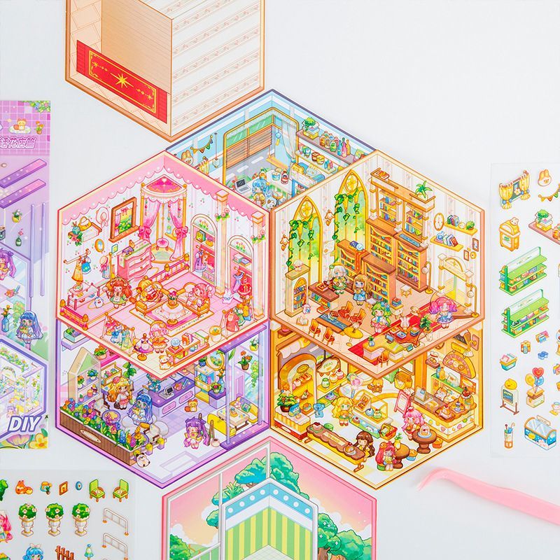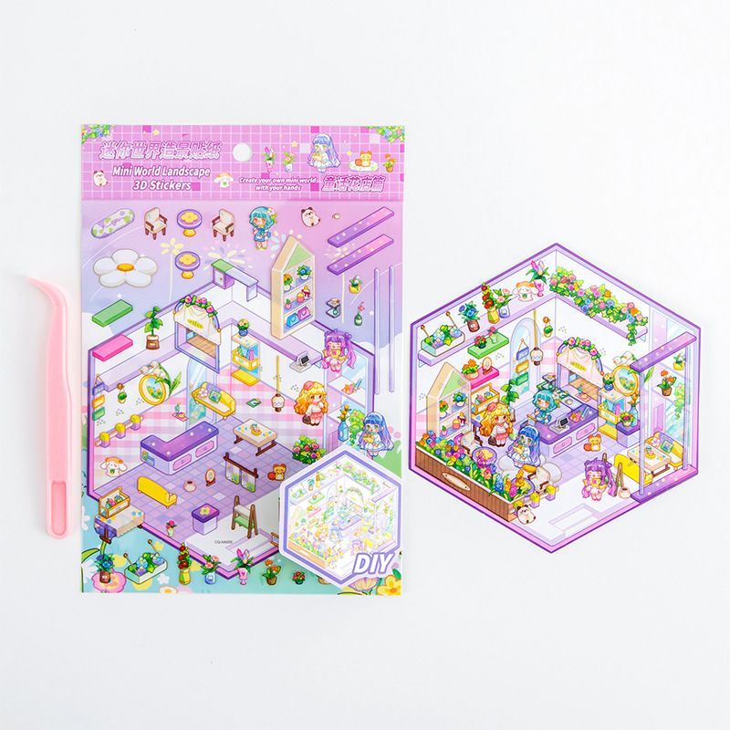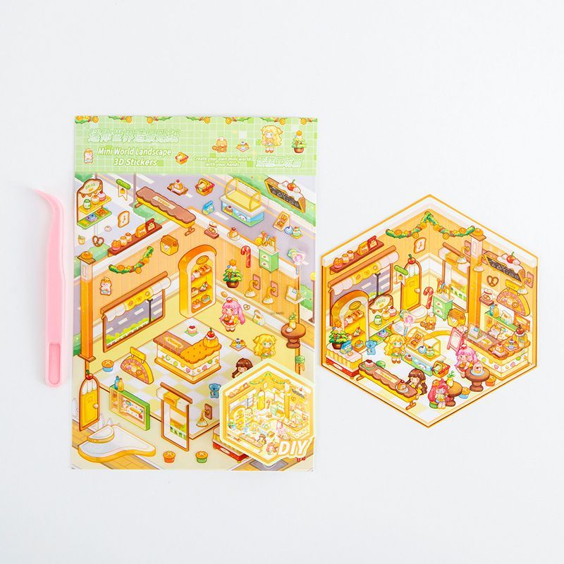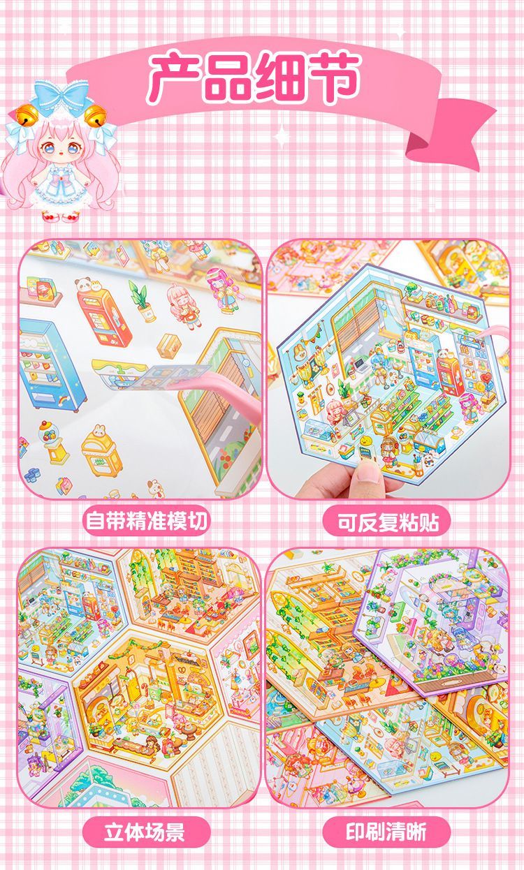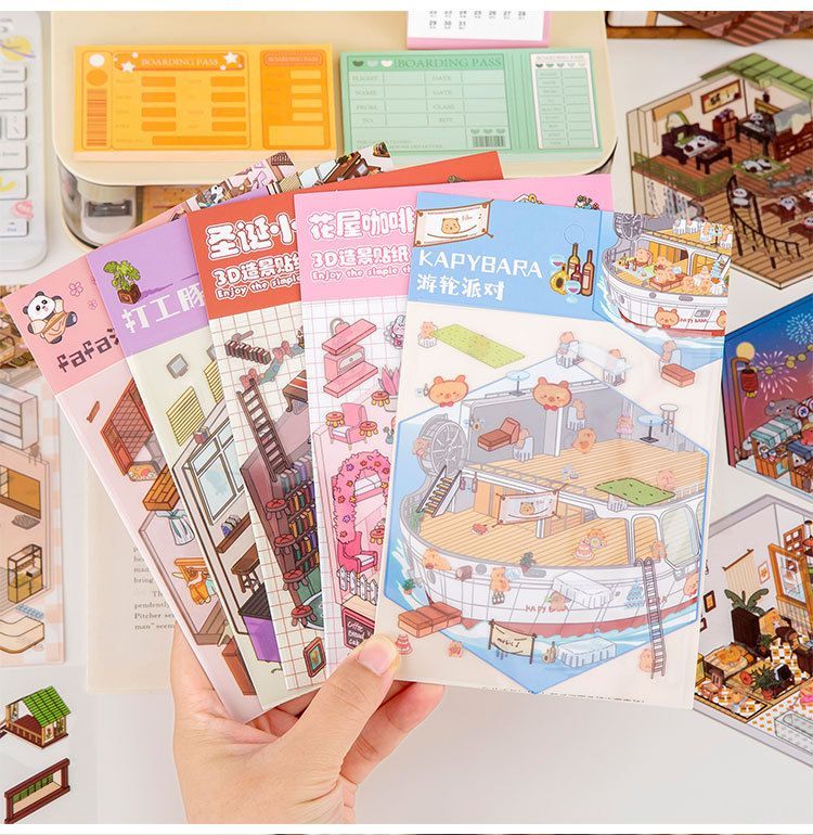 韩系3D微缩新堆叠小屋造景贴纸diy立体解压手工场景贴画热卖推荐