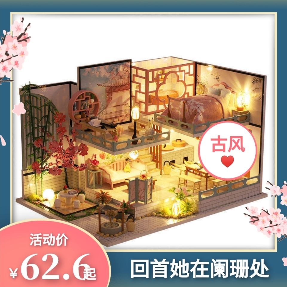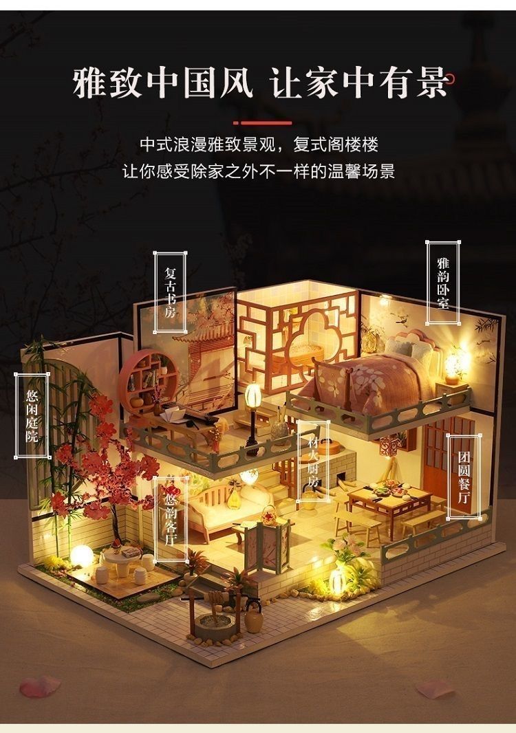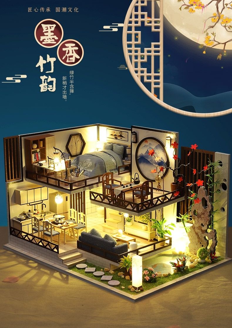 小屋手工拼装玩具古风墨香竹韵国风创意礼物浪漫温馨送姐妹闺蜜