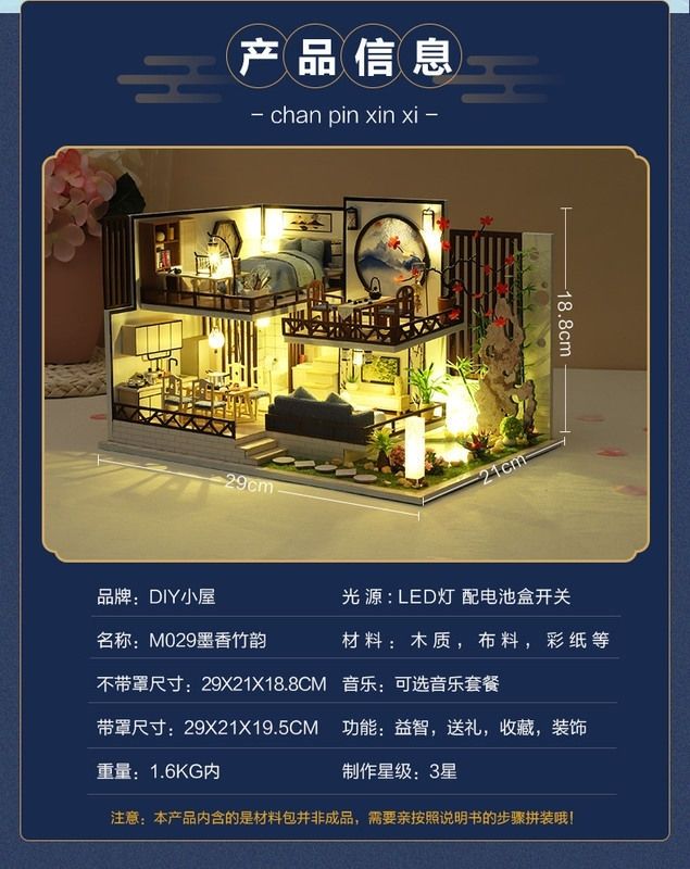 | bamboo maple small house + tool glue + dust cover + light(竹枫小舍+工具胶水+防尘罩+灯光) | USD $12.7 | 999999 piece available |
